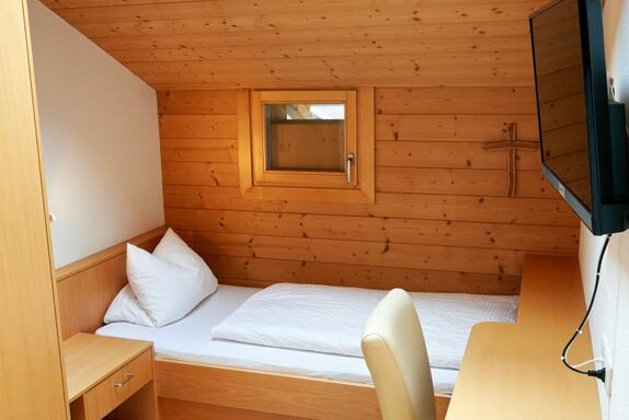 Das Zimmer befindet sich im zweiten Obergeschoß