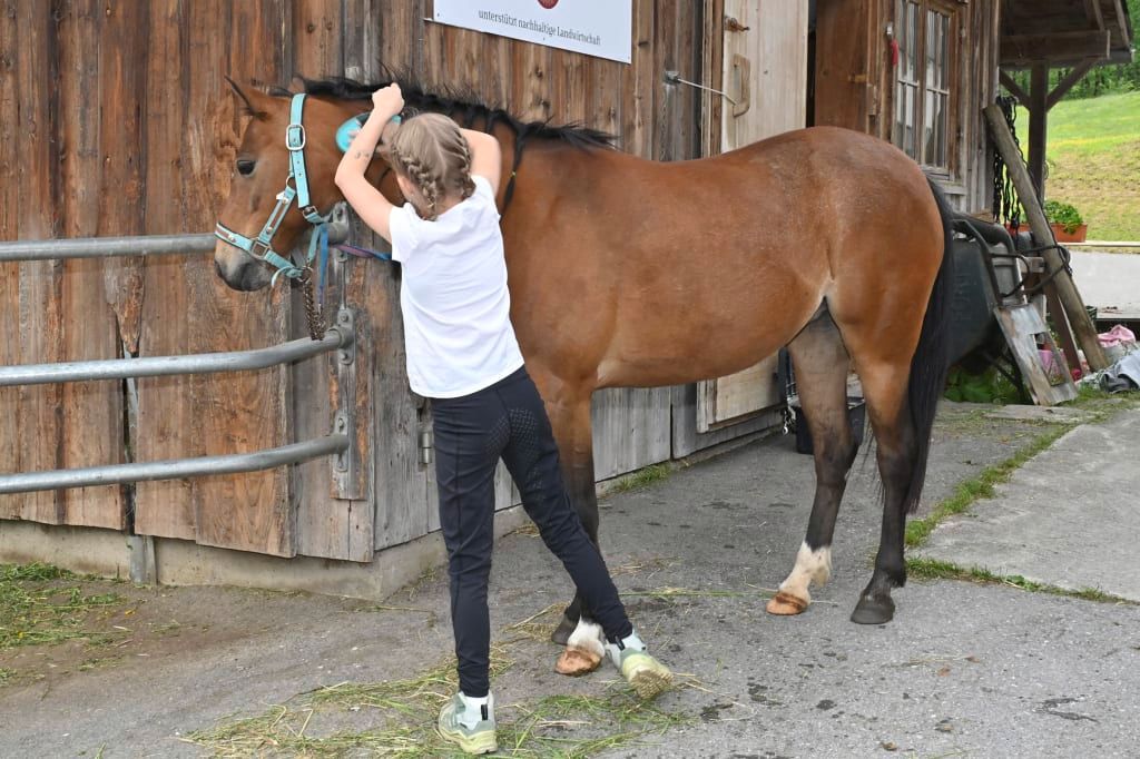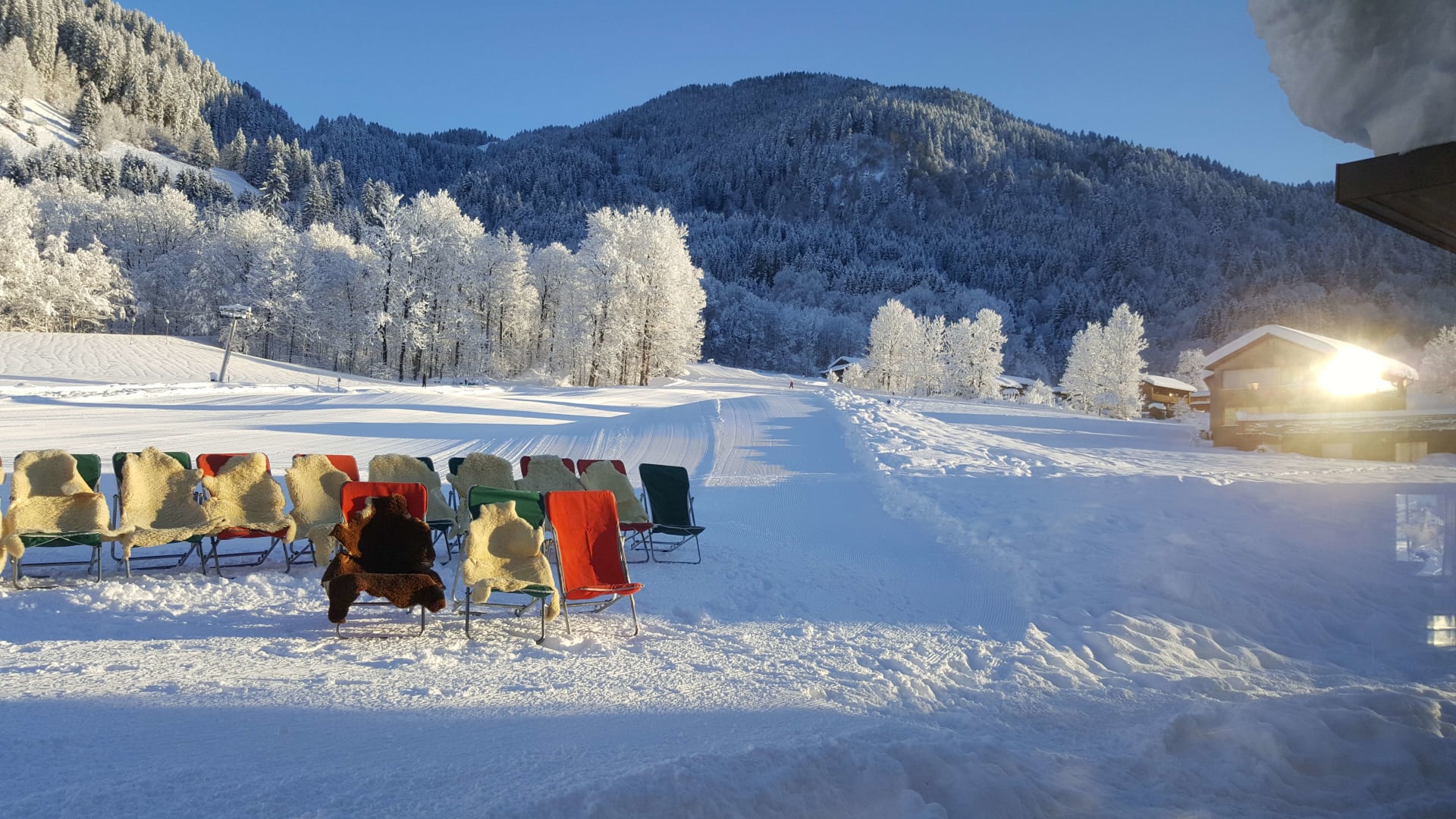 Und am Abend in den Stall zu Kuh, Ziege und Pferd. Schaut zu beim Melken oder füttert unseren Hasen. Wer vom Schnee nicht genug hat startet einen lustige Rodelpartie auf der Skipiste.