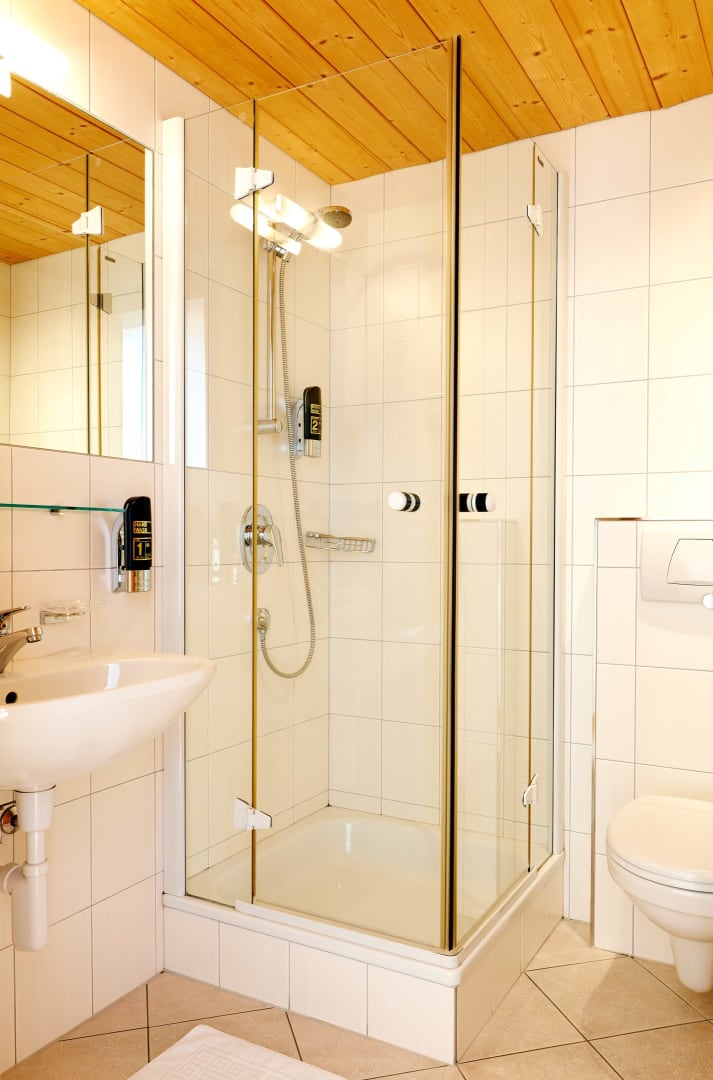 gemütlich eingerichtet mit Bad (Dusche und WC), TV und kostenlosem W-Lan