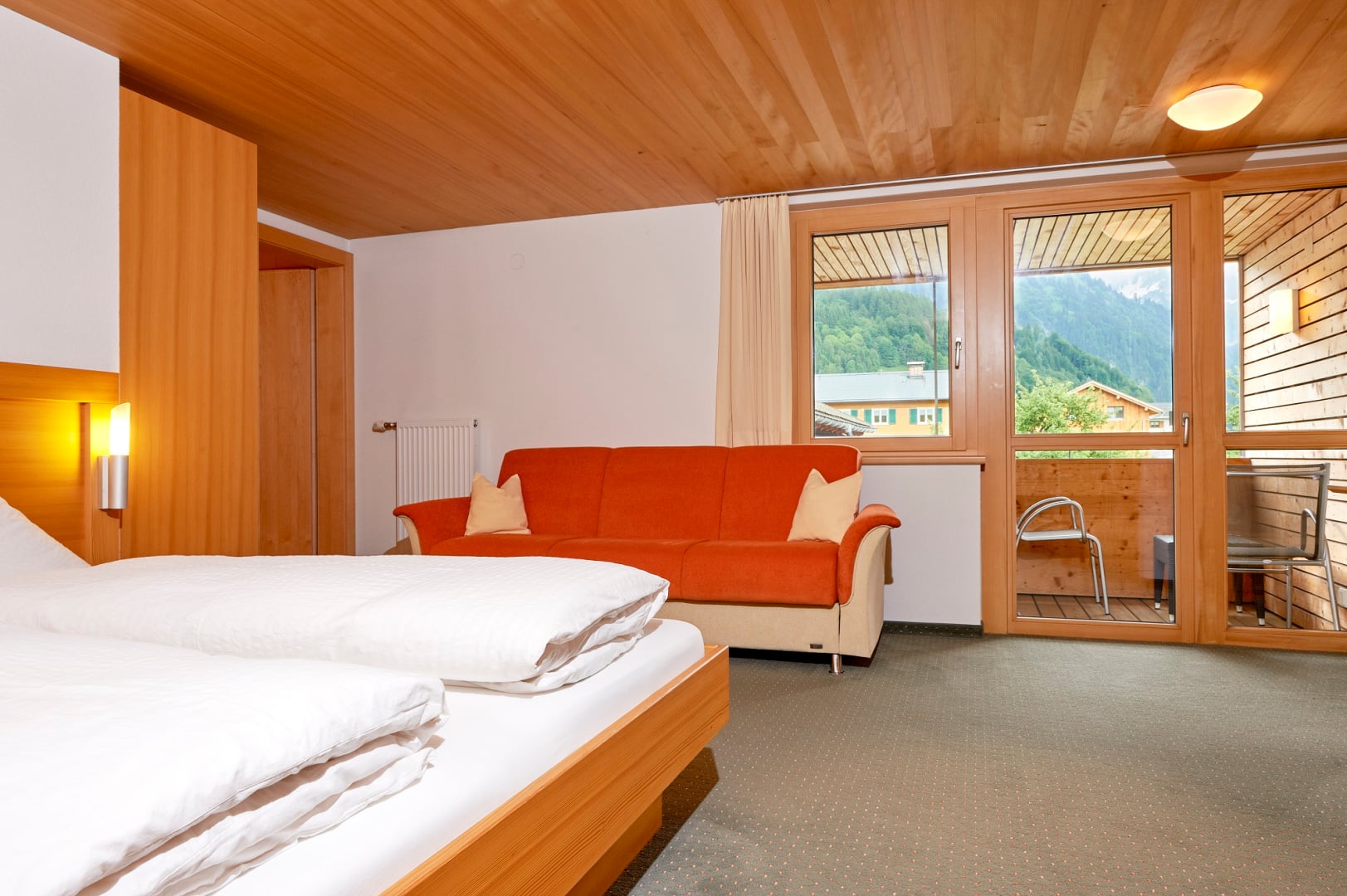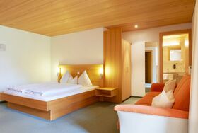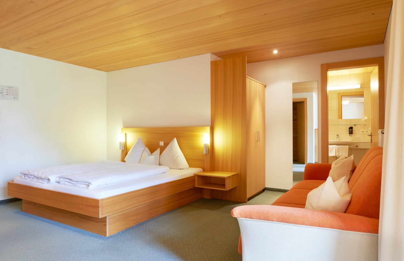 Das gemütliche Doppelzimmer bietet höchsten Komfort und ist ausgestattet mit einer Sitzgarnitur, einem Schreibtisch, und einem Mini-Kühlschrank. Des Weiteren verfügt es über ein geräumiges Bad mit Dusche und WC, einem Balkon sowie TV u. Telefon. Kostenloses W-Lan im Zimmer.