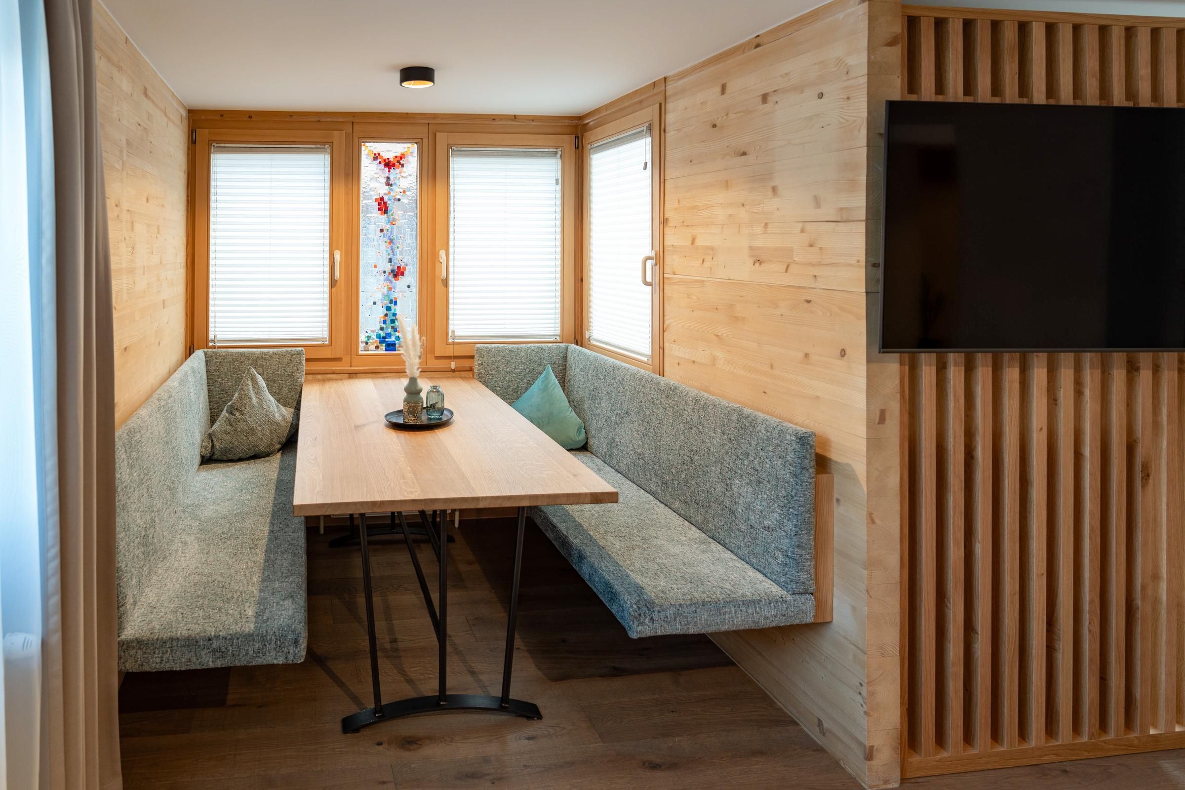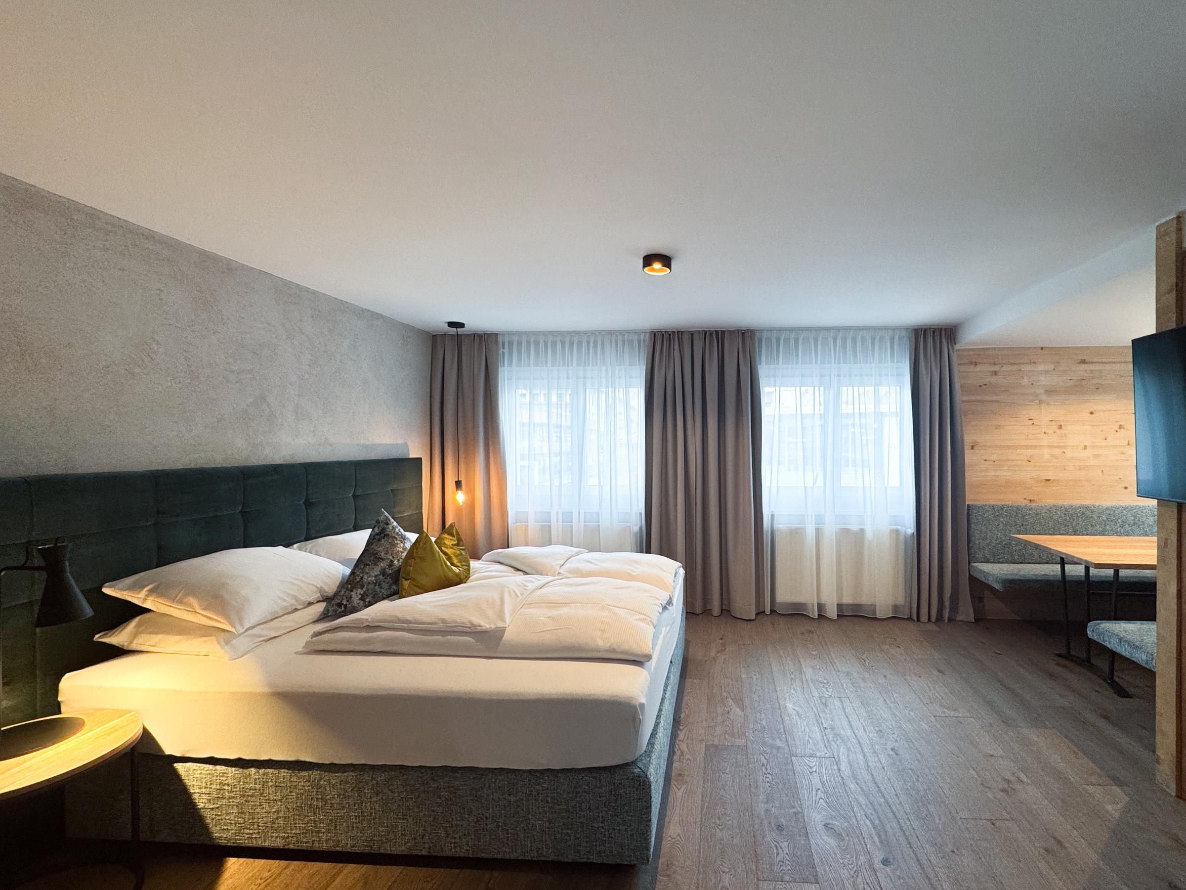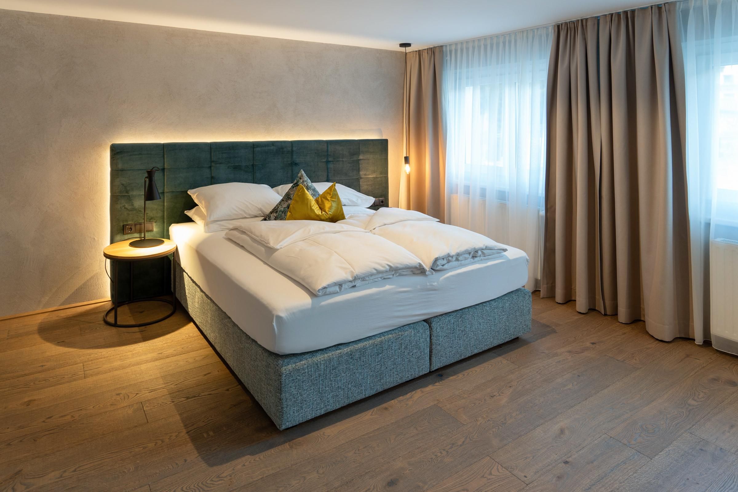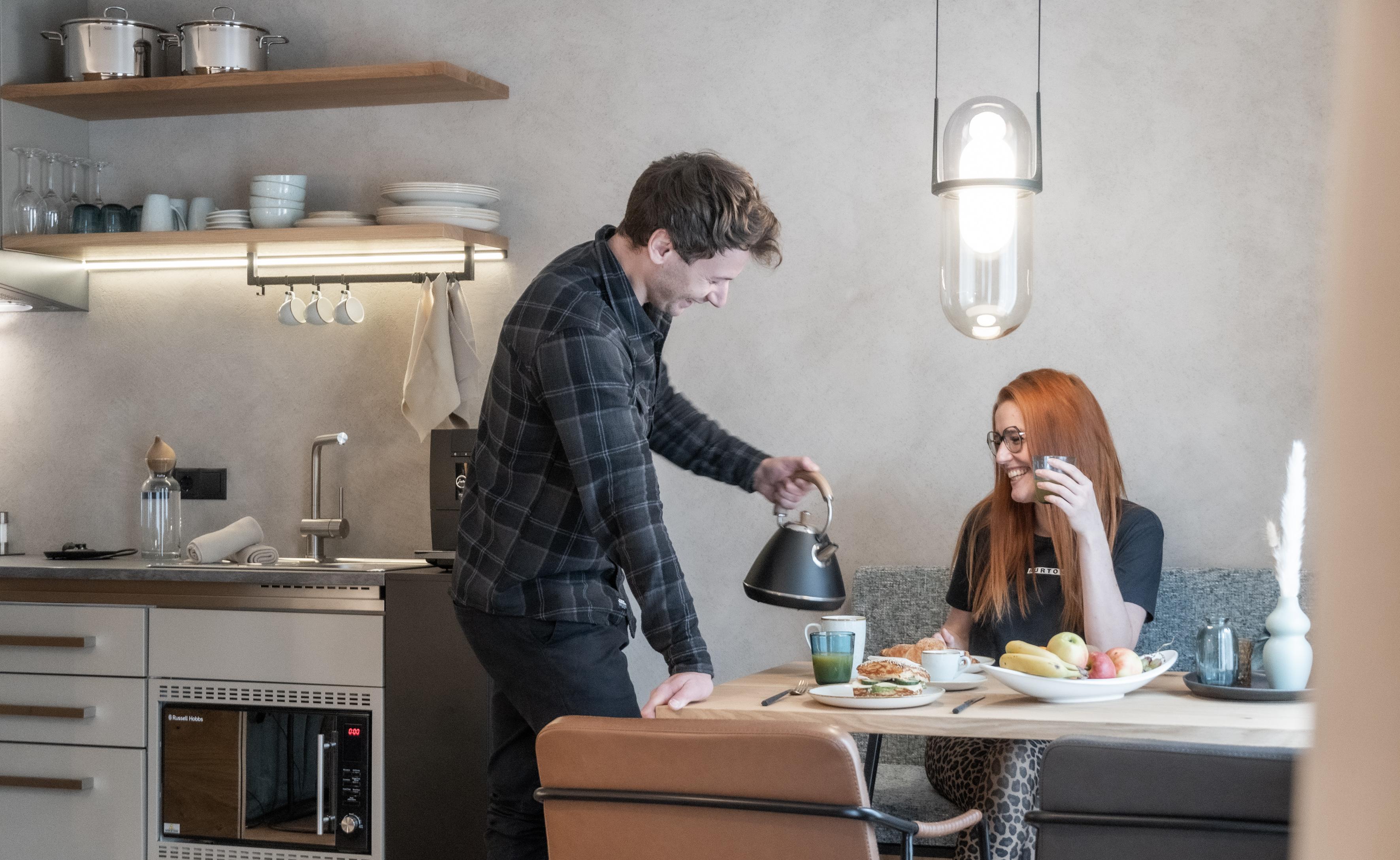 Superior Appartement mit ca. 60 m²: 2 Schlafzimmern mit Boxspringbett als Doppelbett oder 2 Einzelbetten, Sitzbereich mit großem Tisch und Balkon bei beiden Räumen; 2 separate Badezimmer, eines mit Regendusche, das andere mit Badewannendusche, WC, Dyson Fön, Kosmetikspiegel, Glanz & Glory Pflegeprodukte; komplett ausgestattete Küche mit Geschirrspülmaschine, Mikrowelle mit Backfunktion, Kühlschrank, Kochfeld, Jura-Kaffeemaschine, Küchenausstattung uvm.; Extras: Wärmflasche, Rucksack für Tagesausflüge, Yogamatte, Marshall Lautsprecher, TV, möblierter Balkon, Wellnesstasche mit Bademantel