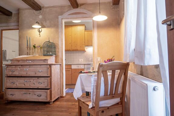 Appartement Brotkammer ideales Zuhause für Zwei, die gerne zusammenrücken. Früher wurde hier für die Großfamilie das Brot gelagert. Dieser Duft wird Sie auch heute noch verzaubern. SAT, W-LAN,  Microwelle, Schiraum, Waschmaschine
