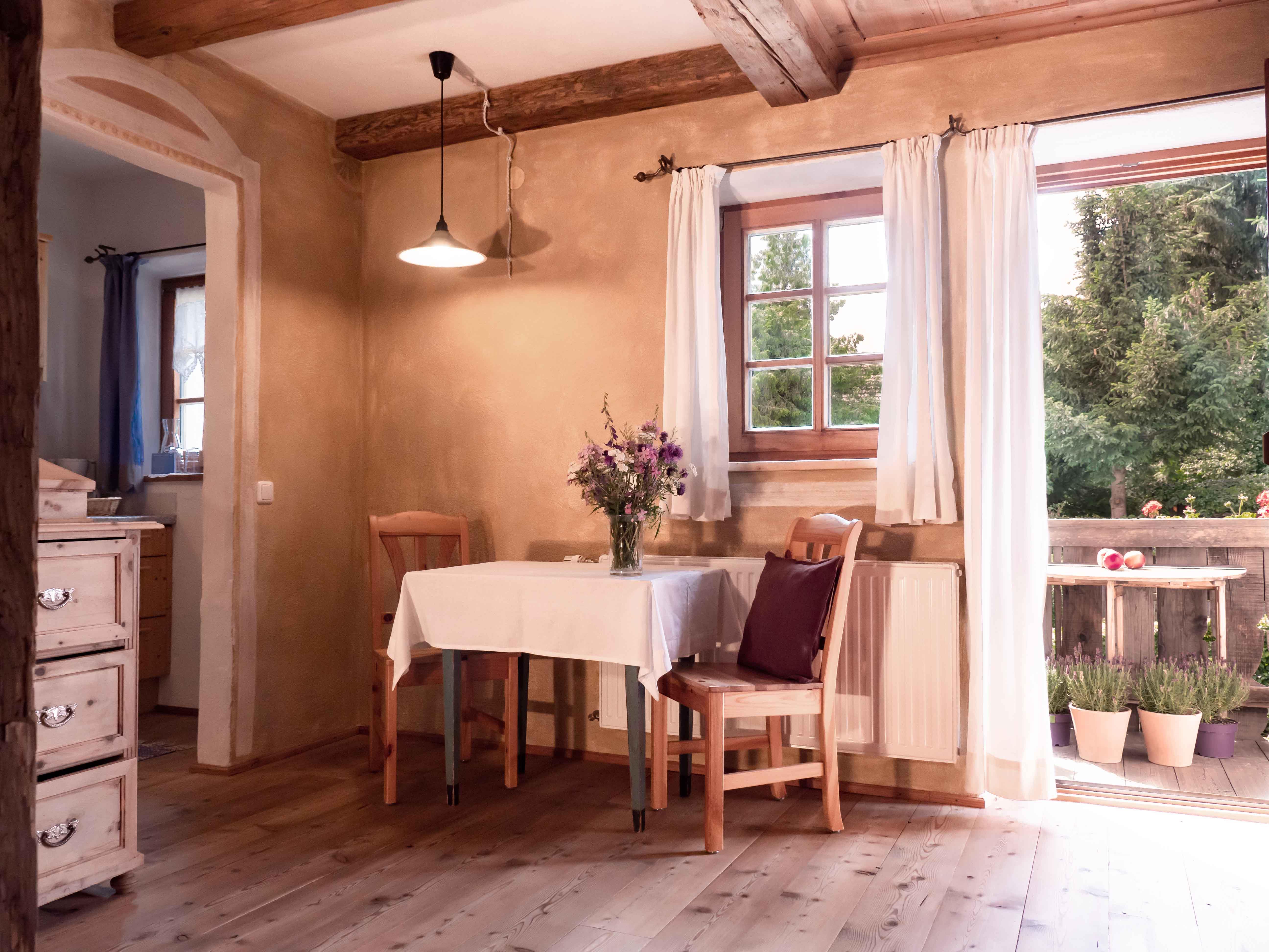 Mehr als zwei Jahrhunderte lang war der „Strickenmacher-Hof“ die Heimstätte einer Großfamilie, die aus mindesten zwölf Personen bestand. Um die große Zahl an hungrigen Mündern täglich satt zu bekommen, wurden Gemüse, Kartoffeln und Getreide selbst angebaut. Einmal im Monat wurde Brot auf Vorrat gebacken. In unserem Appartement „Brotkammer“ befinden sich noch Teile eines Brotrahmens, in dem dieses dann gelagert wurde. Sein Duft begleitet Sie noch heute in diesem gemütlichen Appartement - im Luxus des Einfachen!