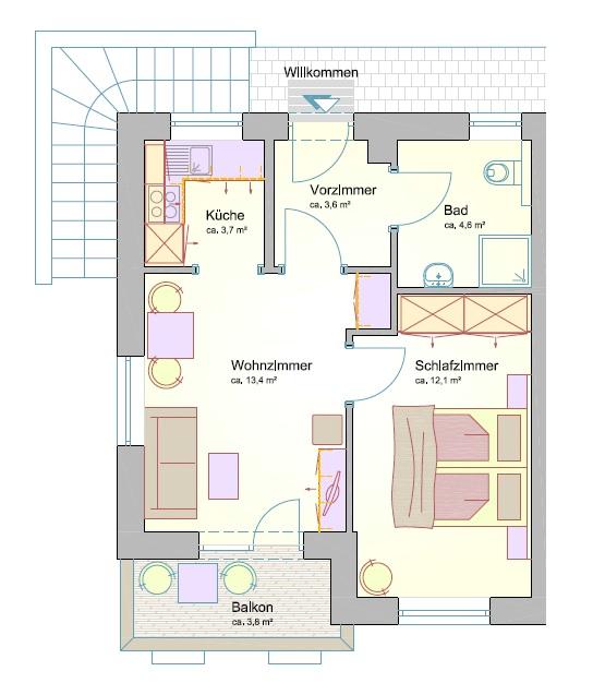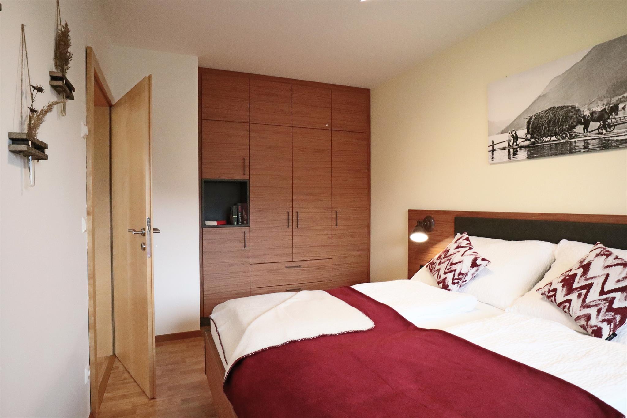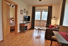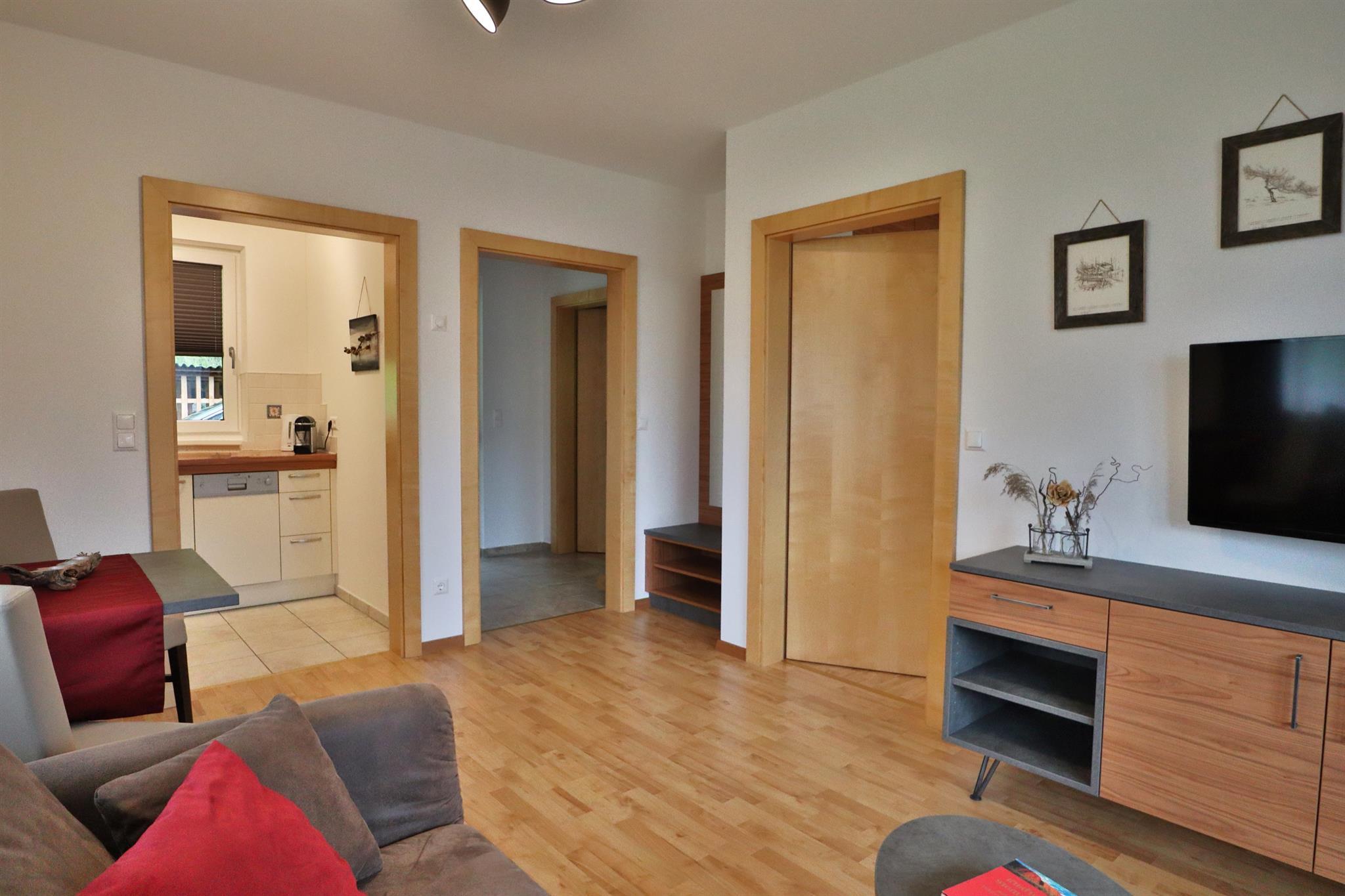 Die Ferienwohnung befindet sich im ersten Stock, ist aber vom Auto aus, barrierefrei zu erreichen. Der Balkon bietet einen herrlichen und ruhigen Blick über den See. Die Wohnung besteht aus 4 Räumen. Sie ist gemütlich und modern eingerichtet. Die Wohnung beinhaltet ein Wohnzimmer, ein Schlafzimmer, ein Vorzimmer, ein Bad mit integrierter Toilette und eine komplett eingerichtete Küche (mit Geschirrspüler, Kühlschrank, Mikrowelle, Kaffeemaschine, Elektroherd mit Backofen und Wasserkocher). Insgesamt misst die Wohnung ca. 41m².