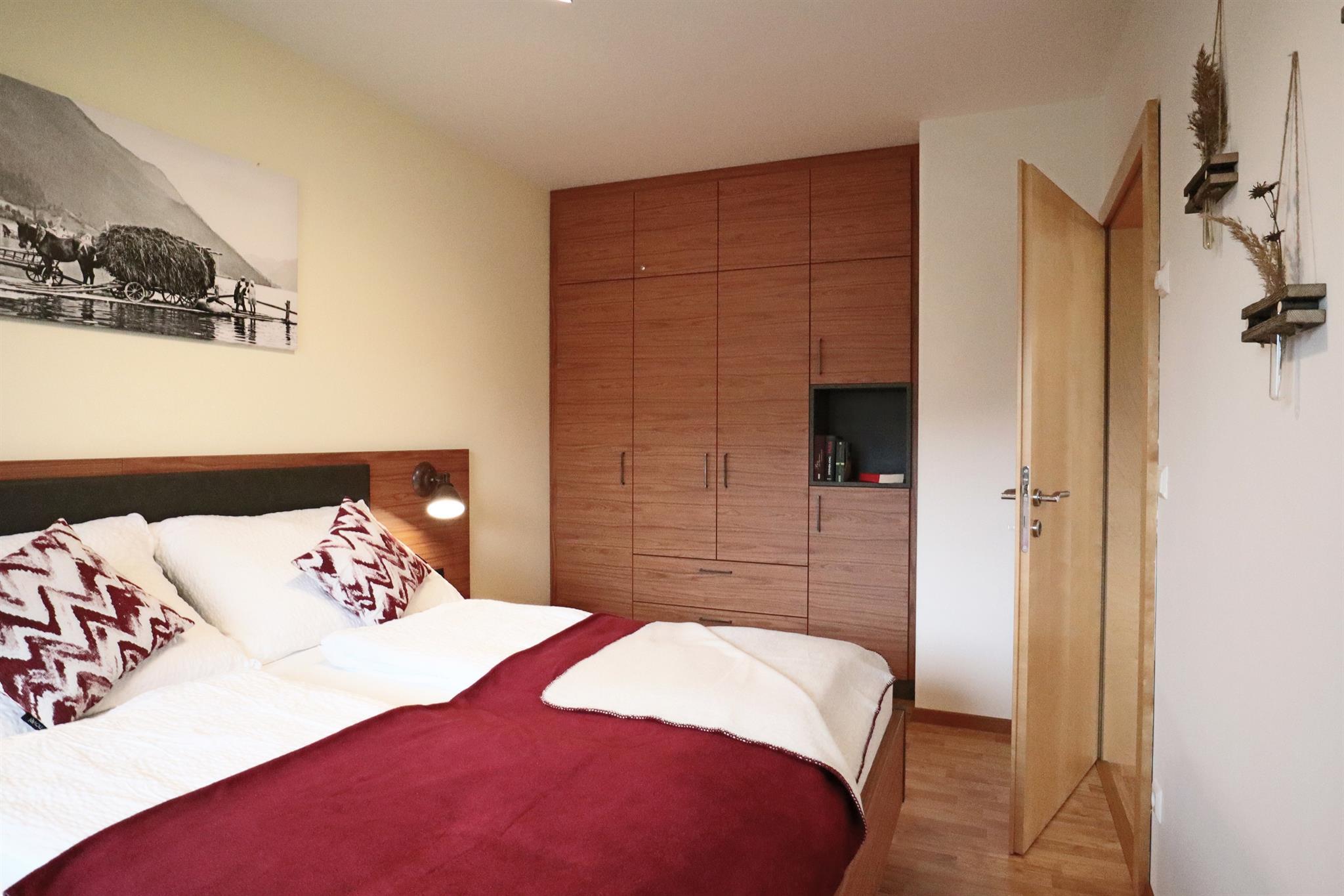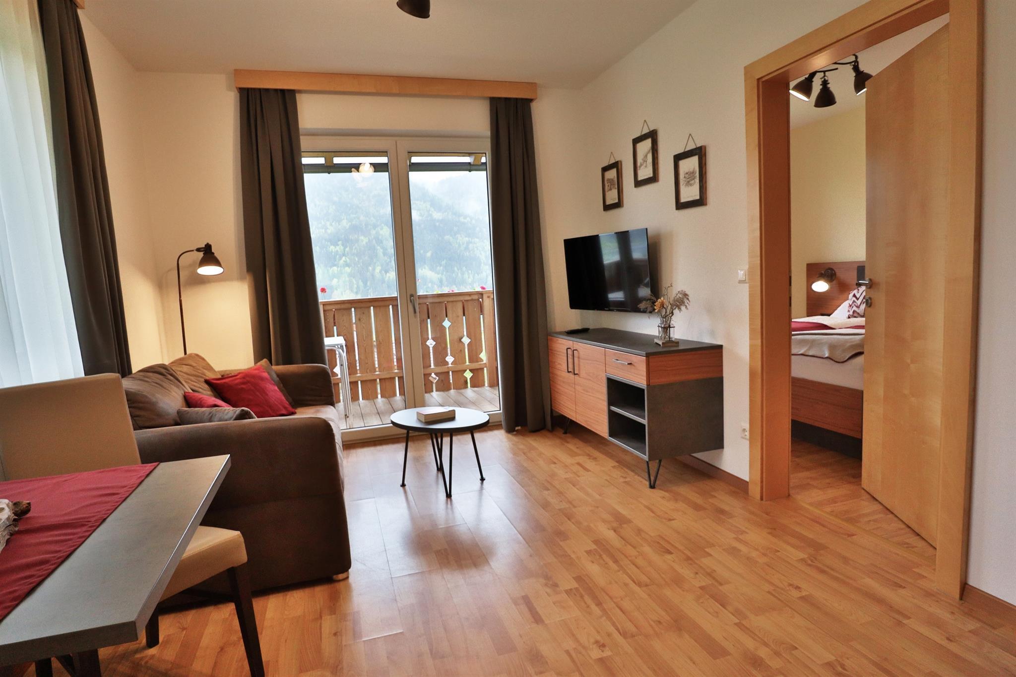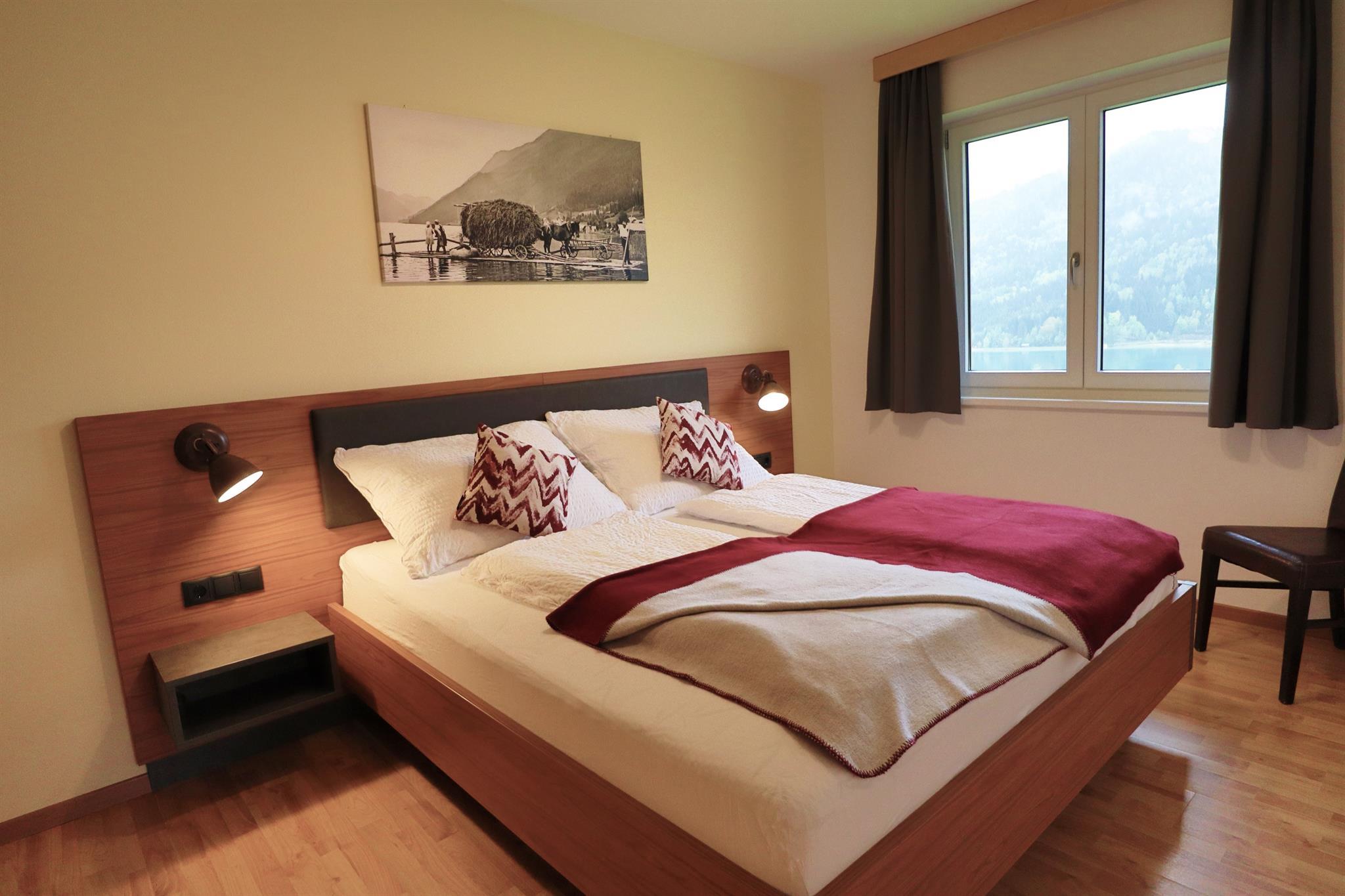 Die Ferienwohnung befindet sich im ersten Stock, ist aber vom Auto aus, barrierefrei zu erreichen. Der Balkon bietet einen herrlichen und ruhigen Blick über den See. Die Wohnung besteht aus 4 Räumen. Sie ist gemütlich und modern eingerichtet. Die Wohnung beinhaltet ein Wohnzimmer, ein Schlafzimmer, ein Vorzimmer, ein Bad mit integrierter Toilette und eine komplett eingerichtete Küche (mit Geschirrspüler, Kühlschrank, Mikrowelle, Kaffeemaschine, Elektroherd mit Backofen und Wasserkocher). Insgesamt misst die Wohnung ca. 41m².