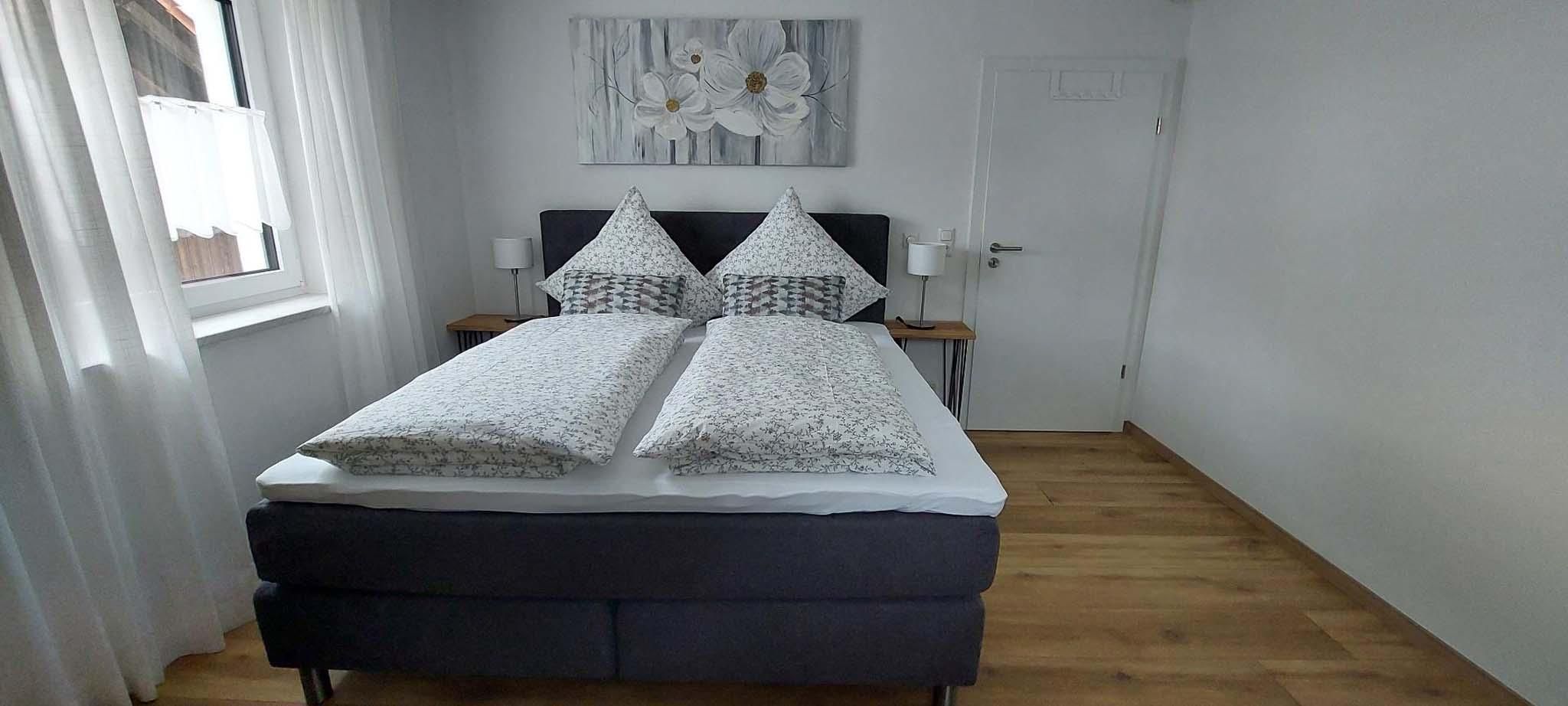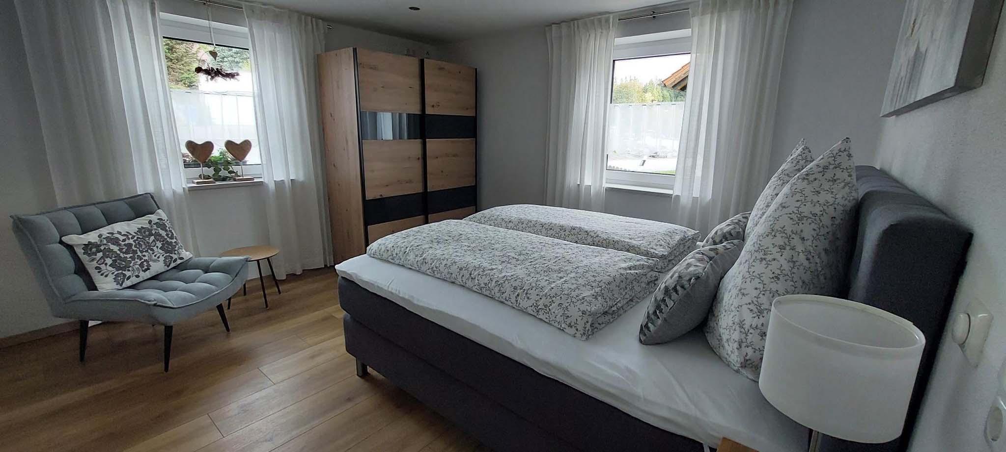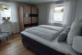 Die Ferienwohnung verfügt über 3 separate moderne Schlafzimmer mit Boxspringbett. 2 Zimmer mit Doppelbetten 180x200m, 1 Zimmer mit Einzelbett 140x200m.