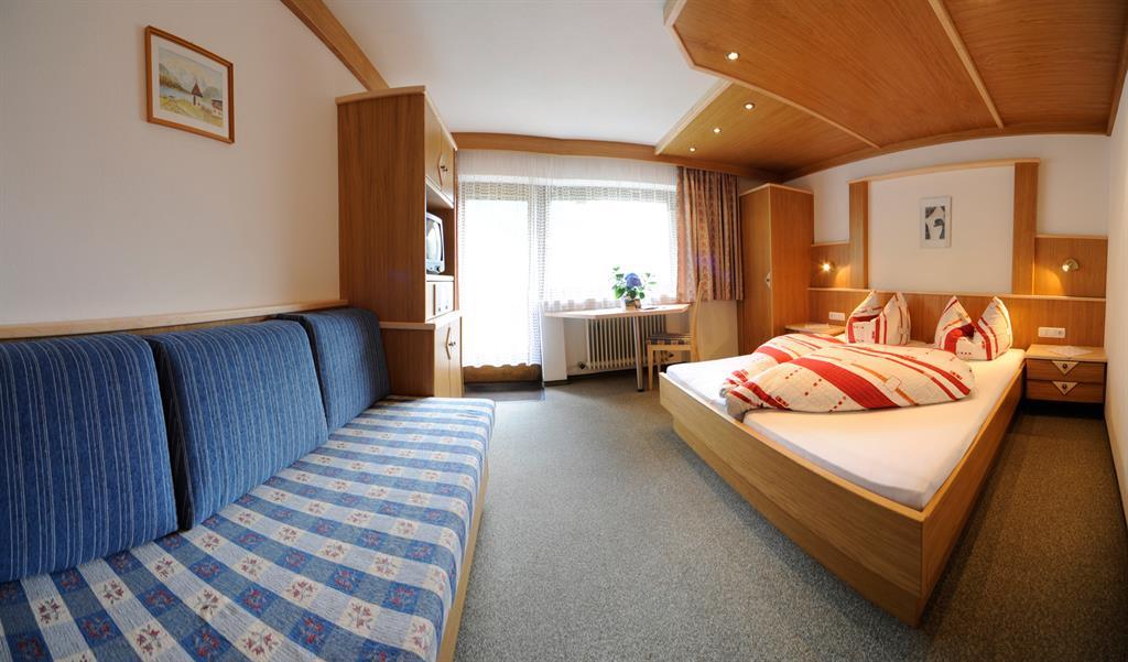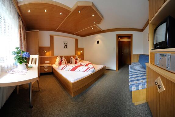 Komfortables Mehrbettzimmer aus Vollholzmöbel mit Balkon, DU/WC,TV, Radio, Safe, Fön, Frühstücksbüffet, Sauna 2x wöchentlich und Carport je nach Verfügung.