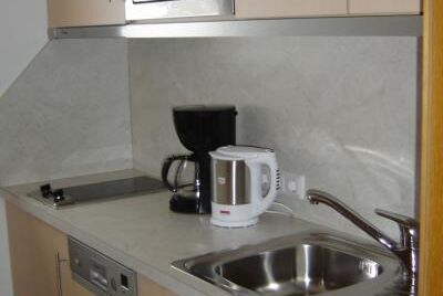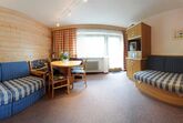 Ferienwohnung mit 1 Schlafzimmer, Wohn- bzw. Wohnschlafraum, Küche (mit Spülmaschine, Mikrowelle, Cerankochfeld 2 Platten, Kühlschrank mit Gefrierfach,...), DU/WC, 2x Balkon,TV, Radio, Safe, Fön, Sauna 2 x wöchentlich und Carport je nach Verfügung