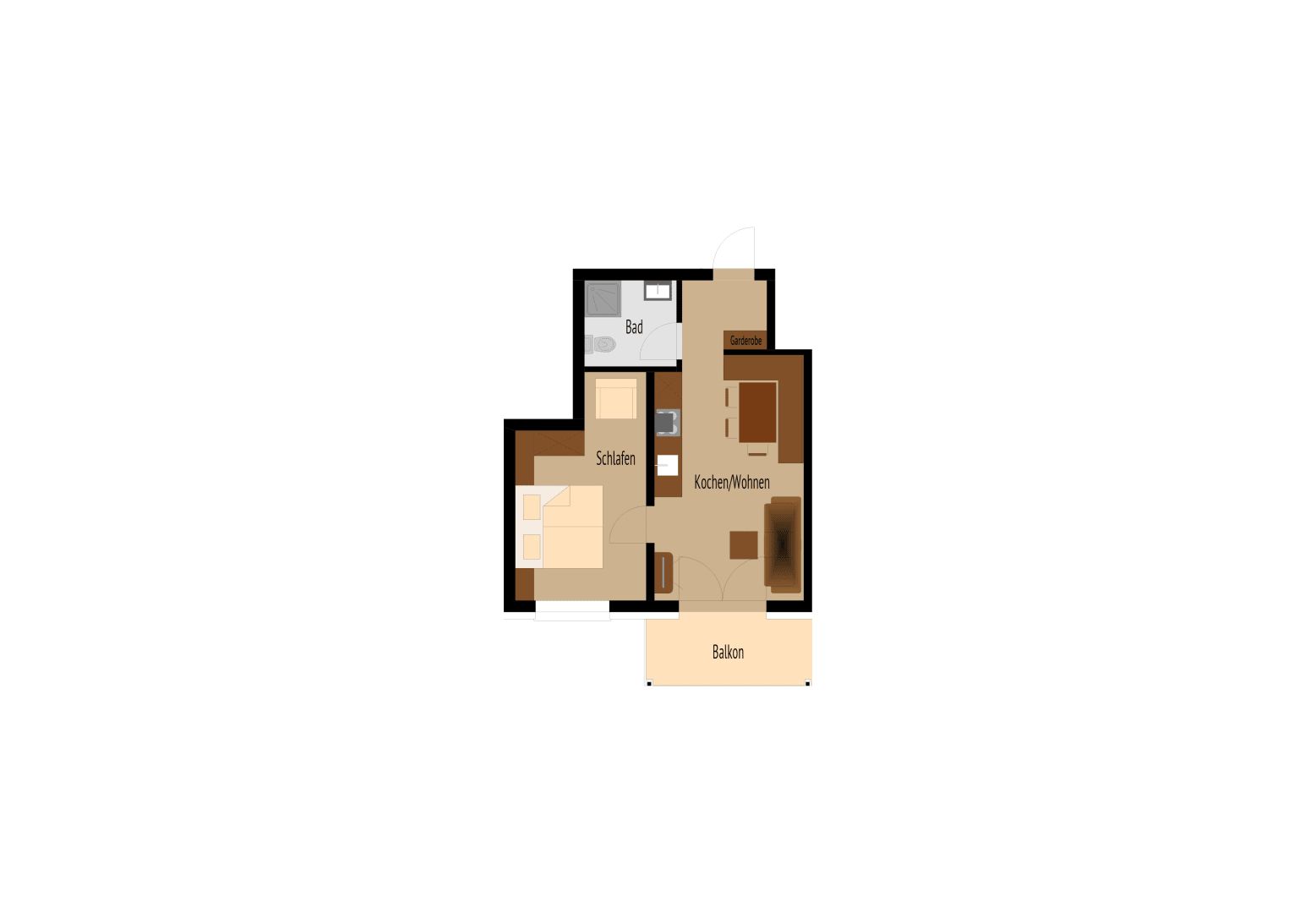 Das Appartement Arnika befindet sich im gleichen Stockwerk wie das hauseigene Restaurant und ist barrierefrei erreichbar. Es verfügt über ein Schlafzimmer, ein gemütlich eingerichteten Wohn- und Küchenbereich mit Esstisch, Sitzbank und Sitzgarnitur. Der Balkon befindet sich südseitig. Geräumiges Badezimmer mit Dusche und WC. TV, kostenloses W-Lan, Telefon im Appartement. Eigener Tiefgaragenplatz.