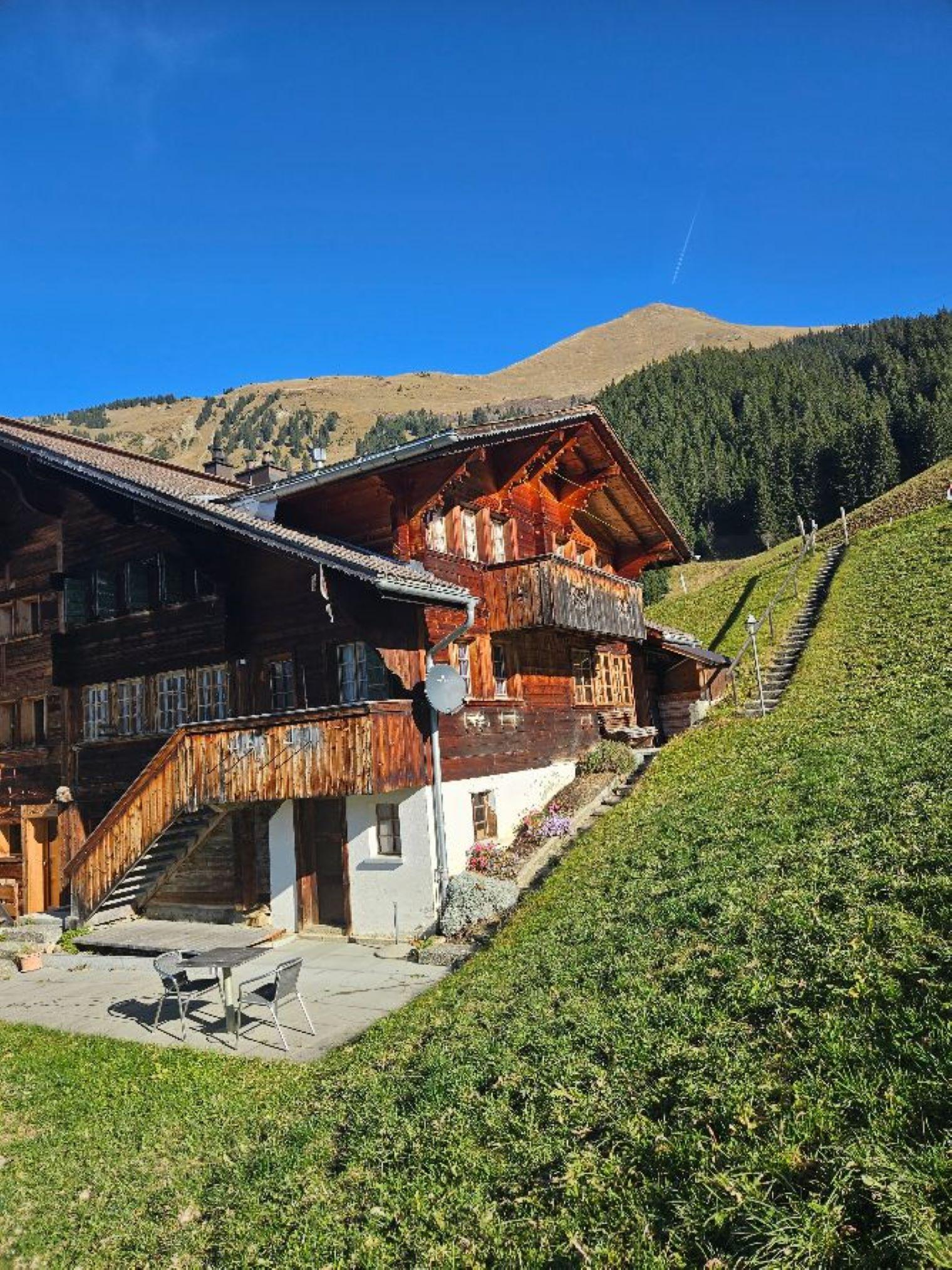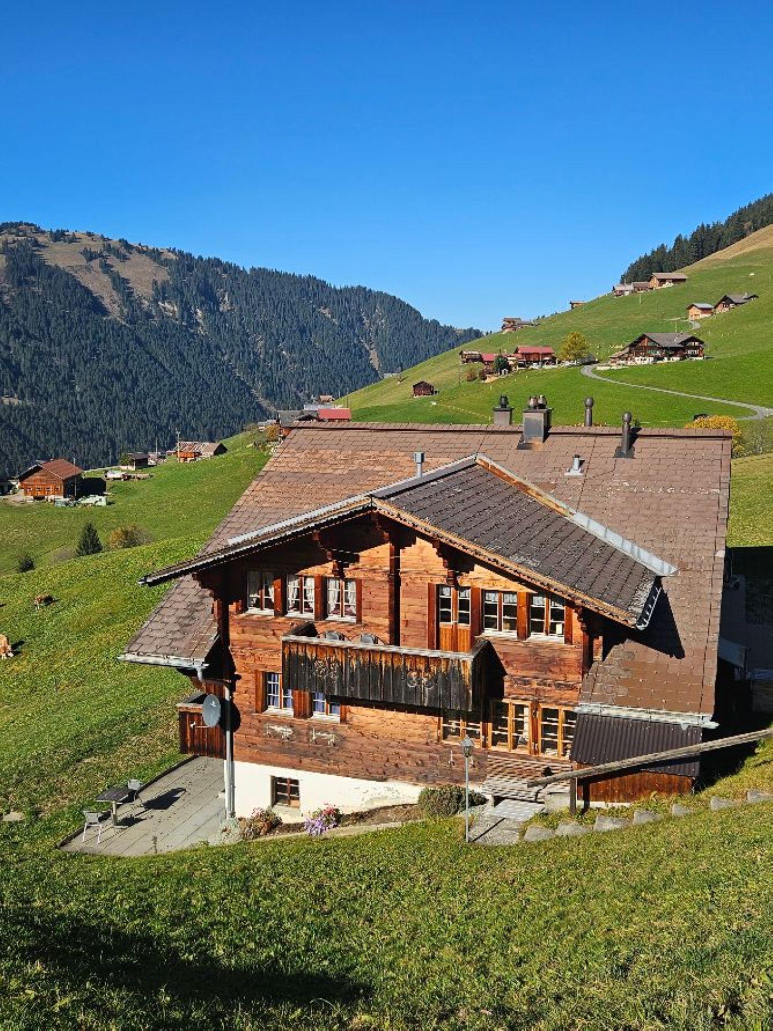 3.5-Zimmerwohnung (60m2) im 1. Stock an ruhiger Lage, etwas ausserhalb des Dorfes Lauenen (2km zum Dorfzentrum). Die Raumhöhe beträgt zwischen 1.88 m und 1.95 m. Aussenplatz mit Tisch und Stühlen mit schöner Aussicht. Zugang zur Wohnung ist nur über eine Treppe möglich. Optimaler Ausgangspunkt für kurze oder auch ausgedehnte Wanderungen oder Schneeschuh-Touren. Das Chalet liegt auf 1460m (Dorfzentrum Lauenen auf 1250m) und ist gut mit dem Auto erreichbar. Im Winter sind Schneeketten oder 4x4 Antrieb ein Muss. Ein offener Parkplatz sowie ein Abstellraum für Ski- und Sportgeräte stehen zur Verfügung. WiFi.