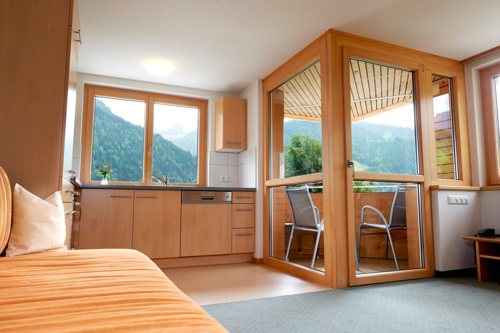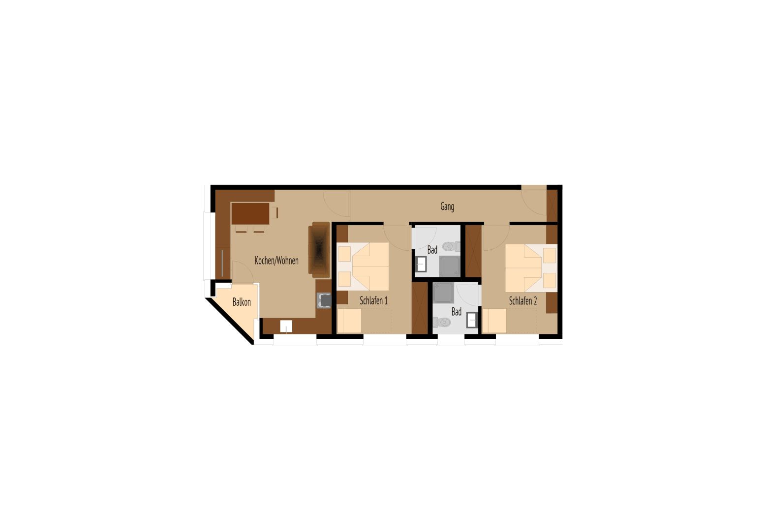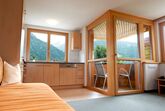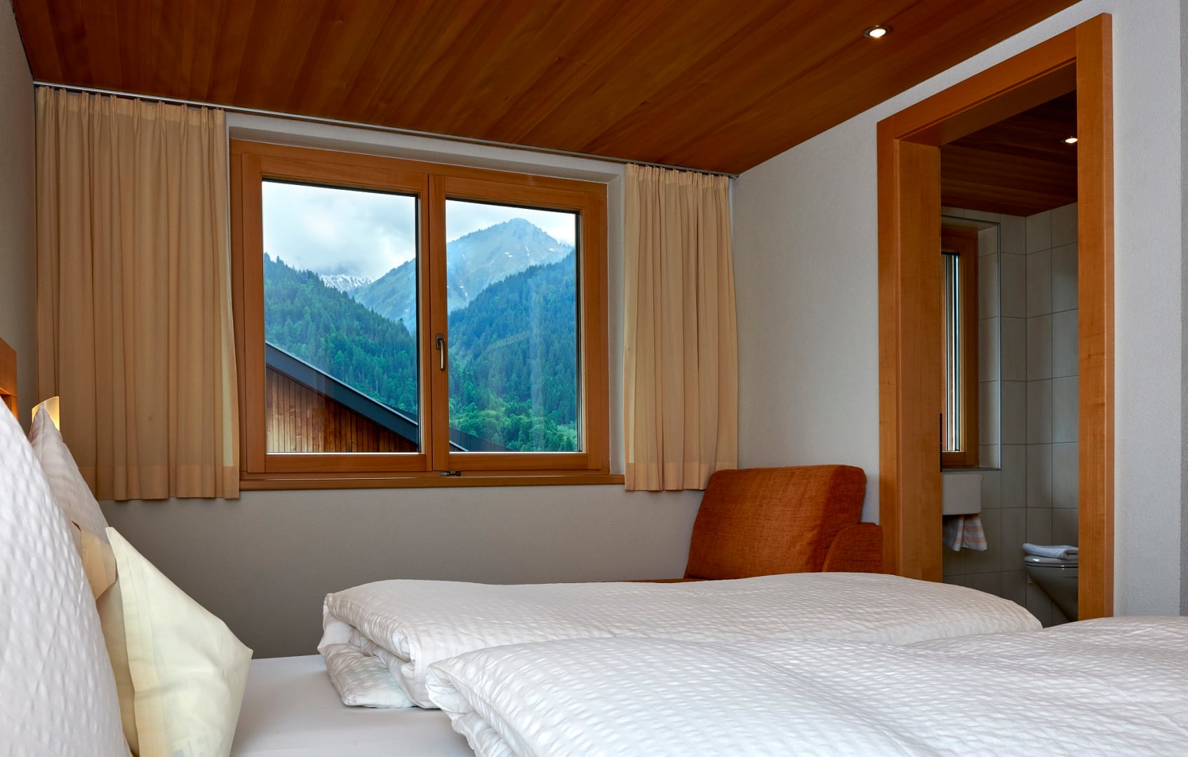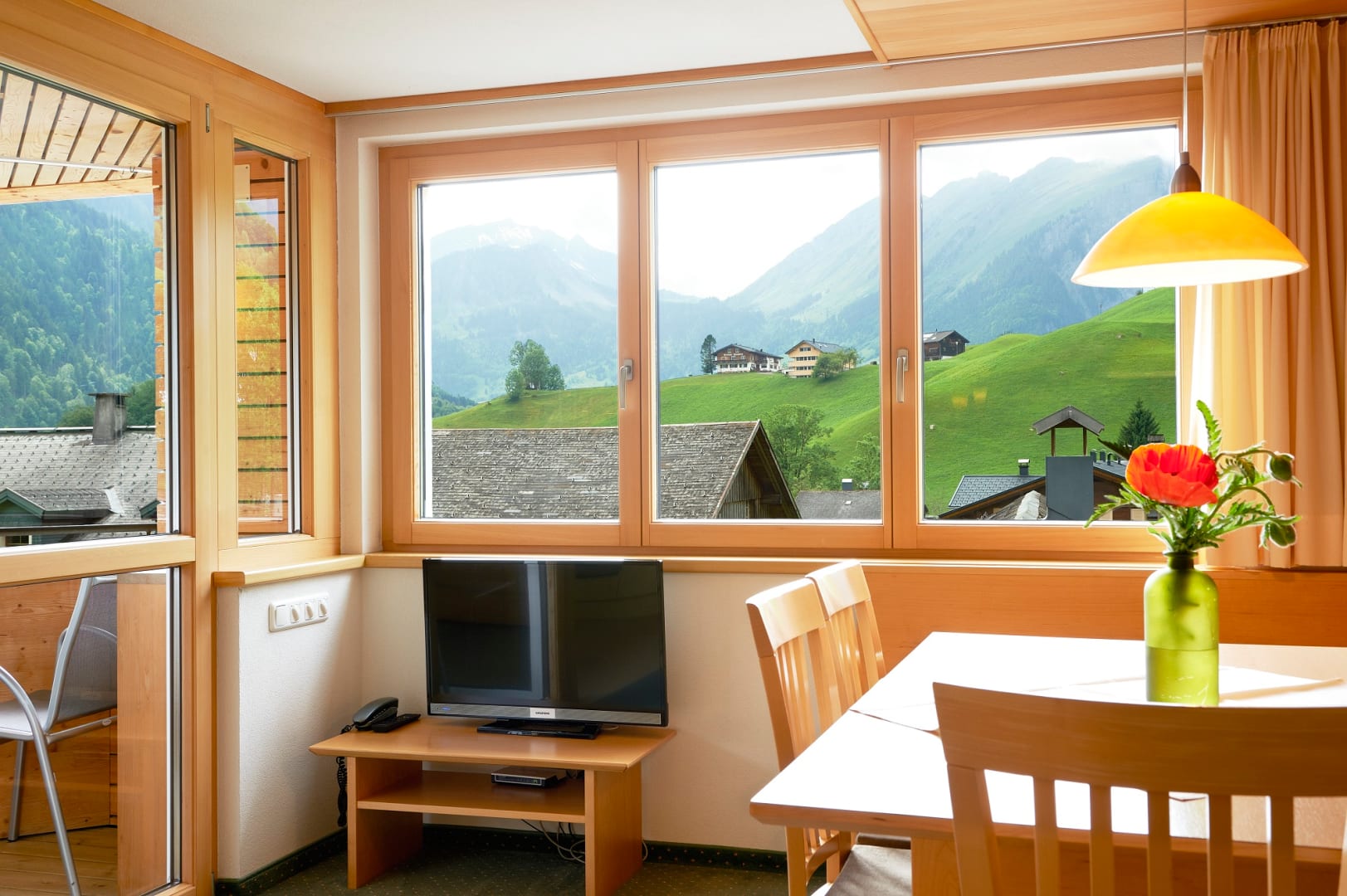 Das Appartement Kanisfluh befindet sich im zweiten Obergeschoss mit Balkon auf der Südwestseite. Es verfügt über zwei Schlafzimmer mit jeweils einem Bad (Dusche und WC), einen geräumigen Wohn- und Küchenbereich mit großem Esstisch, Eckbank und gemütlicher Sitzgarnitur. TV, kostenloses W-Lan, Telefon im Appartement. Eigener Tiefgaragenplatz.