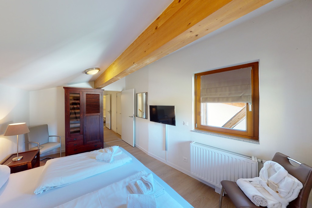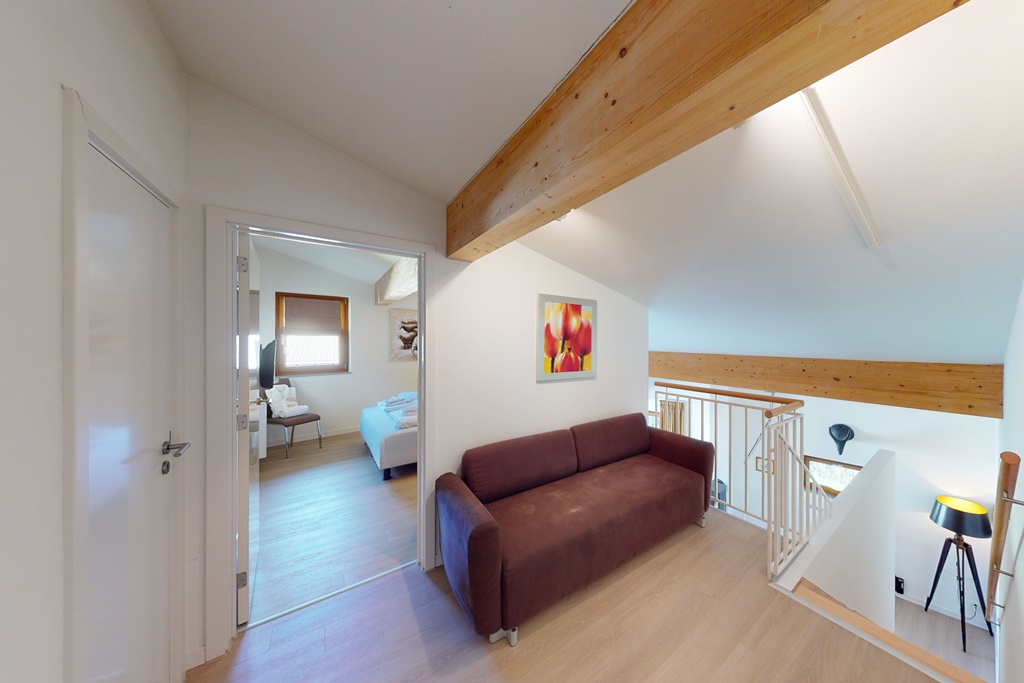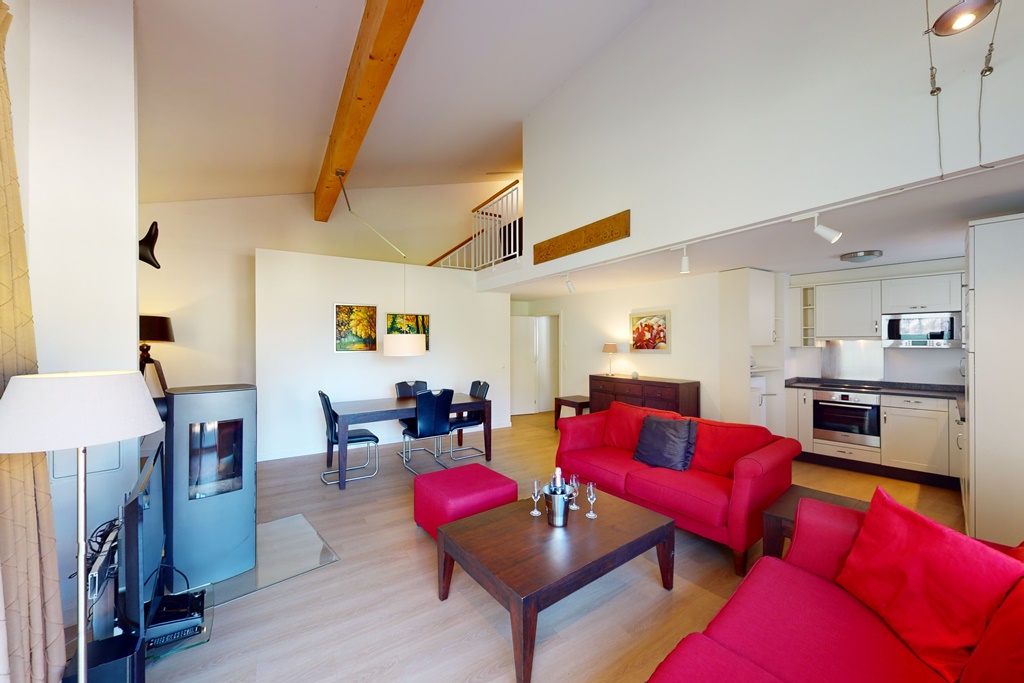 Die Dachwohnung verfügt überZwei Etagen2 Schlafzimmer mit King-Size Bettenein Badezimmer mit Bad/Dusche, Sauna, Toilette und Lavaboeine separate Toilette mit Duschbrause und Lavaboeine komplett ausgestattete Küche mit Nespresso-Kapselmaschineein Balkon mit Berg- und SeesichtInneneinrichtung & Technik