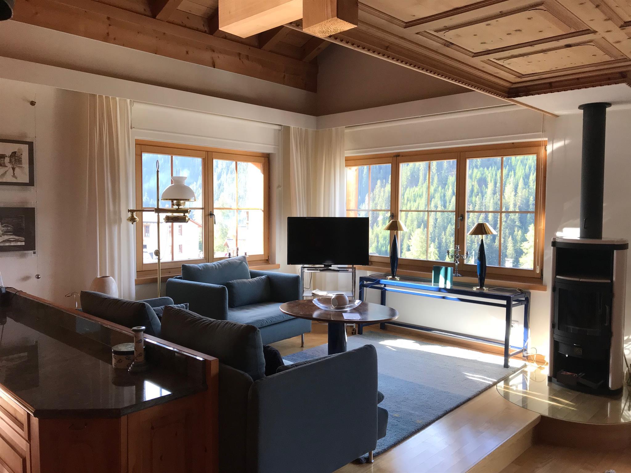 Wunderschöne, helle 3 ½ - Zimmer Maisonette Wohnung (75m2) für max. 5 Personen ideal für kleine oder grössere Familien; Parkplatz; Balkon mit atemberaubender Bergsicht; zusätzlich zum grosszügigen Wohnraum, gibt es auf der Empore eine schöne Sitzecke mit einem Schlafsofa; im unteren Teil auf der Veranda steht ein weiteres Schlafsofa für 1-2 Personen; Fernseher, WLAN; 1 Schlafzimmer mit Doppelbett und eigenem Badezimmer mit Badewanne; weiteres Bad/WC direkt am Wohnzimmer angeschlossen; Bettwäsche; Nichtraucher Wohnung; Haustiere auf Anfrage!