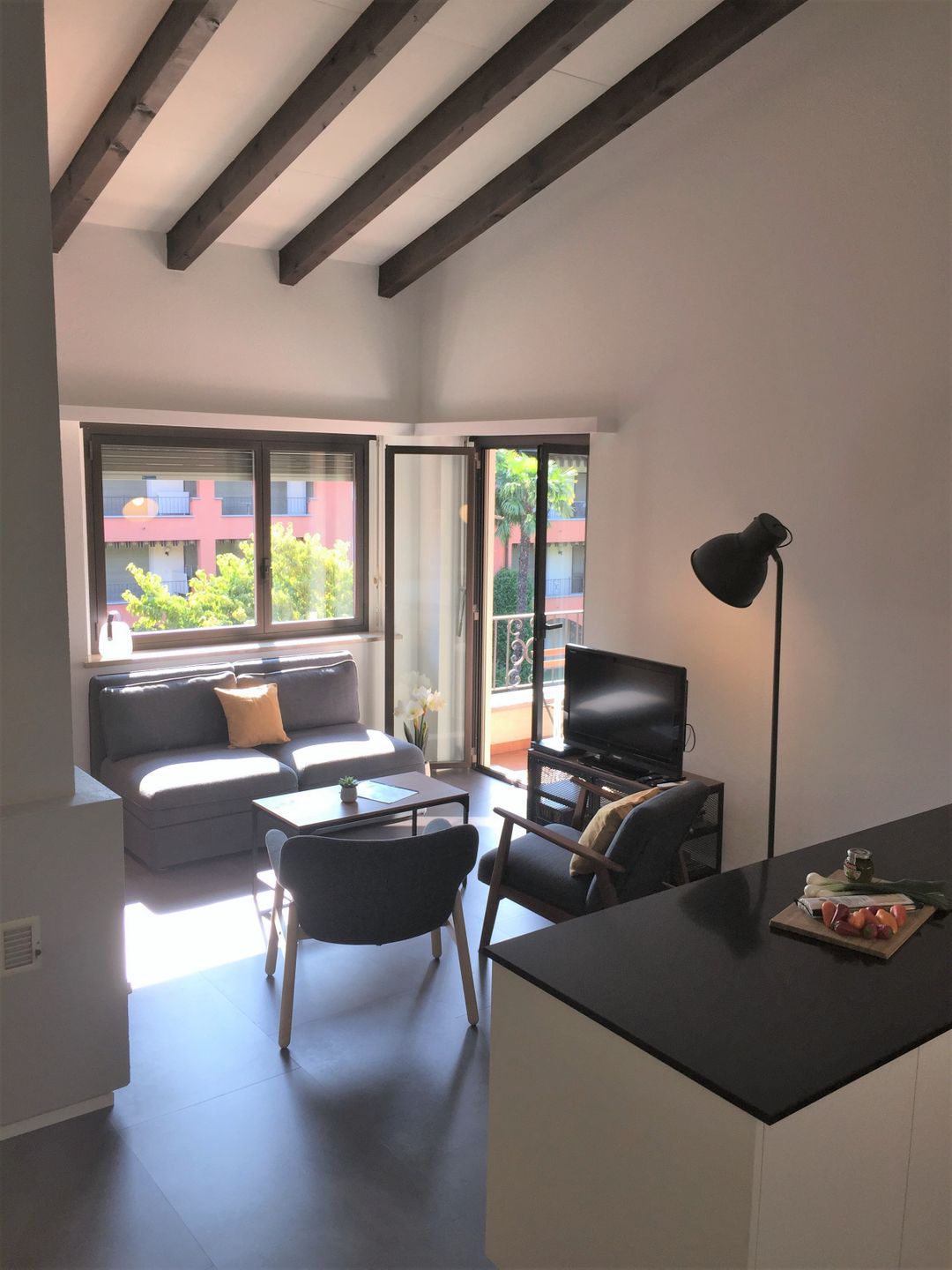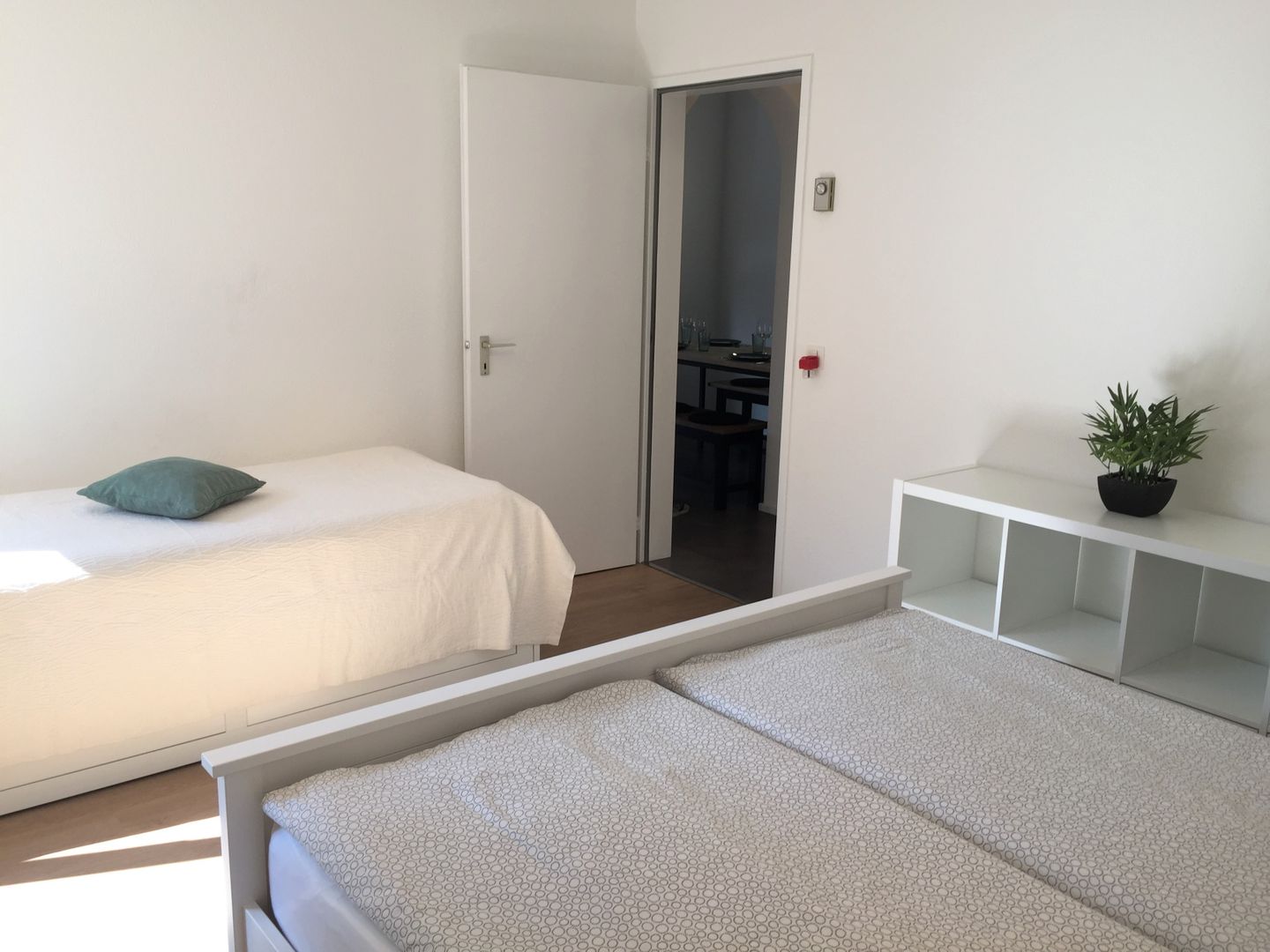 Die neu renovierte 3.5 Zimmer-Duplex-Wohnung bietet Platz für 4 bis 5 Personen (1 Kind). Die Wohnfläche verteilt sich auf zwei Etagen. Eingang von der unteren Ebene mit Garderobe und Ganzkörperspiegel. Dort befindet sich ein Schlafzimmer mit Doppelbett und Sofa und ein kleiner Balkon mit Stühlen, sowie ein Badezimmer mit begehbarer Dusche und WC. Der obere Bereich ist dem Wohnen gewidmet und verspricht durch die tolle Raumhöhe und Sichtbalken Wohlbefinden. Der Wohnbereich bietet eine gemütliche Sofagarnitur und zwei Sessel, Flachbildschirm-TV mit Internet, einen Esstisch mit Sitzbänken und eine grosszügige moderne, offene Küche. Der Balkon, der mit einem Esstisch und 4 Stühlen ausgestattet ist, bietet einen wunderschönen Blick in die gepflegte Gartenanlage. Auf dieser Ebene befindet sich ein weiteres Doppelzimmer mit offenem Kleiderschrank, einer Kommode und einem Ausziehbett. Ein weiteres Badezimmer mit begehbarer Dusche und WC runden das Angebot ab. Den Aussenpool der Residenz und die Liegewiese können Sie mitbenützen. Reservierter Parkplatz in der Tiefgarage.