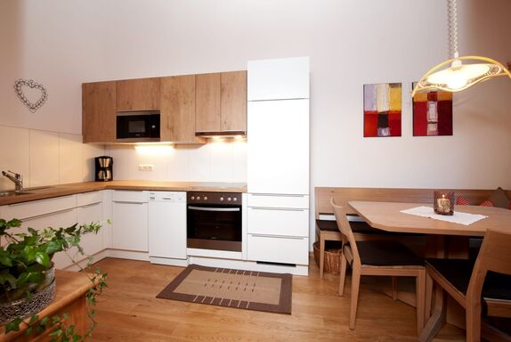 • eine gemütliche, voll ausgestattete Wohnküche, mit kleiner Ausziehcouch, Spülmaschine, Kaffeemaschine, Backofen und Mikrowelle
