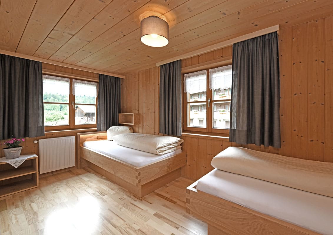 Ihren wohlverdienten Urlaub verbringen Sie in geräumigen und hellen Naturholzwohnungen. Viel Platz rund um unser Haus lädt zum Herumtoben und zum Schneehöhlen bauen ein.