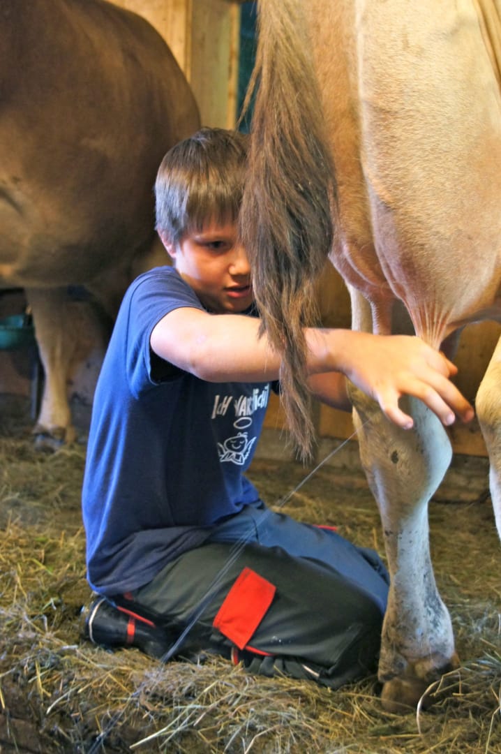 Auf unserem Kinderbauernhof gibt es viel zu tun, deshalb freuen wir uns ganz besonders über die Mithilfe in unserem neuen Laufstall. Unsere Ponys, Ziegen, Hasen, Katzen, Kühe und Kälbchen sind für Streicheleinheiten immer zu haben und sogar das Kühe Melken darf probiert werden.