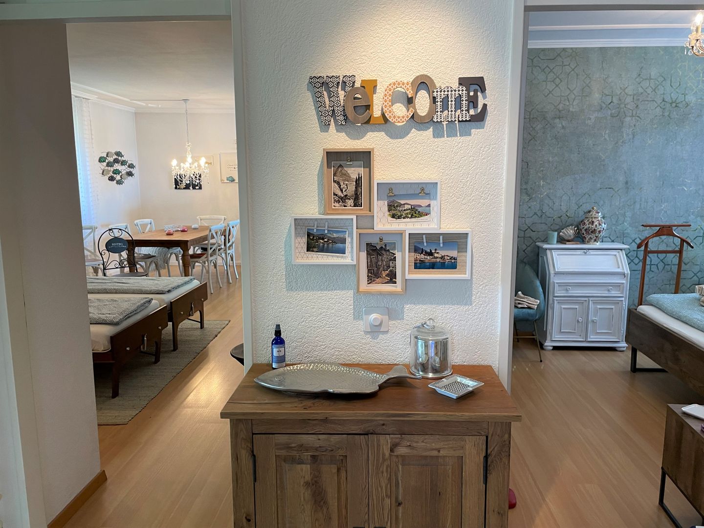 Die 2.5 Zimmerwohnung eignet sich für 4 Personen. Das geräumige Wohn-, Esszimmer ist mit einer gemütlichen Sitzgarnitur und Esstisch, sowie einem Doppel Schrankbett ausgestattet. Der grosse, nach Osten ausgerichtete Balkon, der an heissen Tagen wohltuenden Schatten verspricht, ist mit einem Esstisch ausgestattet und bietet einen tollen Blick auf den See und den Yachthafen. Separate, gut ausgestattete neu renovierte Küche. Ein Schlafzimmer mit Doppelbett, Schrank und direkten Ausgang zum Balkon. Badezimmer mit Dusche/WC. Vor dem Gebäude sind Parkplätze für die Residenz reserviert