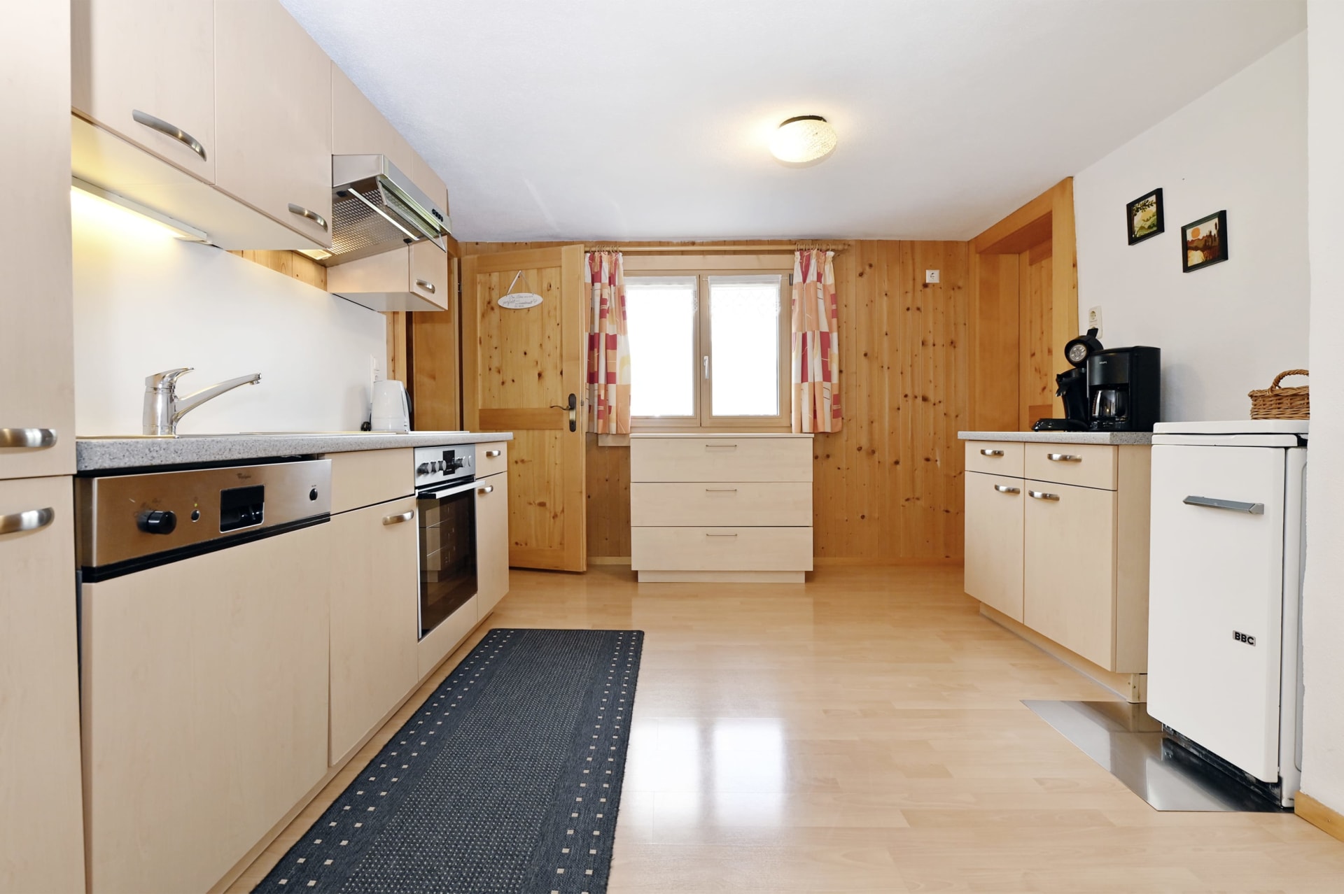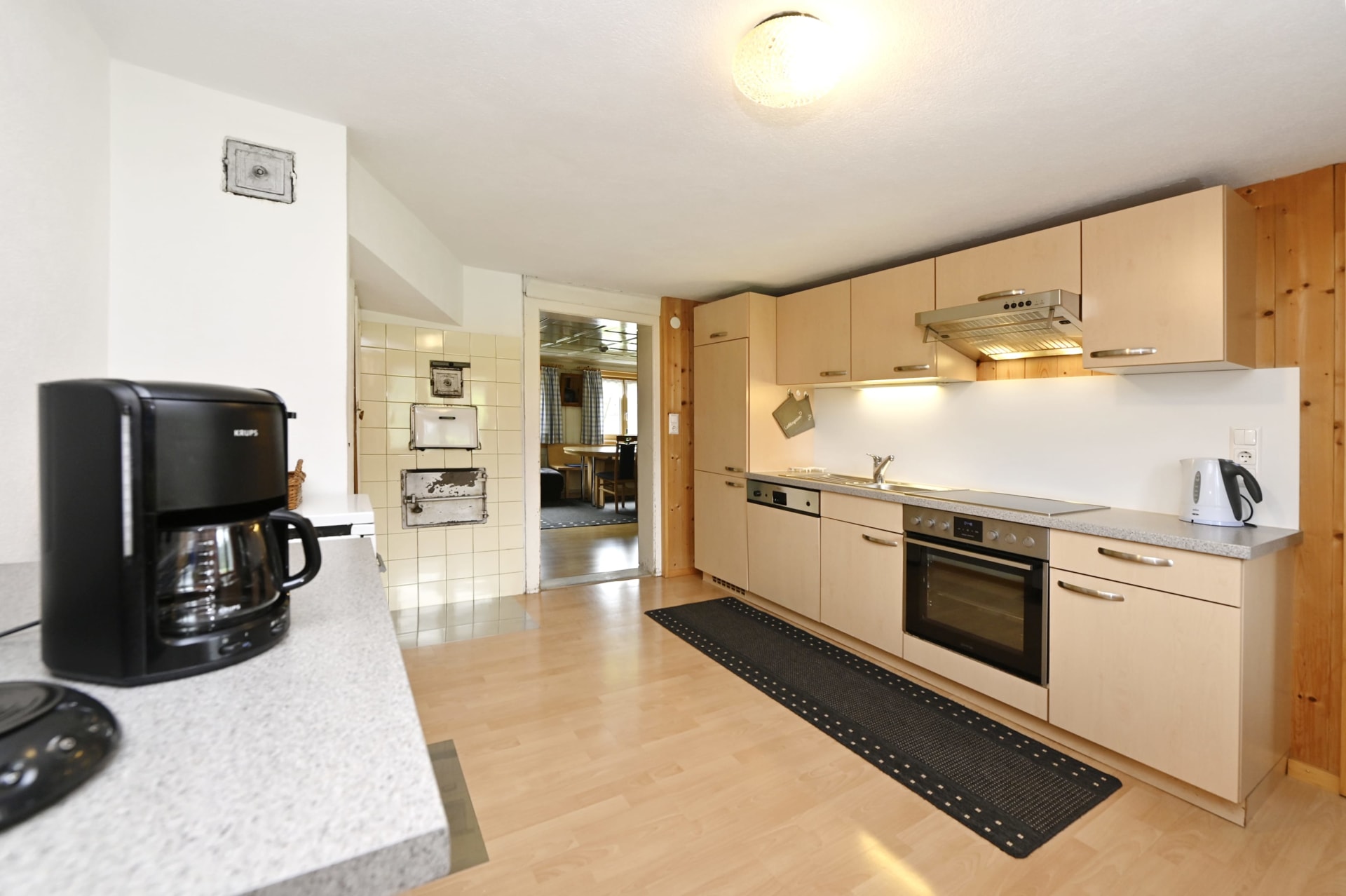 • Küche mit Spülmaschine, Kaffeemaschine, Backofen, Wasserkocher, Kühlschrank