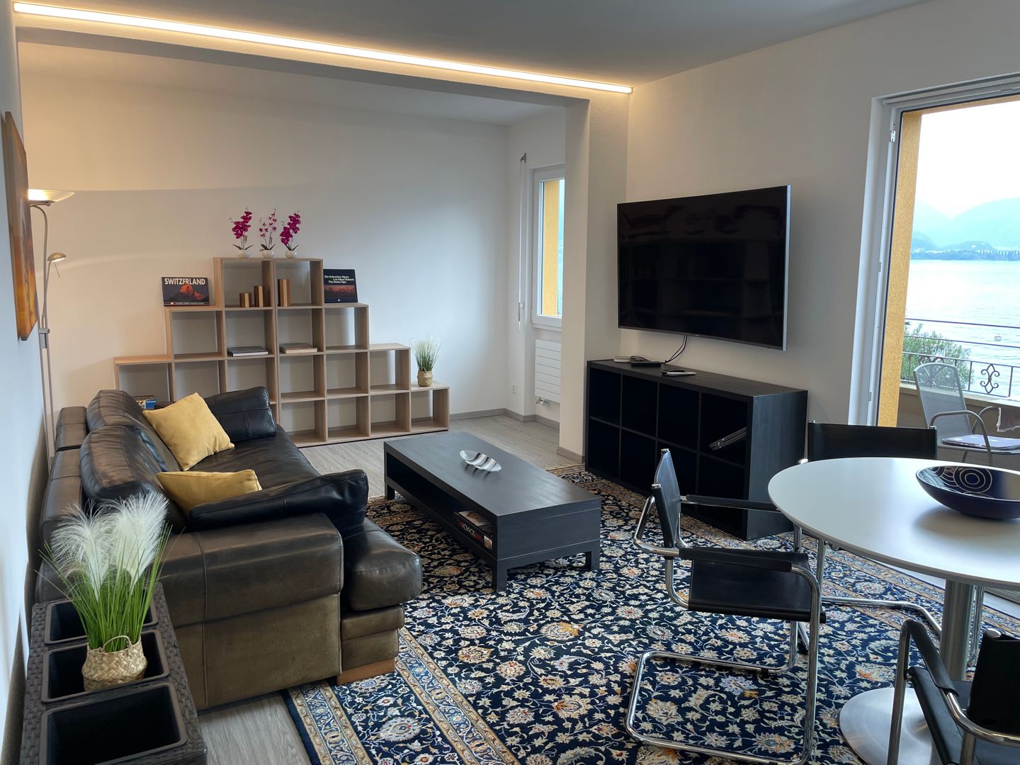 Die 3.5 Zimmer-Wohnung mit fantastischer Seesicht befindet sich im ersten Stock eines Zweifamilienhauses und bietet Platz für 4 Personen. Der private Badestrand mit Liegestühlen, einer Gartendusche und einem Tessiner Steintisch darf mitbenützt werden. Zum Schwimmen im See gelangen Sie bequem über eine Treppe. Das Paddel darf auf eigenes Risiko benützt werden.