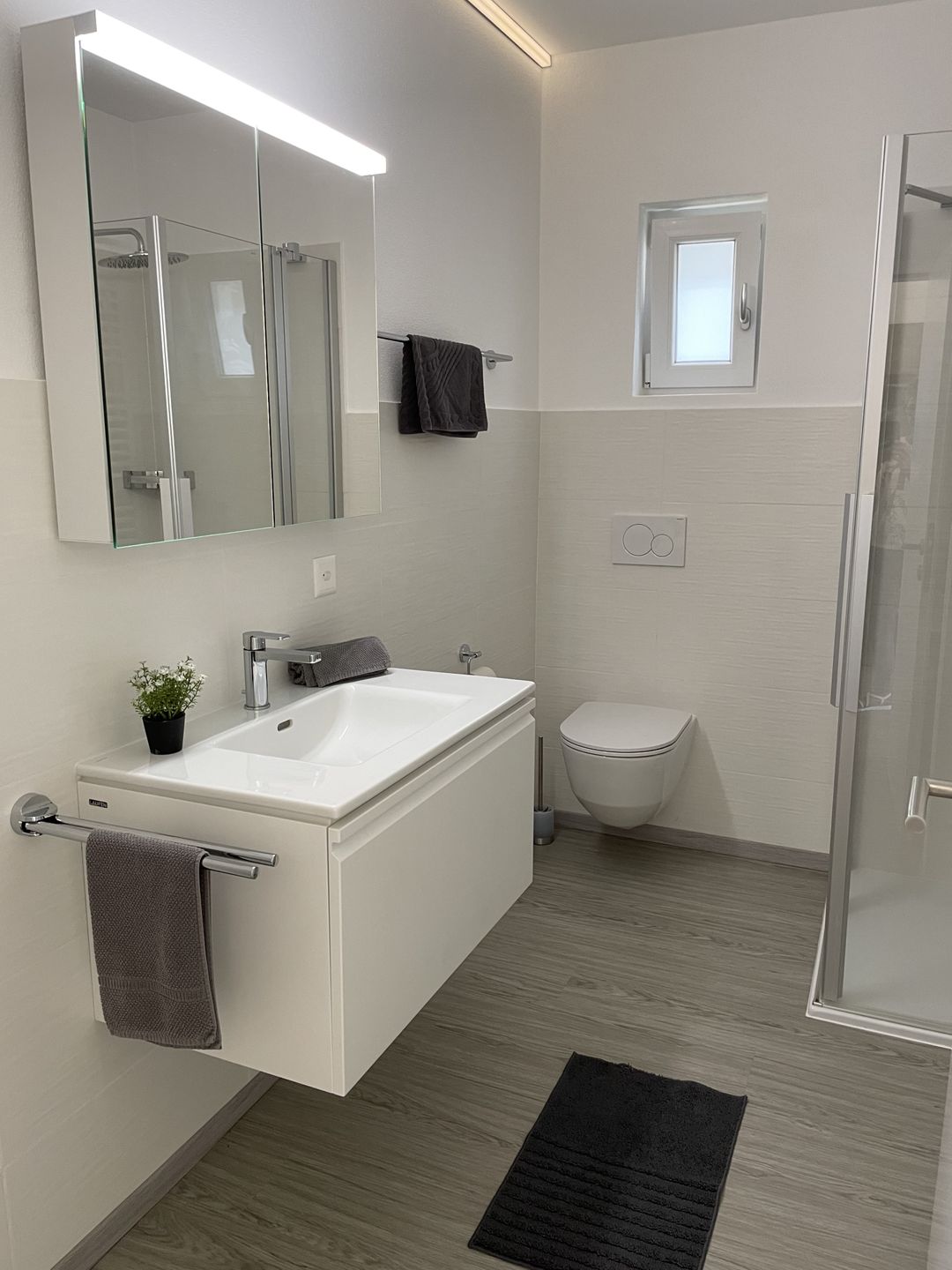 • Badezimmer mit Dusche/WC, Lavabo, Haarfön