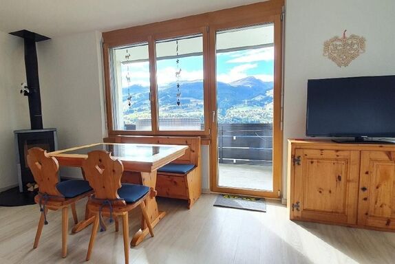 Die 3 Zimmer Wohnung(60qm) befindet sich in einem Mehrfamilienhaus im Hochparterre. Traumhafte Aussicht in die Berge und ins Tal. Die Natur vor der Haustüre. Ski Bus Haltestelle direkt bei Via Crest la Crusch, gratis Transfer zur Skischule und Bergbahn. Die Einkaufsmöglichkeiten und Restaurants sind in 10 Gehminuten gut erreichbar.
