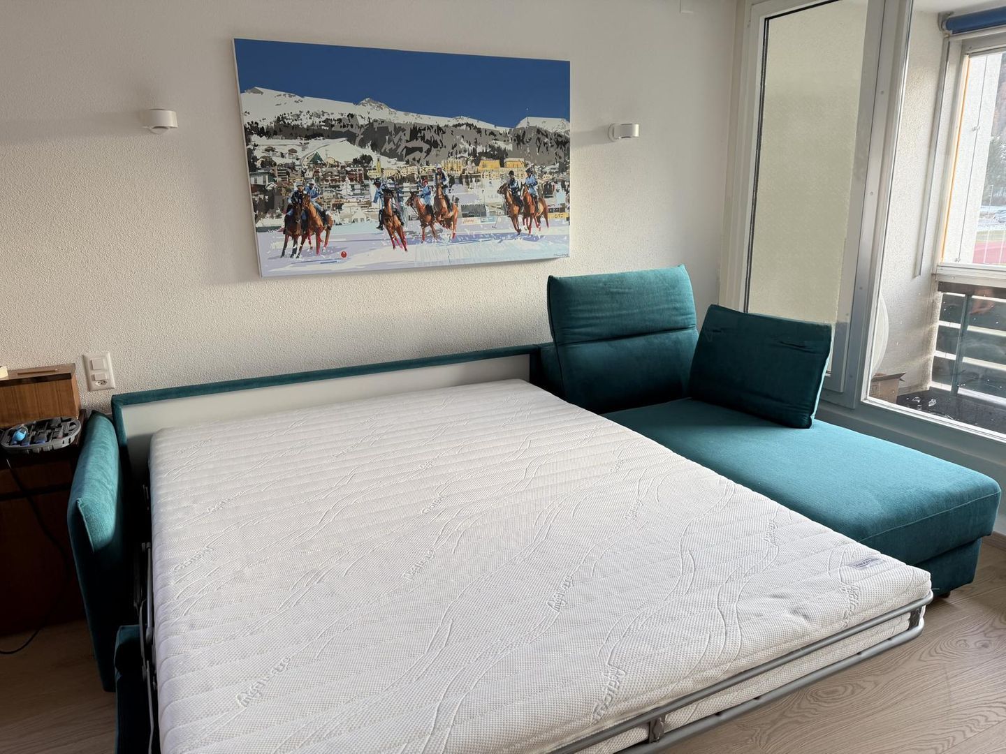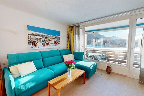 Entdecken Sie diese einladende 2.5 - Zimmerwohnung im 3. Stock, die ideal für Ihre nächsten Ferien ist. Der Eingangsbereich mit Garderobe führt Sie in die separate Küche, die mit einem Esstisch und einem herrlichen Blick auf den St. Moritzersee ausgestattet ist. Das gemütliche Eckwohnzimmer bietet sowohl einen Wohn- als auch einen Essbereich mit einem Sofadoppelbett. Gedeckter Balkon (Wintergarten). Das grosszügige Badezimmer ist mit Badewanne, Dusche und WC ausgestattet. Die Wohnung verfügt zudem über ein separates Schlafzimmer. Ein Lift im Ferienhaus erleichtert den Zugang, und im Winter profitieren Sie von einem Parkplatz in einer Garagenbox. Im Sommer verfügen Sie über einen nicht reservierten Aussenparkplatz. Fitnessraum zur öffentlichen Nutzung befindet sich im Ferien-Wohnhaus.