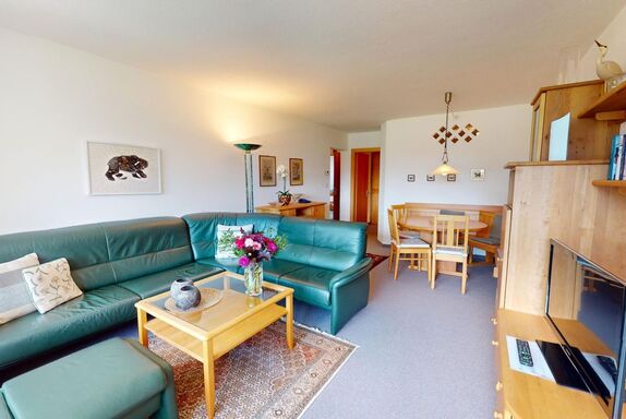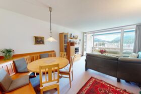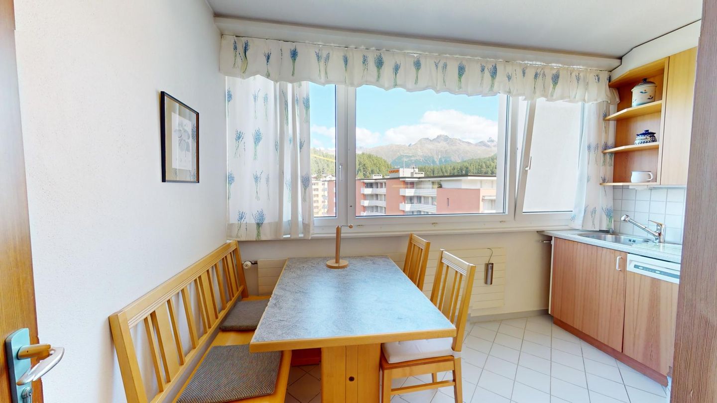 Interessante 4.5 - Zimmerwohnung im obersten Stock des Ferienhauses Residenz am See. Das Spezielle an dieser Wohnung ist die separate, auf dem gleichen Stock befindende, grosszügige Küche mit Esstisch und fantastischer Sicht auf den St. Moritzersee und St. Moritz Dorf. Diese Einrichtung kann durchaus Vorteile haben. Die Hauptwohnung besteht aus einem geräumigen Wohn- /Esszimmer mit gedecktem Balkon und Windschutz. 1 grosszügiges Doppelschlafzimmer sowie 1 Schlafzimmer mit 2 separaten Betten. 1 Bad/DU/WC sowie 1 DU/WC. Im Ferienhaus befindet sich ein Lift. 1 Parkplatz in Garagenbox. Für zusätzliche Entspannung und Fitness steht den Gästen ein Fitnessraum im Apartmenthaus zur Verfügung.