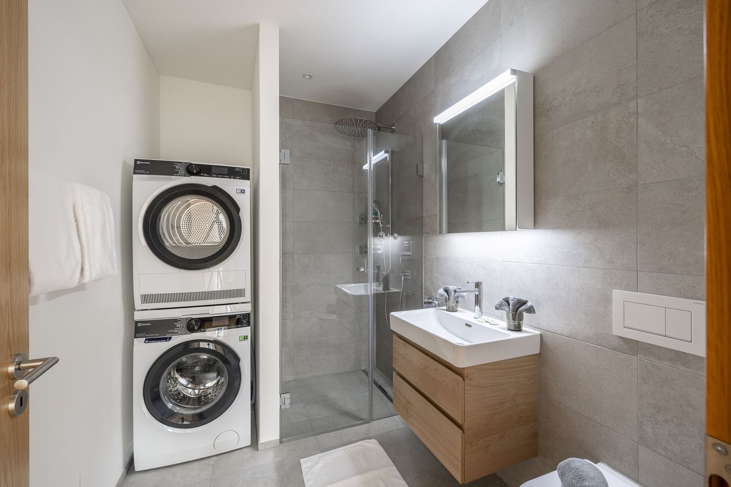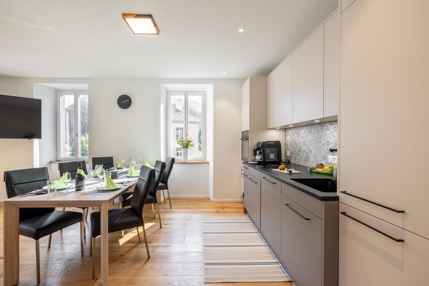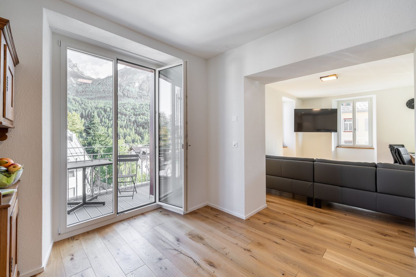 Zu den weiteren Highlights gehören die großzügigen lichtdurchfluteten Räume, die moderne Ausstattung sowie der elegante Balkon, auf dem Sie die frische Bergluft genießen können. Die integrierte Garage sorgt zudem für zusätzlichen Komfort und Sicherheit.