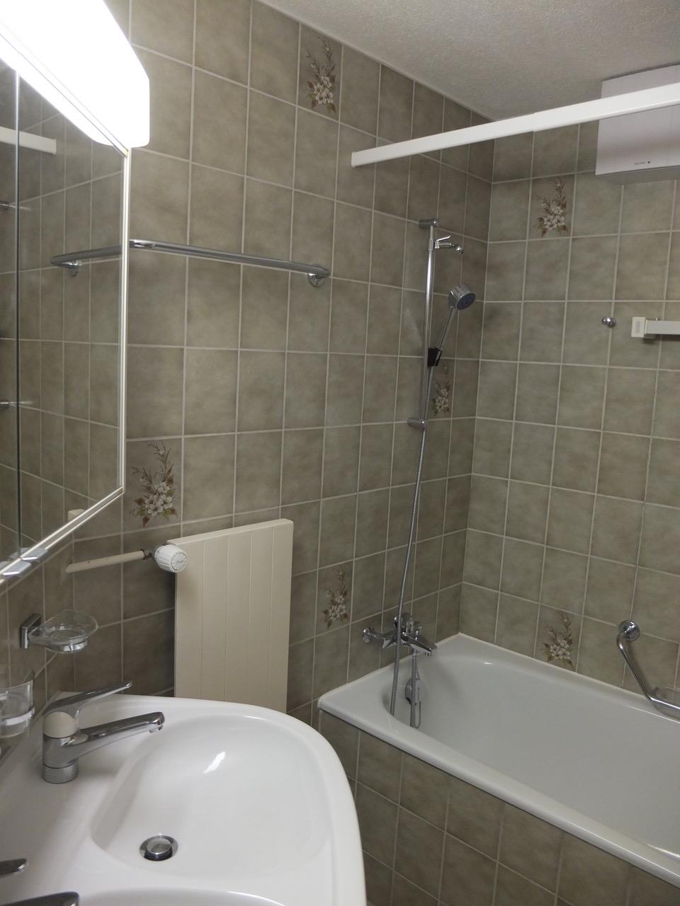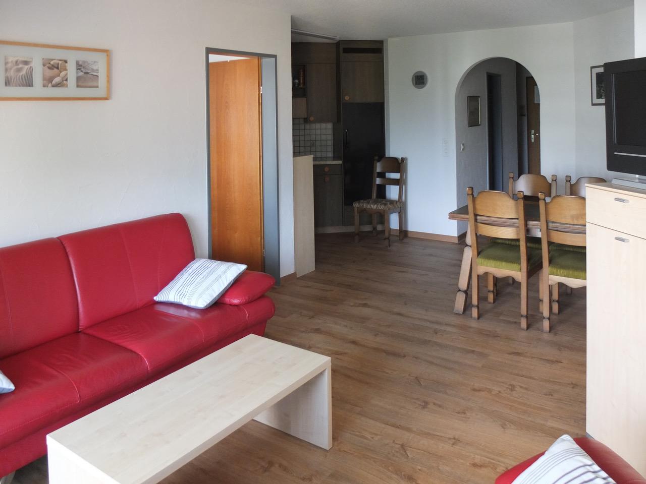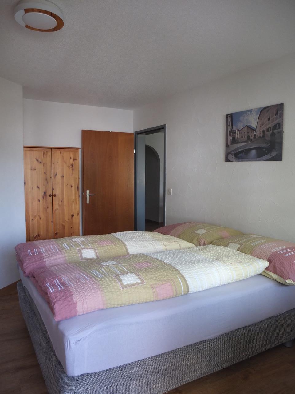 2 1/2 Zimmerwohnung (61m2) im 3. Stock, Mehrfamilienhaus mit Lift, Autoabstellplatz in Einstellhalle; Mitbenützung des Gartens, Skiraum, Waschküche. Wohnung mit grossem Südbalkon; Offene Küche mit Glaskeramikherd, Backofen, Kühlschrank, Geschirrspüler , Kaffeekapselmaschine; Bad/WC/Doppellavabo; 1 Schlafzimmer mit 1 Boxspringbett (160/200m), Wohnzimmer mit Schrank-Doppelbett (160/200m), Polstergruppe, Essecke; Bettwäsche, Küchentücher, Frotteewäsche, Duvet nordisch, Wolldecken; TV, WLAN; 1 Abfallsack (blau), WC-Papier; kein Teppich in der Wohnung; Haustiere nicht erlaubt!