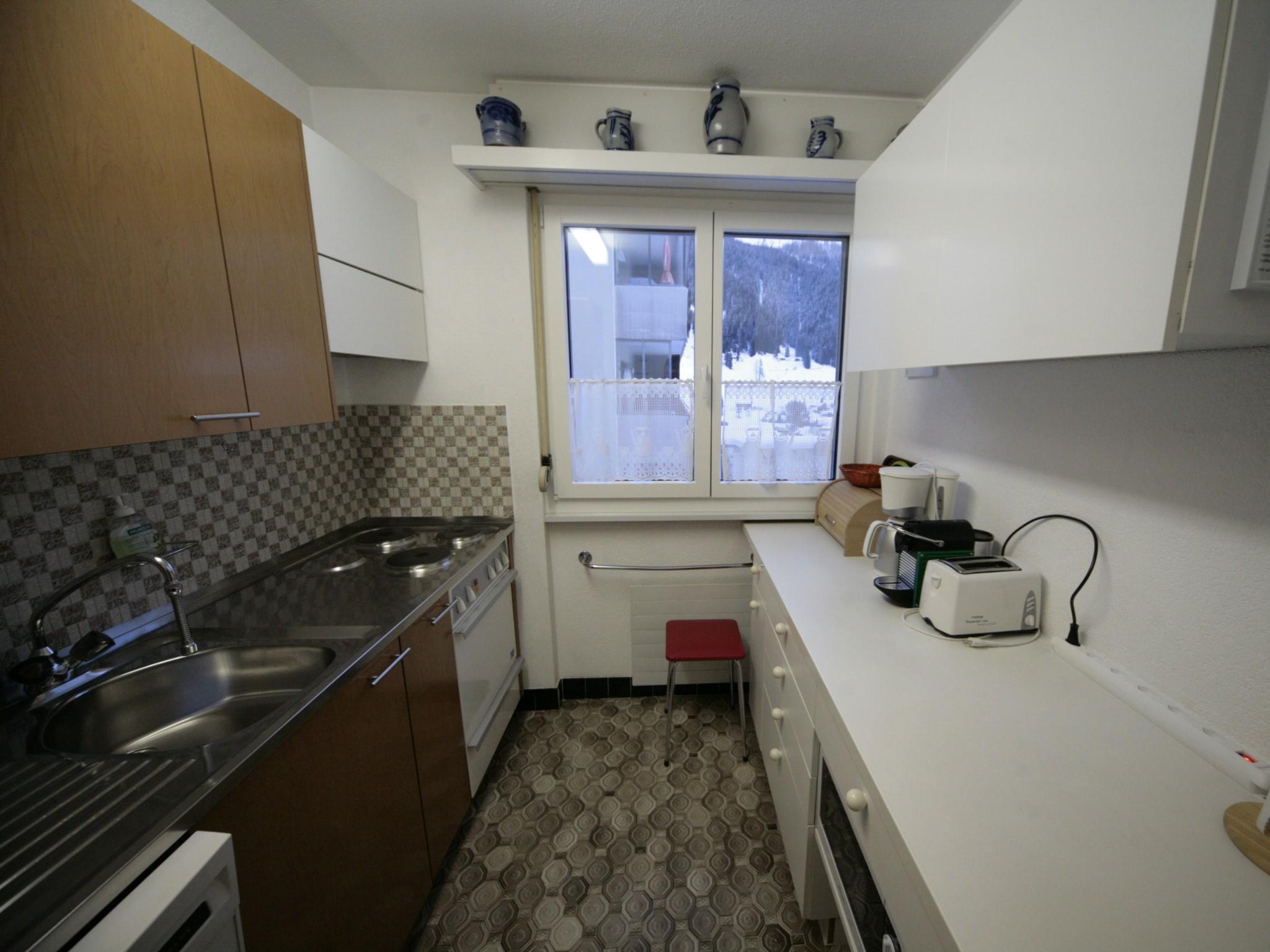 2 1/2 Zimmer-Wohnung (ca. 66m2) im 3. Stock in Mehrfamilienhaus mit Lift; Garage (Fahrzeughöhe max. 182cm); Wohnung mit zwei Südbalkonen; zur Mitbenützung: Skiraum, Garten, Waschmaschine (nach Absprache), Kinderspielplatz, Hallenbad und Sauna (gegen Gebühr); separate Küche mit Backofen, Kühlschrank, Geschirrspülmaschine, Toaster und Kaffeemaschine; Wohnzimmer mit Sitzgruppe; 1 Schlafzimmer mit 2 Betten und einem Schrankbett; separater Ess-Bereich mit Tisch und 6 Stühlen; Bad/WC und separates WC; Bettwäsche, Küchentücher, Frottéewäsche, Duvet Nordisch, Telefon, Radio, CD, Video, DVD, Fernseher, Computer, Internetzugang, Drucker, Fax, 1 Abfallsack (blau), WC-Papier. Haustiere sind nicht erlaubt. Die Wohnung ist mit vielen Bildern und antiken Möbeln ausgestattet und für kleinere Kinder ungeeignet. Deshalb vermieten wir die Wohnung nicht an Familien mit Kinder unter 10 Jahren. (Weitere Details und Bilder unter /rast/davos)