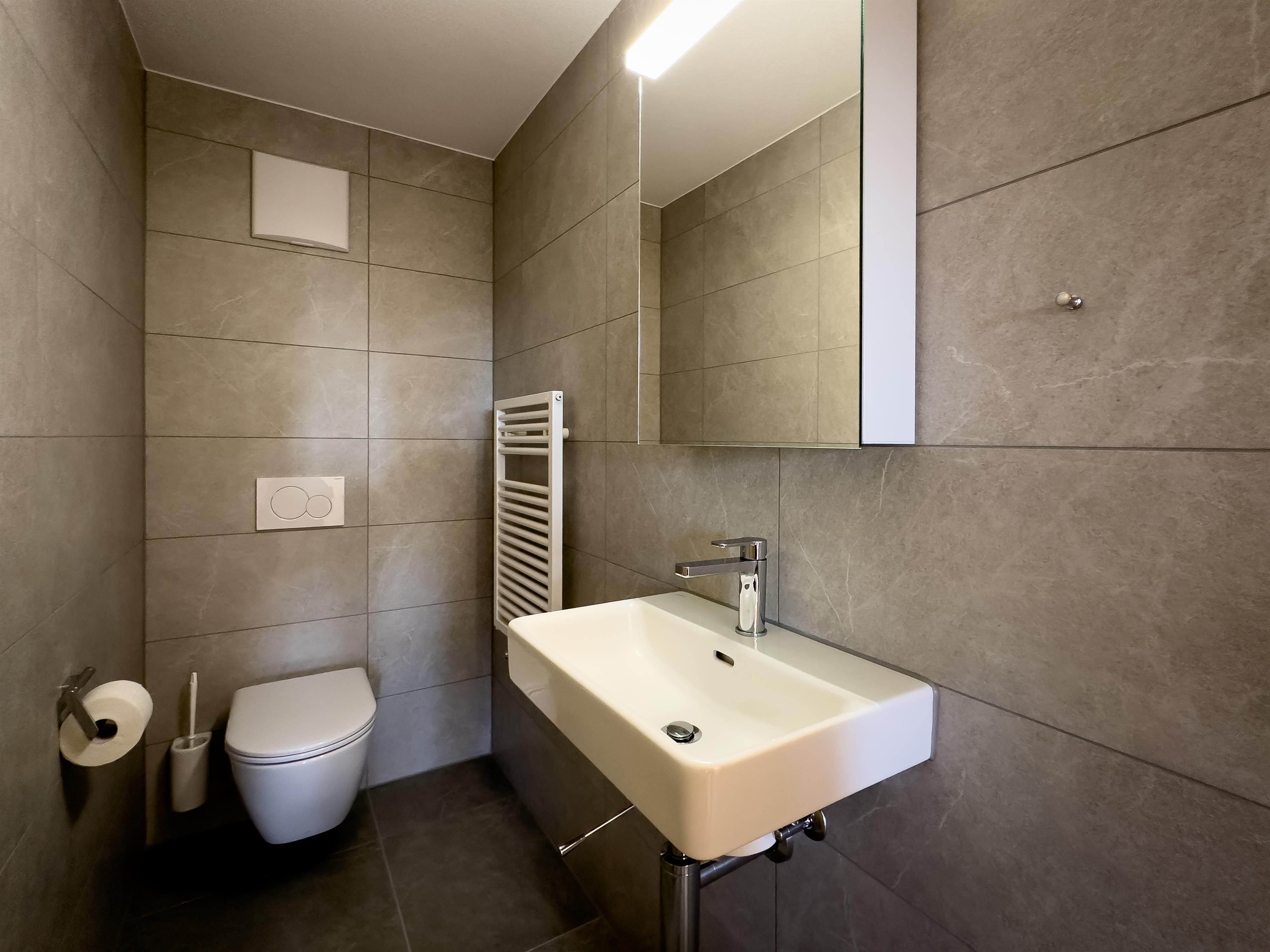 Moderne und helle 4-Zimmer-Wohnung (67 m², Neubau 2023) an ruhiger Lage im Ausserschwand mit wunderschöner Bergsicht. Wohnzimmer mit Sofaecke und Esstisch, offene  Küche mit Backofen, Geschirrspüler und Kaffeemaschine. 1 Schlafzimmer mit Doppelbett, 1 Schlafzimmer mit zwei Einzelbetten und 1 Schlafzimmer mit Etagenbett (total 3 Schlafzimmer mit insgesamt 6 Betten, zusätzliches Babybett möglich). 1 Badezimmer mit Dusche, separates WC. Grosse, sonnige Dachterrasse mit Aussicht. TV, WLAN, Parkplatz. Wohnungseingang barrierefrei. Nichtraucherwohnung.