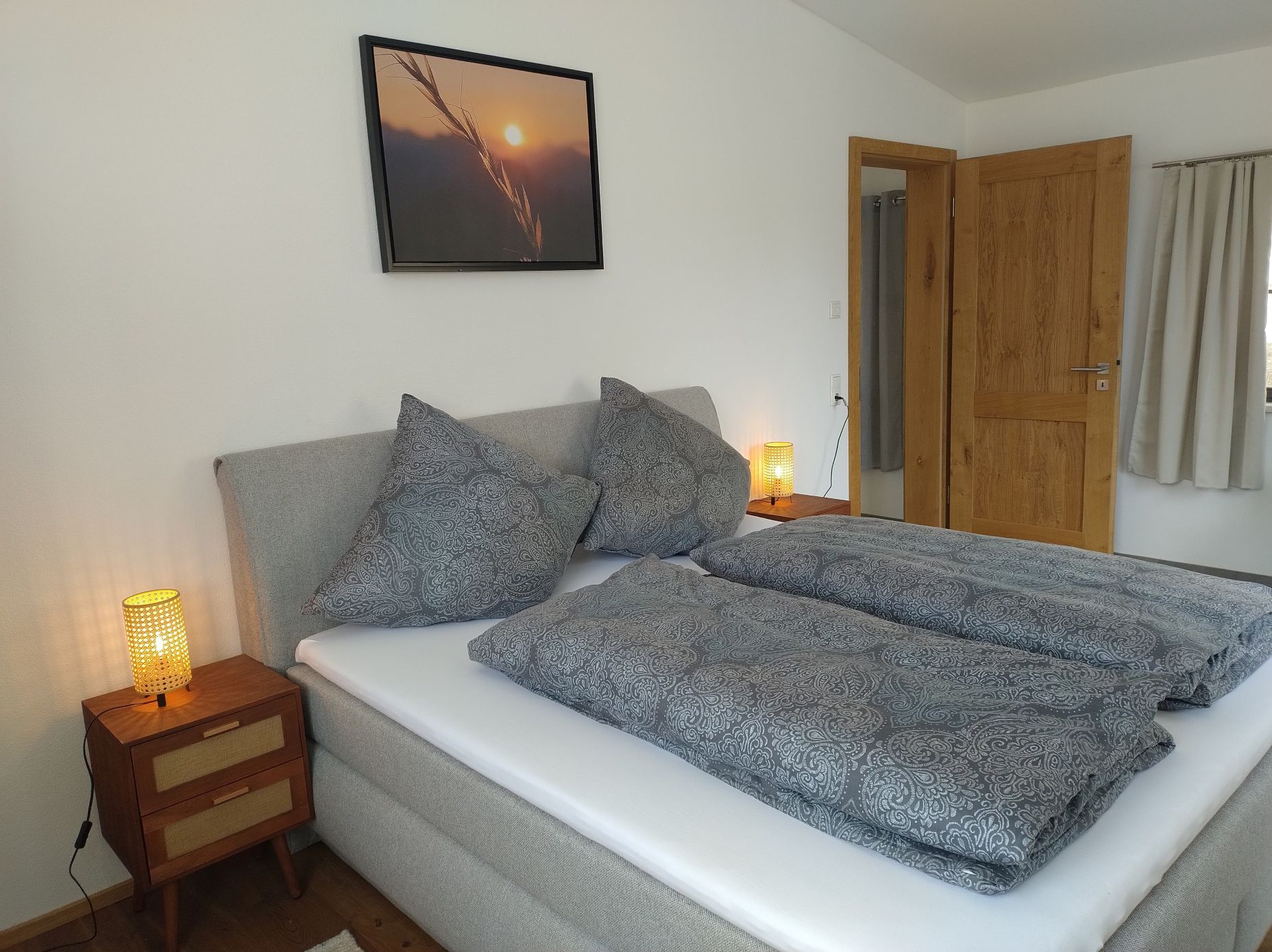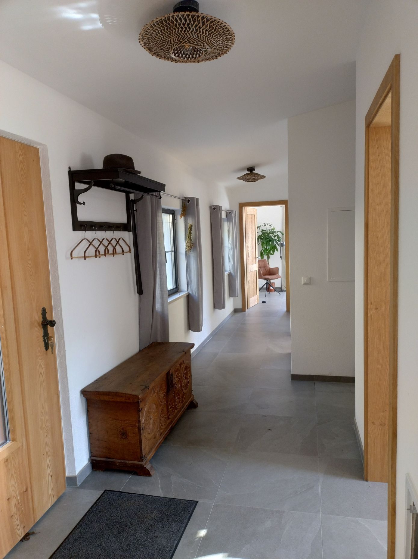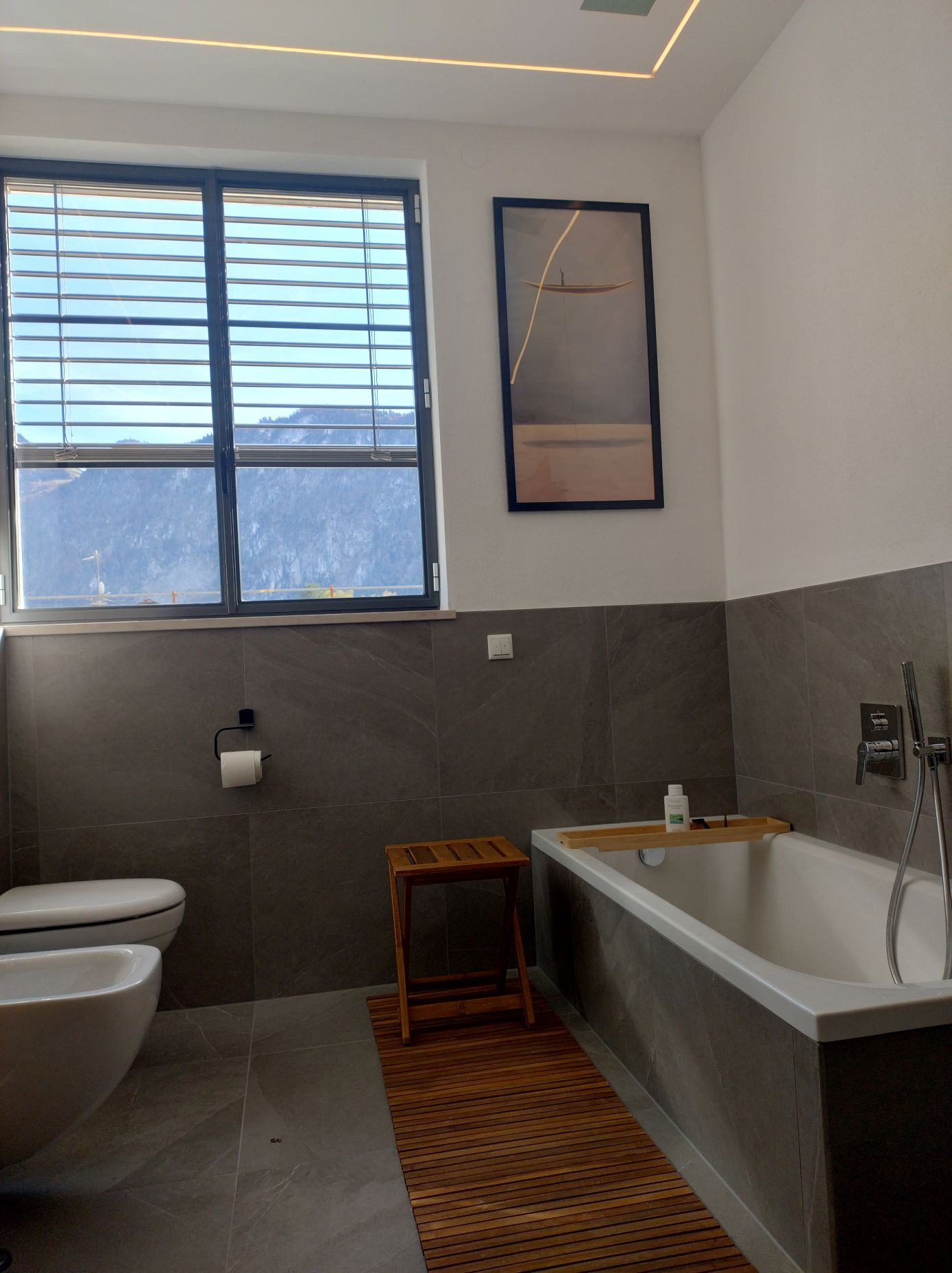 Durch eine geschwungene Außentreppe erreichen Sie direkt die Ferienwohnung mit Dachterrasse. Hervorragende LAN und W-LAN Verbindung in allen Räumen. Ausgestattet mit Flat-Screen in Wohnzimmer 60 und beiden Schlafzimmern 48. Große Fenster mit elektrischen Raffstoren für uneingeschränkten Bergblick aus allen Räumen!.