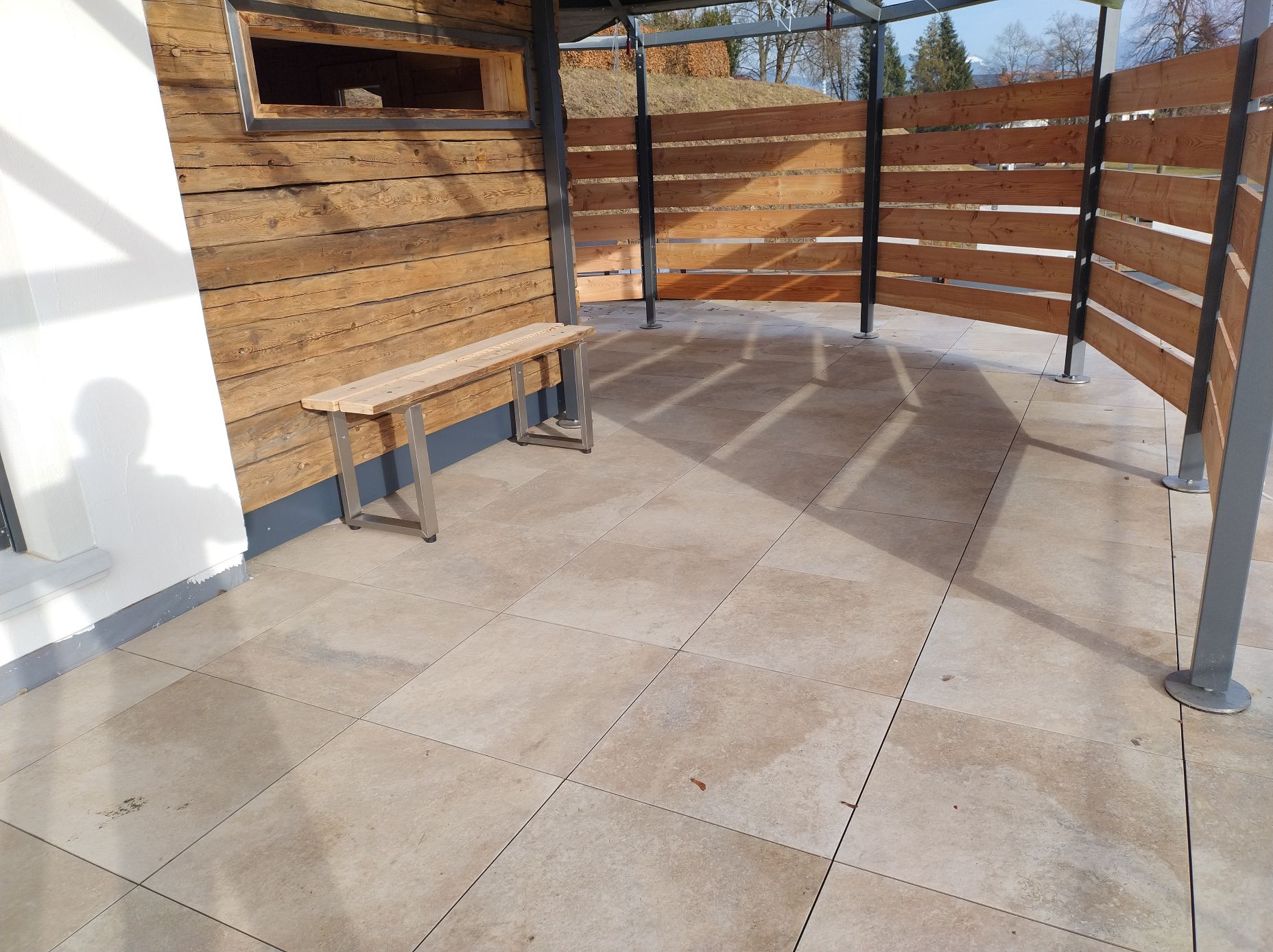 Die Wohnung im ersten Stock mit zwei Schlafzimmer, befindet sich im absolouten Neuzustand !! .. und wurde wie das ganze Gebäude sehr hochwertig im Altindustrie-Stil gestaltet. Im EG befindet sich zusätzlich, zu den freien Stellplätzen eine beheizte Doppelgarage mit Funk, sicher und trocken lassen sich dort nicht nur PKWs auch Bikes und Skiausrüstung lagern. Auf der sehr großzügig dimensionierten ( 130qm !!) Dachterrasse, überwältigt der spektakuläre Blick auf das Kaisergebirge. Unter der Glasdachpergula befindet sich eine nur zu dieser Wohnung gehörige Sauna mit beleuchtetem Sprudel-tauchbecken. Im Sommer überzeugt die große Terrasse mit ausgewogenen Sonnen und Schattenflächen.