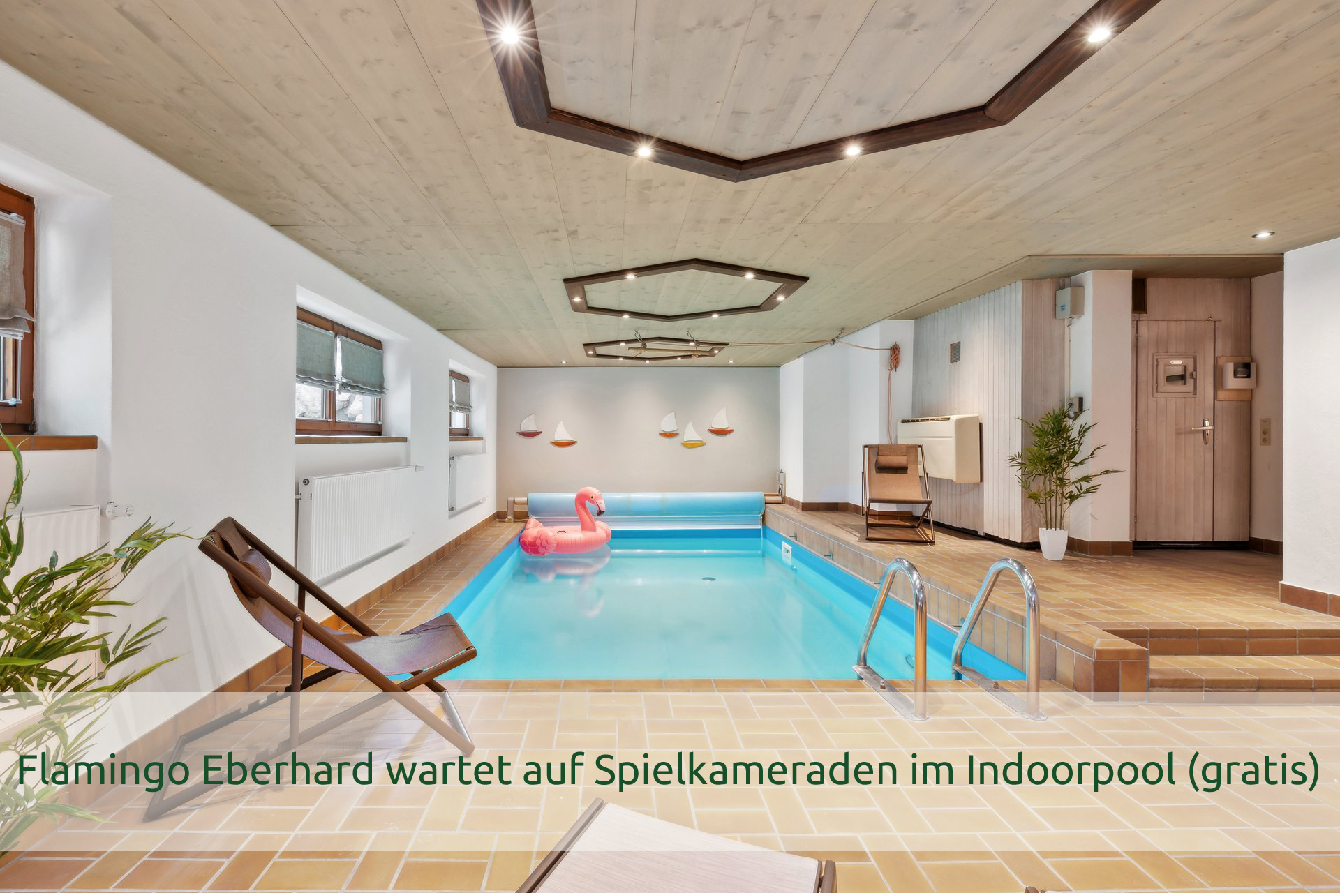 Erleben Sie Luxus pur in unserer großzügigen Villa (300 qm) für bis zu 12 Gäste. Entspannen Sie im beheizten Innenpool und der Sauna, genießen Sie den riesigen umzäunten Garten mit Fußballtoren sowie der überdachten Terrasse mit Holzkohlegrill.