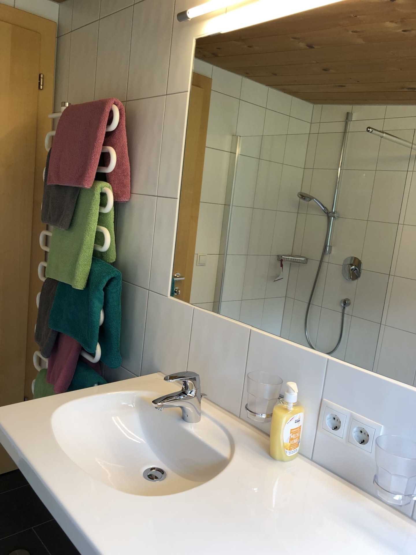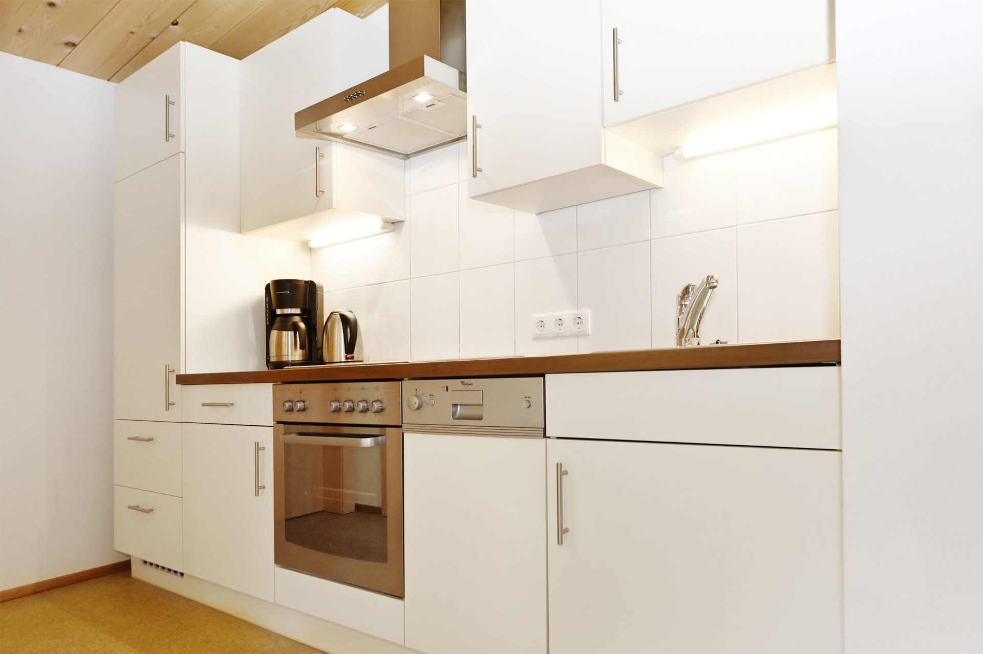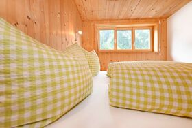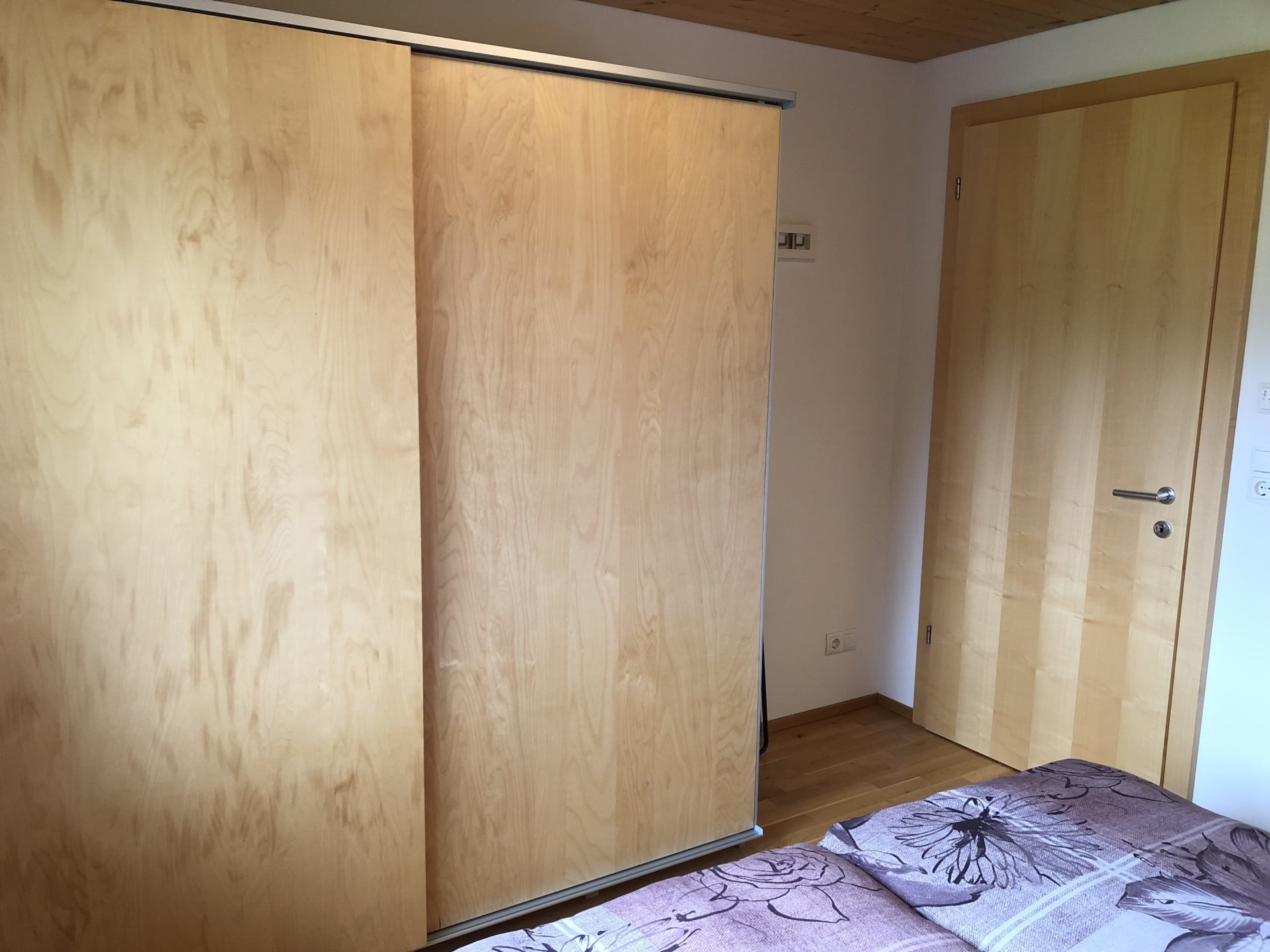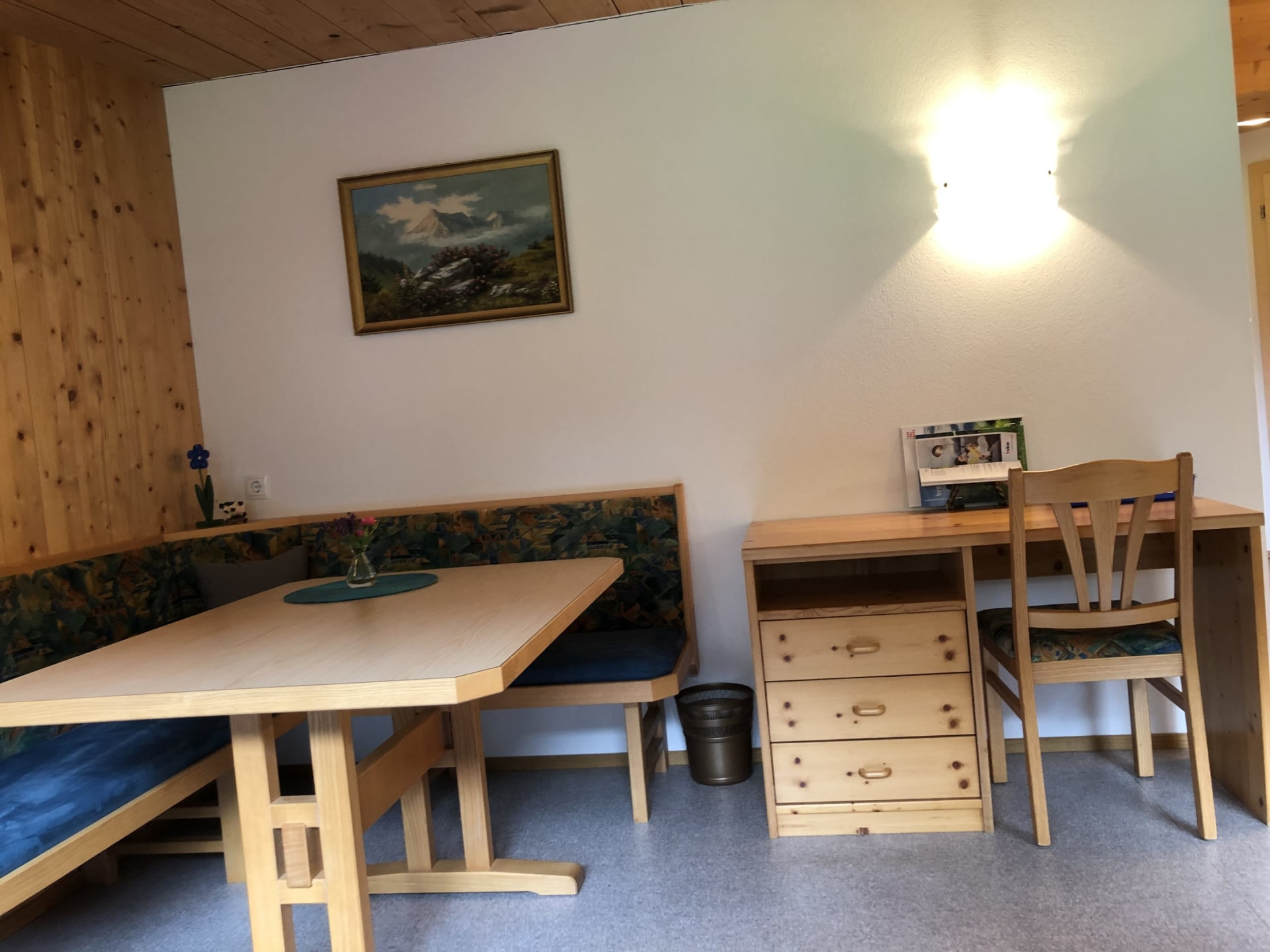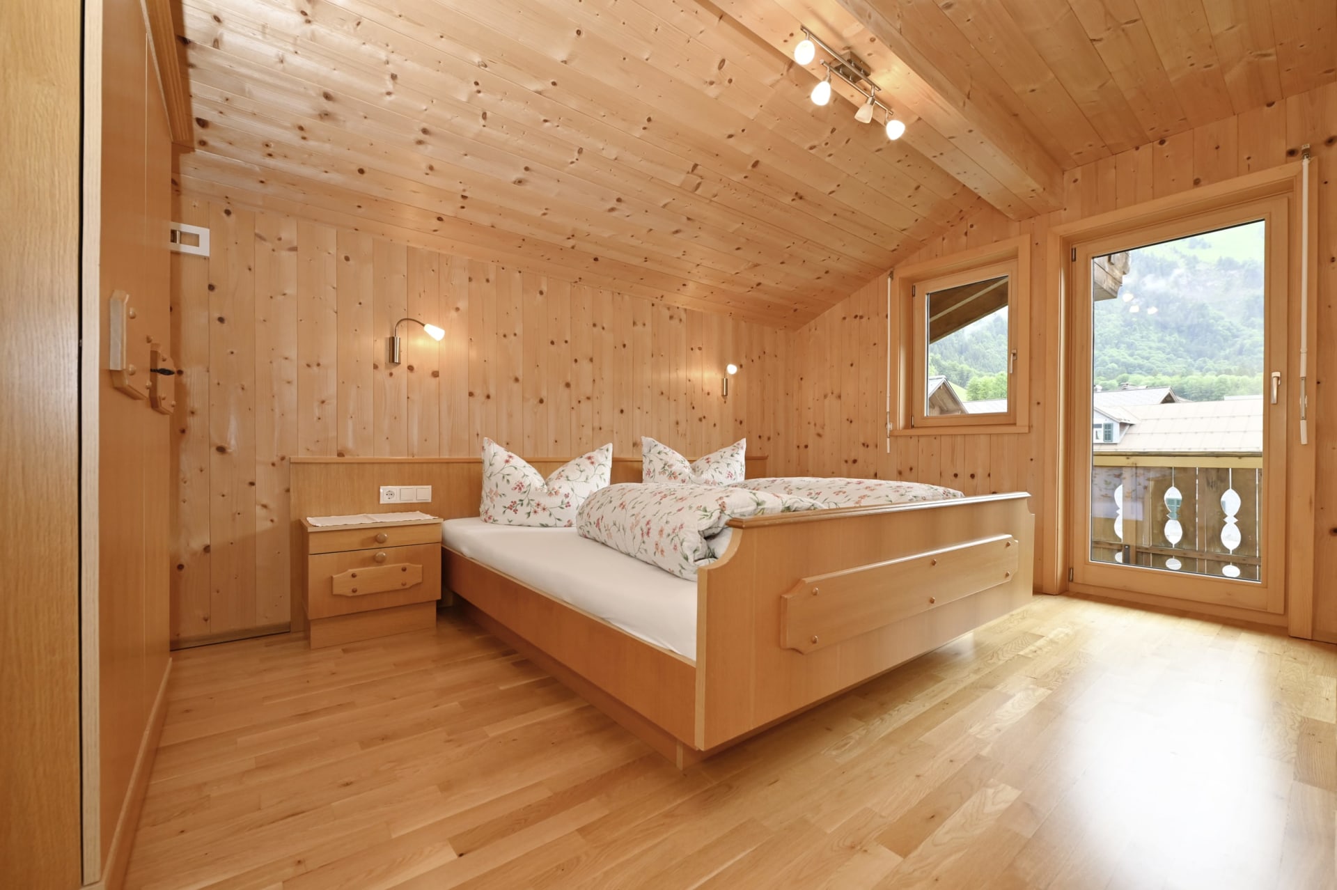 Gemütliche, mit Holz ausgebaute, 44m² große Ferienwohnung mit komplett ausgestatteter Küchenzeile, Balkon, zwei Doppelzimmern, Badezimmer mit Doppelwaschbecken sowie Dusche/WC, Kabel-TV und WLAN. Mit Blick auf die Üntschenspitze bereits beim Frühstück.