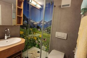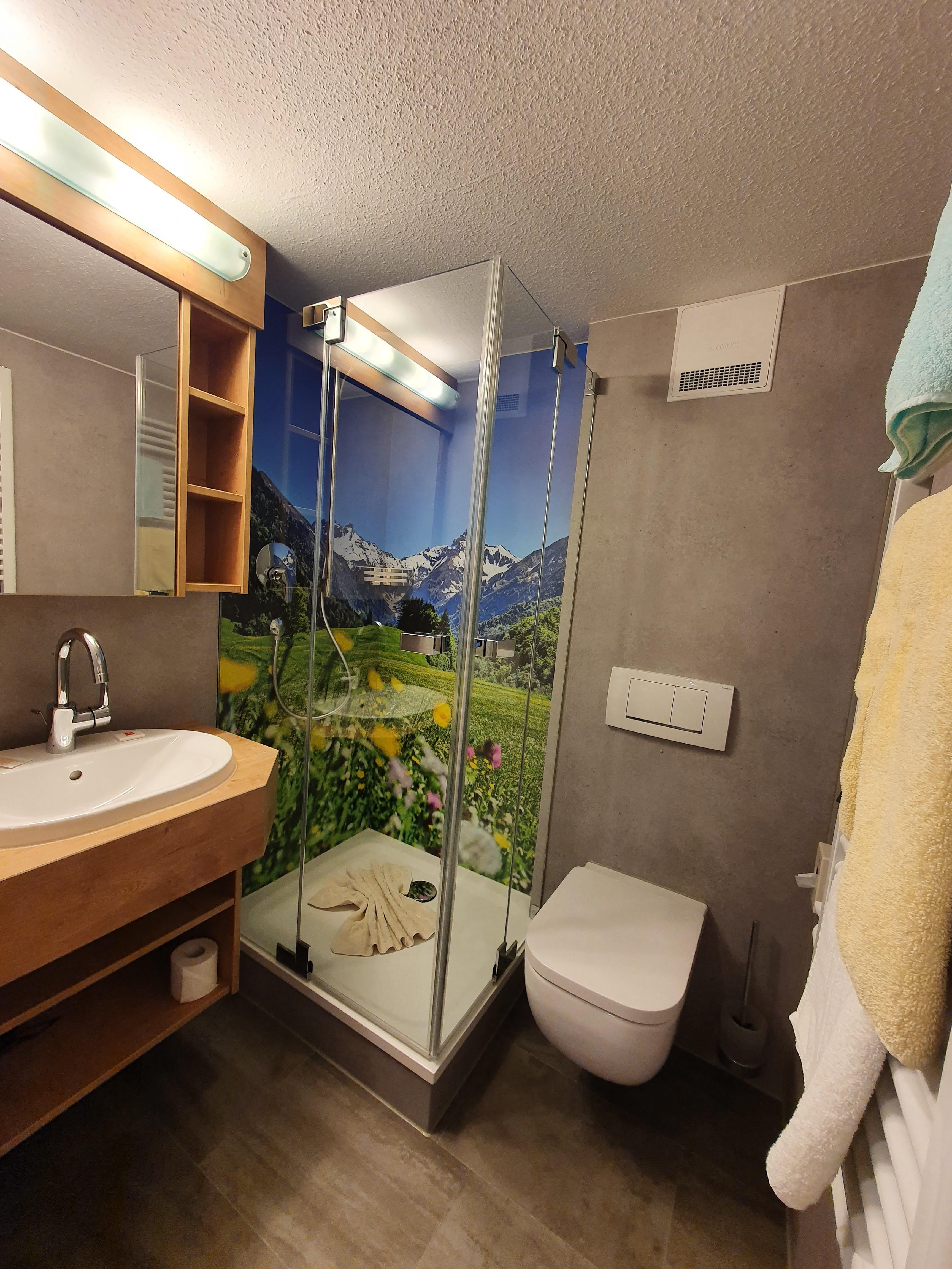 Gemütliche Gästezimmer mit WC, Dusche, Sat-TV, teilweise mit Balkon, von wo aus Sie eine herrliche Aussicht auf die Allgäuer Bergwelt genießen können.
