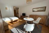 Willkommen in der Wohnung Top 11, deinem perfekten Rückzugsort für einen erholsamen Aufenthalt für 2 Personen. Die 28m² große Wohnung befindet sich im 2. Stock und ist mit Eichenparkett, Esstisch (für 2 Personen), Doppelbett, Schrank, Kommode und TV ausgestattet. Die kleine Einbauküche besitzt einen Herd, Mikrowelle, Kühlschrank und Geschirrspüler. Im Bad befinden sich eine Regenschauerdusche, Toilette und ein Waschbecken.