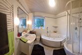 Die Ferienwohnung im Hochparterre besticht durch helle und gemütliche Wohneinheiten. Die moderne Küche ist mit einem Geschirrspüler und wichtigen Küchenequipment ausgestattet. Im hellen Wohnzimmer befindet sich auch ein Kamin. Das Badezimmer bietet einen Whirlpool und eine Runddusche.