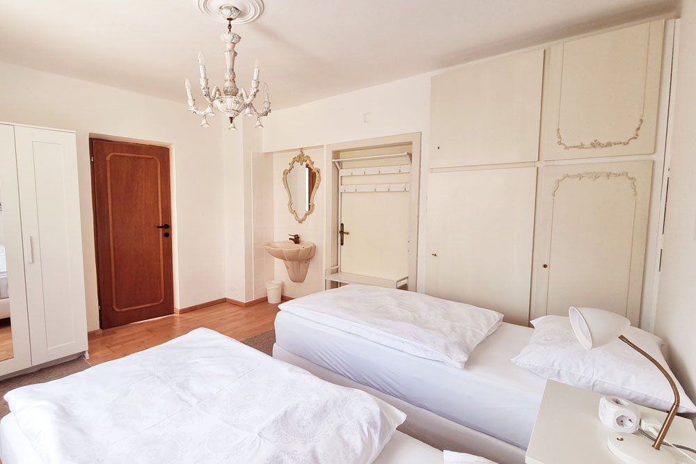 - Die Ferienwohnung ist - wegen des hochwertigen Parkettbodens - eine schuhfreie Unterkunft. Hausschuhe werden zur Verfügung gestellt.