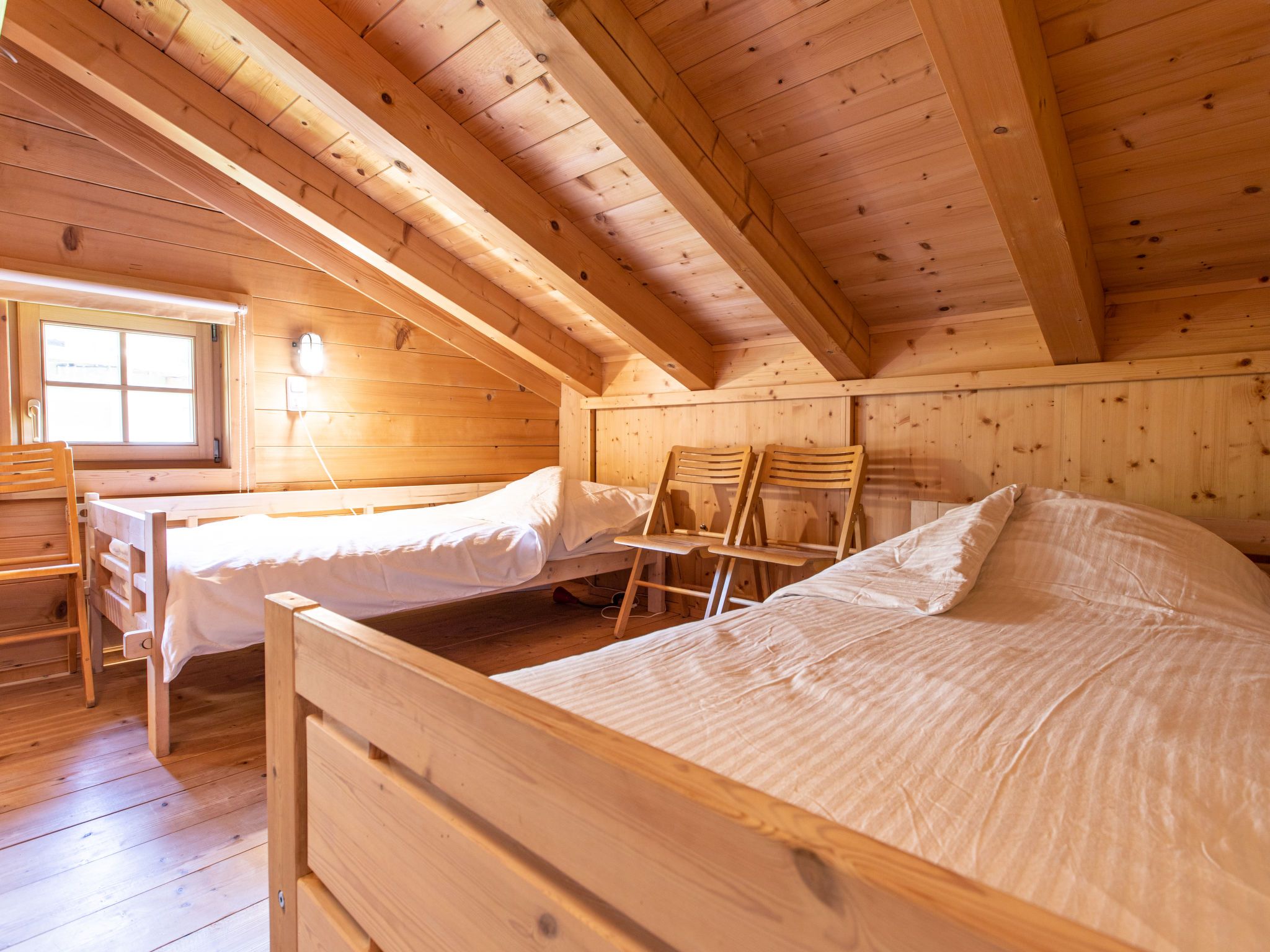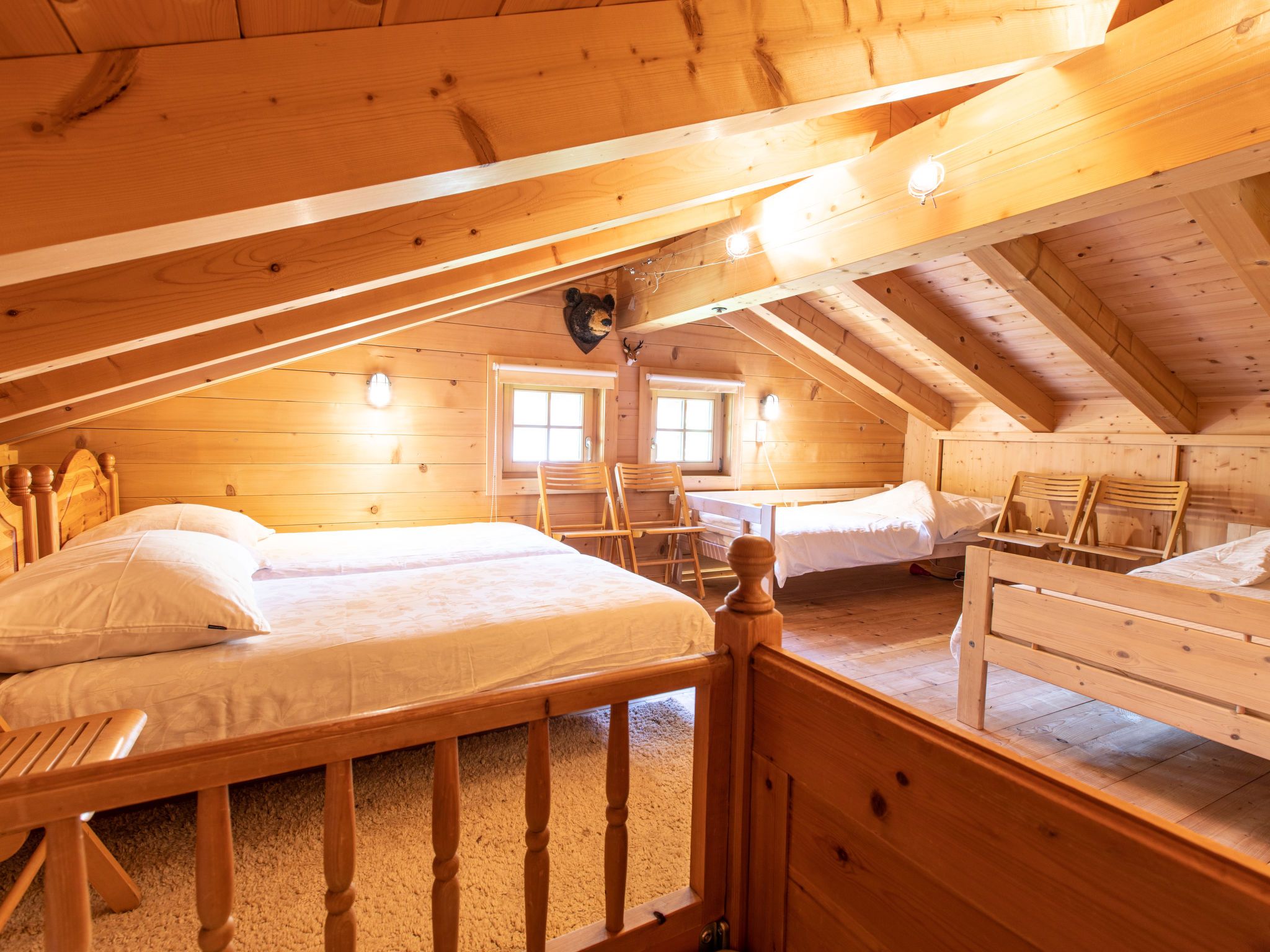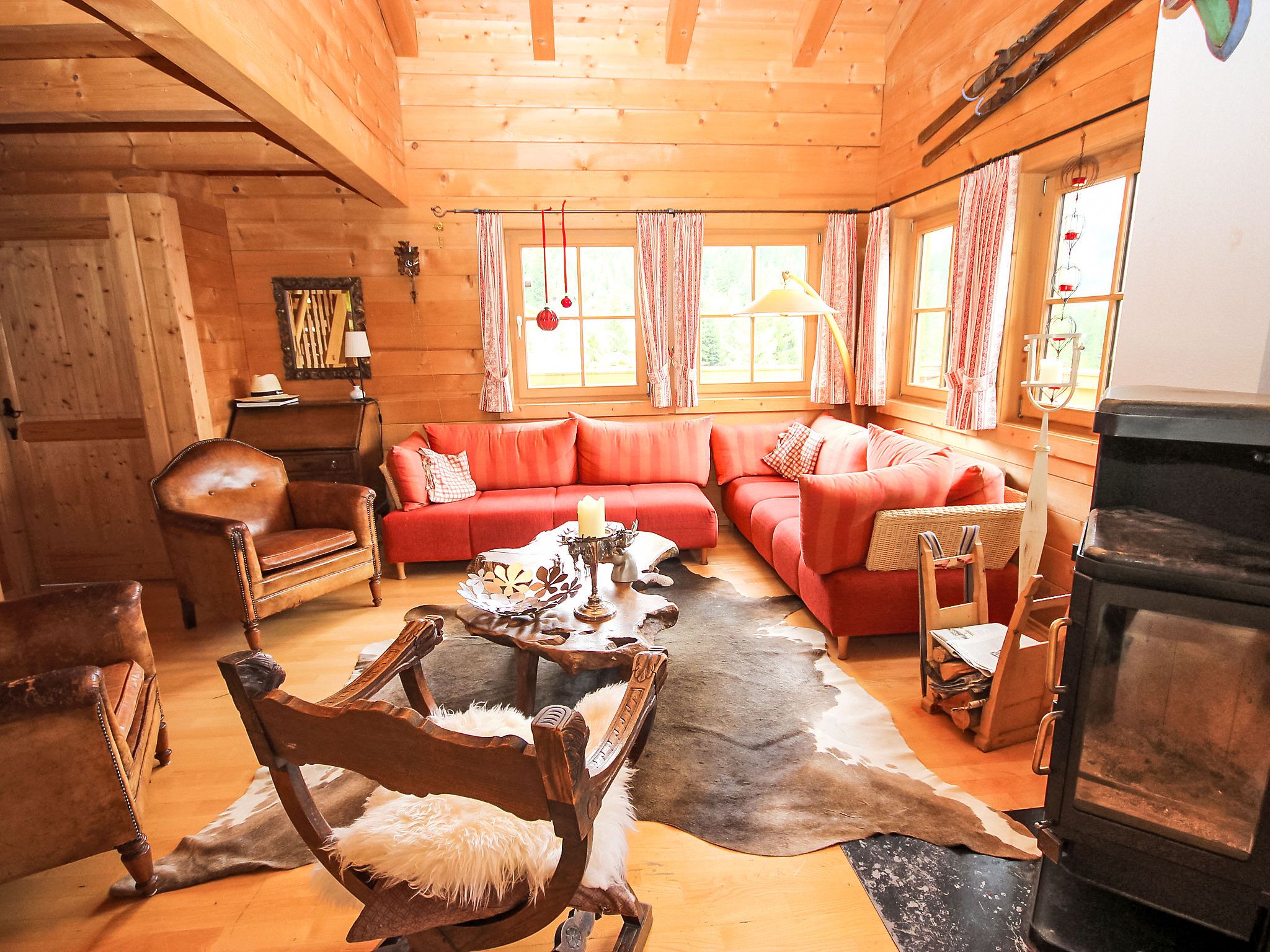 6-Zimmer-Haus 126 m2 auf 3 Stockwerken. Geschmackvoll eingerichtet: 2 Doppelzimmer. 1 Zimmer mit 1 x 1 Etagenbetten, 1 Doppelbett. Grosses Wohnzimmer mit Kabel-TV (Flachbildschirm), Radio und CD. Ausgang zum Garten. Dusche/WC. Obergeschoss: 1 Doppelzimmer. Grosses Wohn-/Esszimmer mit Schwedenofen, Radio und CD. Ausgang zur Terrasse. Offene Küche (Backofen, Geschirrspüler, 4 Glaskeramikplatten, Mikrowelle). Bad/Dusche/WC. Dachgeschoss: 1 abgeschrägtes Zimmer mit 4 Betten und TV (Flachbildschirm). Grosser Balkon, Terrasse. Terrassenmöbel. Schöne Sicht auf die Berge. Zur Verfügung: Waschmaschine, Kinderhochstuhl, Babybett. Internet (WLAN, gratis). Parkplatz (überdacht). Bitte beachten: Nichtraucher-Unterkunft. Rauchmelder. 50626-006180-2020