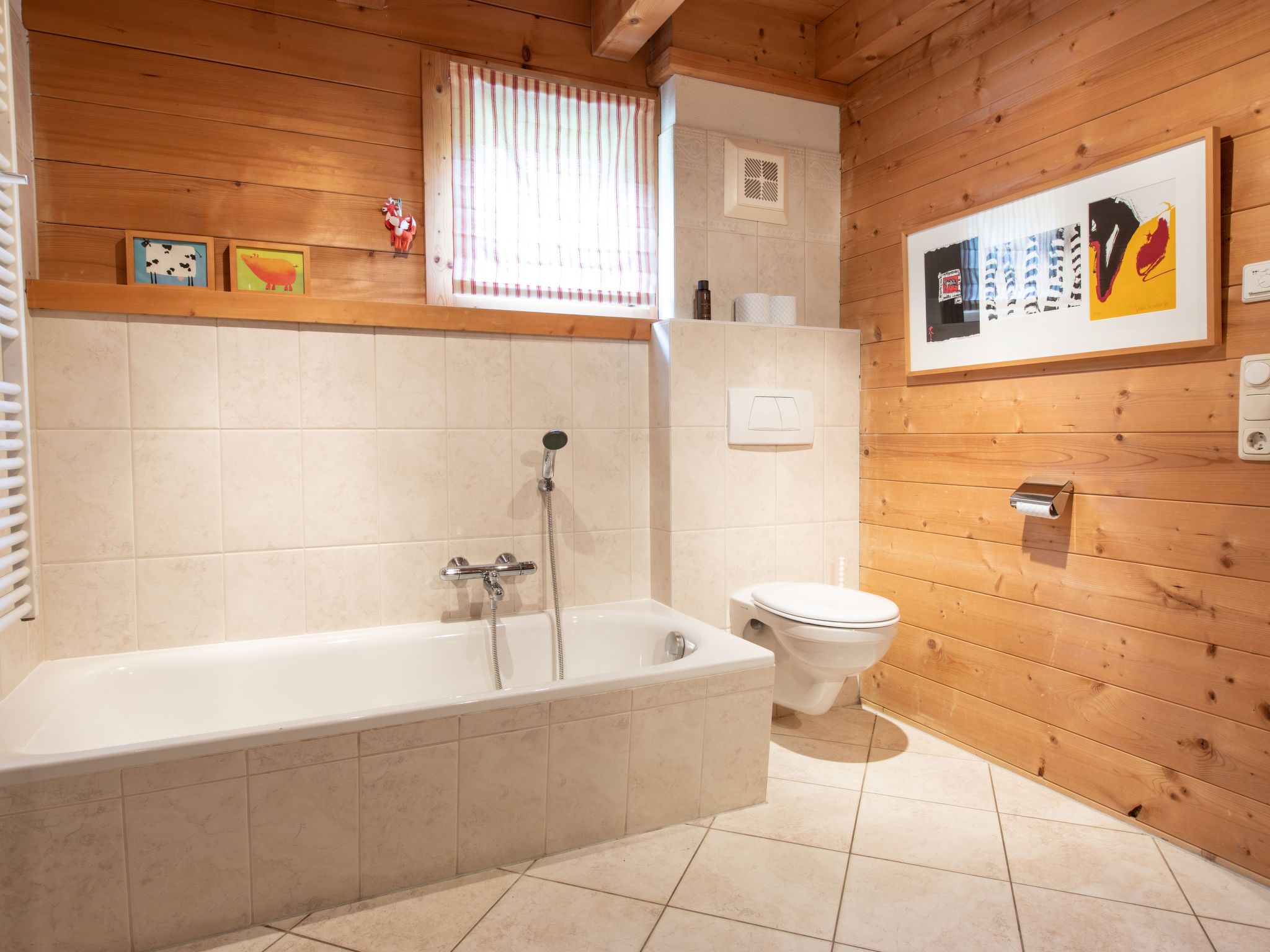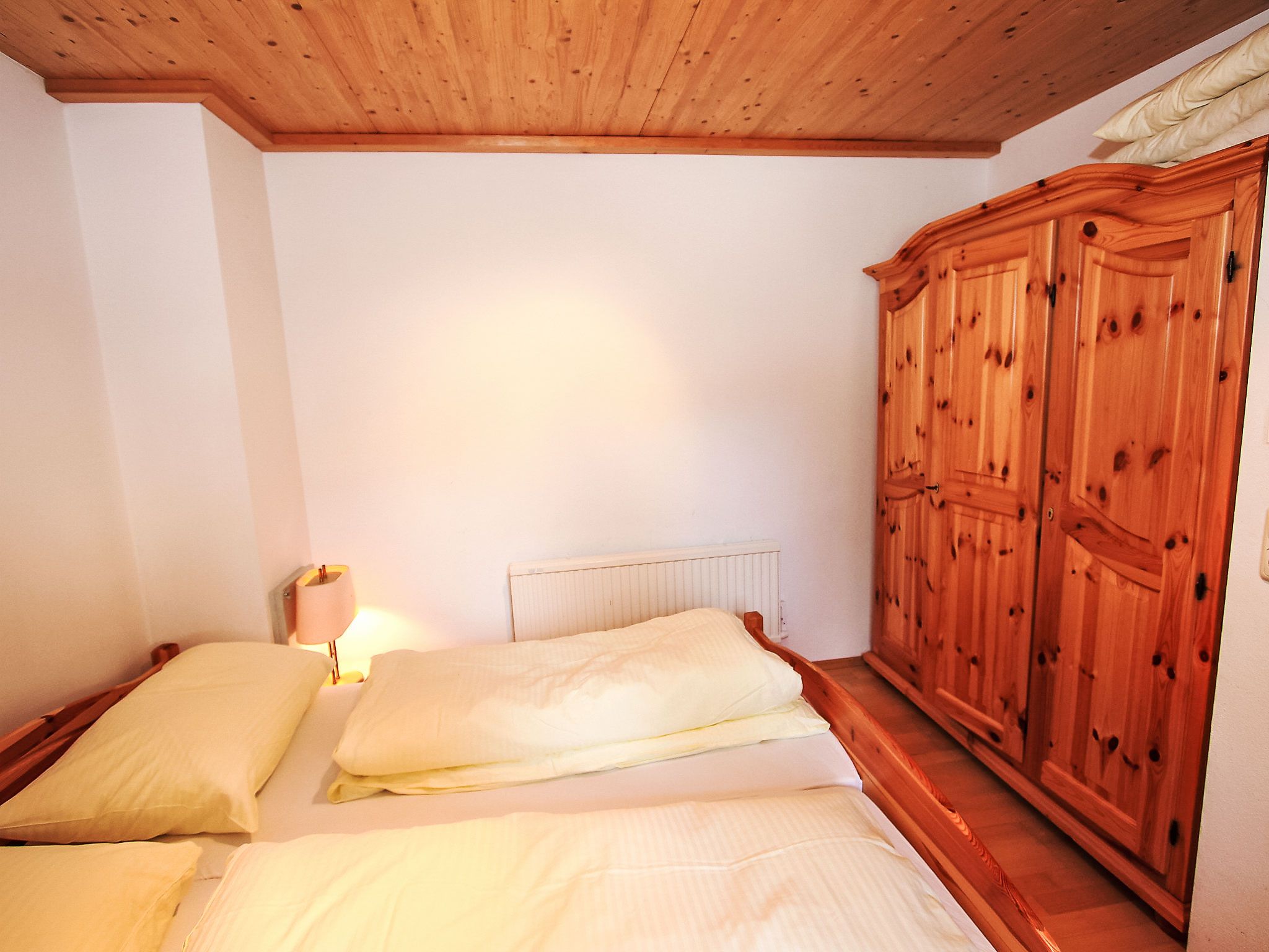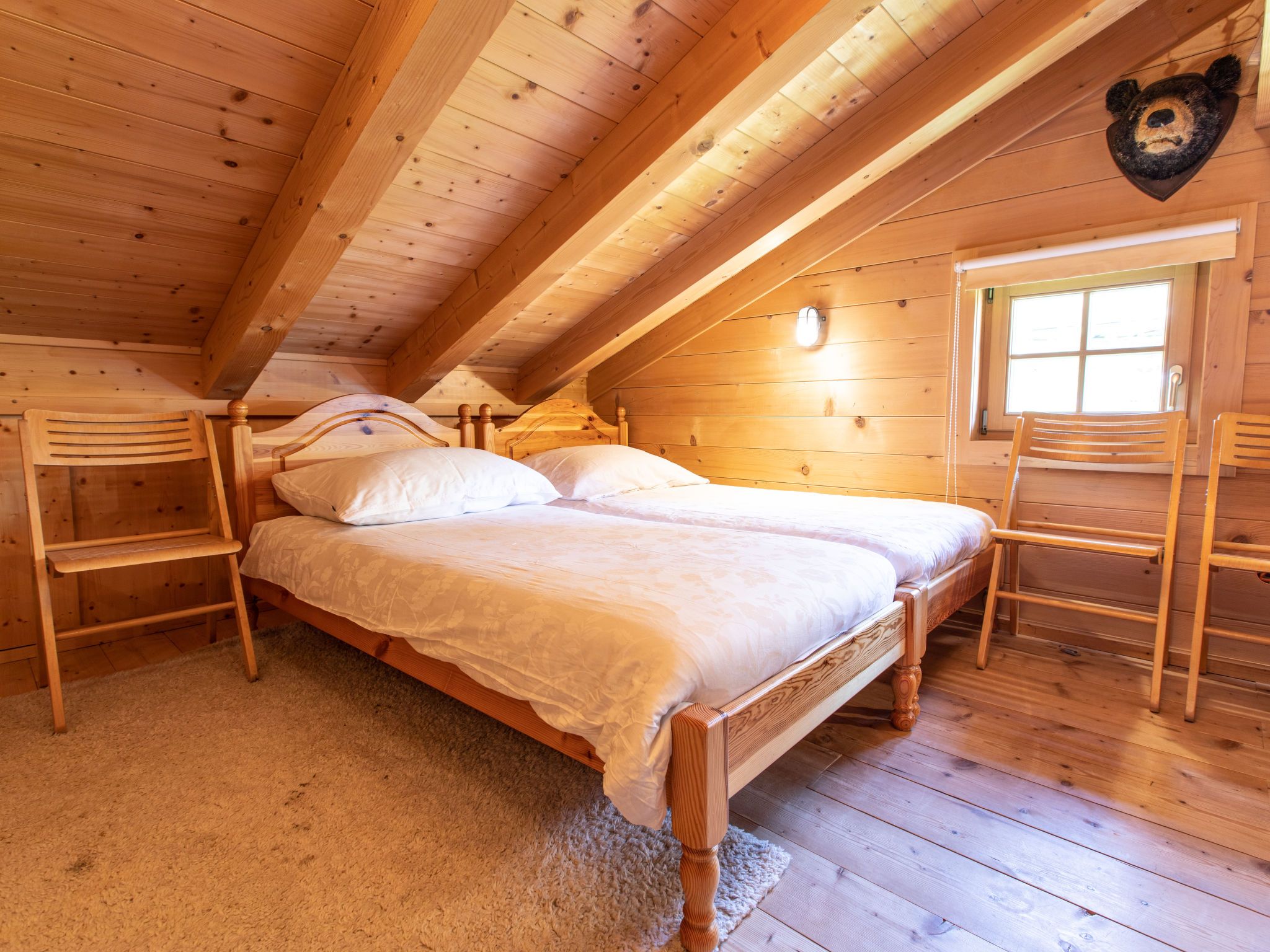 6-Zimmer-Haus 126 m2 auf 3 Stockwerken. Geschmackvoll eingerichtet: 2 Doppelzimmer. 1 Zimmer mit 1 x 1 Etagenbetten, 1 Doppelbett. Grosses Wohnzimmer mit Kabel-TV (Flachbildschirm), Radio und CD. Ausgang zum Garten. Dusche/WC. Obergeschoss: 1 Doppelzimmer. Grosses Wohn-/Esszimmer mit Schwedenofen, Radio und CD. Ausgang zur Terrasse. Offene Küche (Backofen, Geschirrspüler, 4 Glaskeramikplatten, Mikrowelle). Bad/Dusche/WC. Dachgeschoss: 1 abgeschrägtes Zimmer mit 4 Betten und TV (Flachbildschirm). Grosser Balkon, Terrasse. Terrassenmöbel. Schöne Sicht auf die Berge. Zur Verfügung: Waschmaschine, Kinderhochstuhl, Babybett. Internet (WLAN, gratis). Parkplatz (überdacht). Bitte beachten: Nichtraucher-Unterkunft. Rauchmelder. 50626-006180-2020