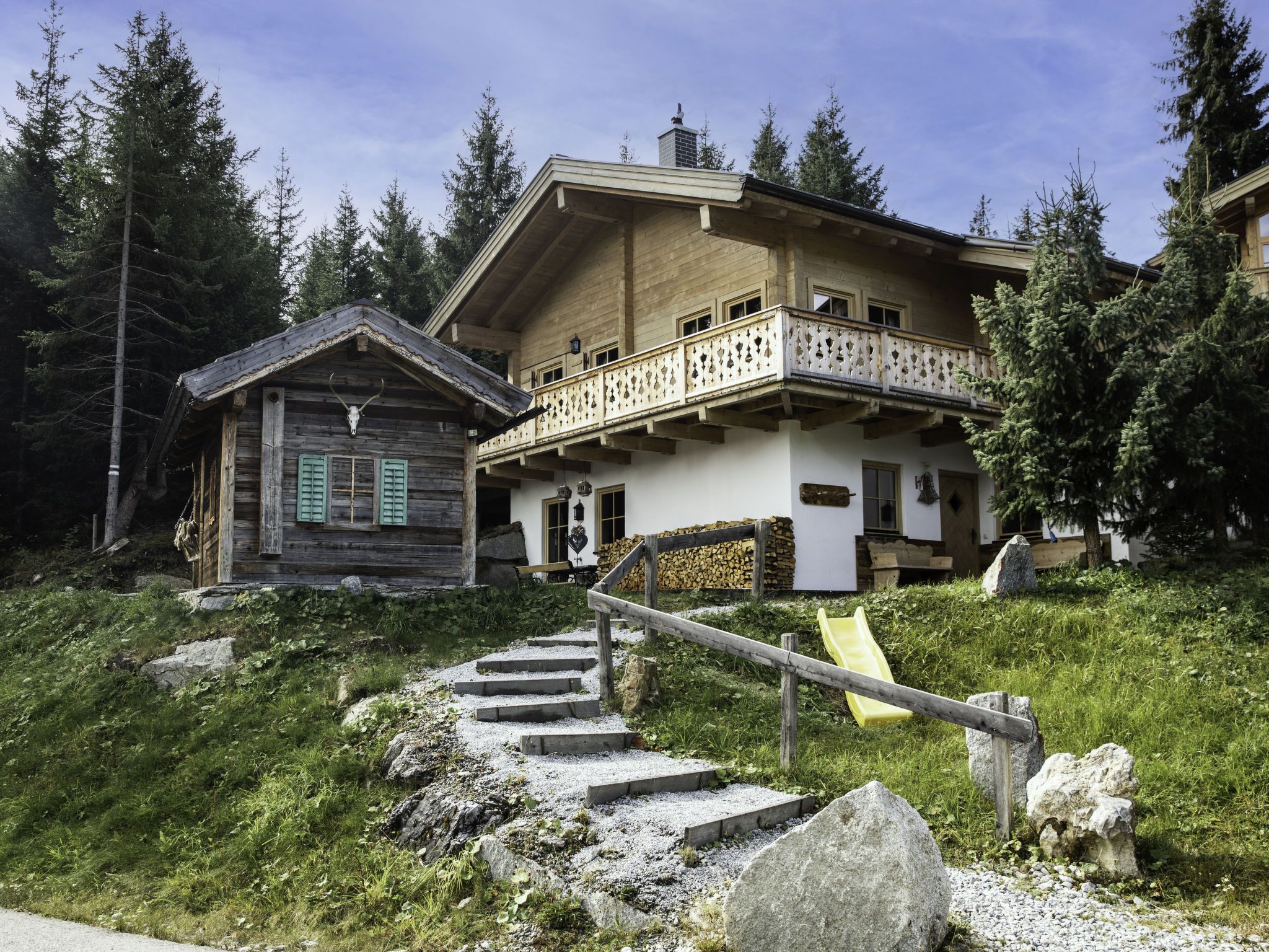 Königsleiten: Sehr schönes, komfortables Chalet Königsleiten 2, 1'600 m.ü.M.. 200 m vom Zentrum von Königsleiten, ruhige, sonnige Lage, 3 km vom See, im Grünen. Zur Alleinbenutzung: Garten. Im Hause: Sauna (extra). Zentralheizung. Zufahrt bis zum Haus. Treppenweg bis zum Haus. Parkplatz beim Haus. Lebensmittelgeschäft, Restaurant 200 m, Bushaltestelle Almdorf Königsleiten Dorfbahn 850 m, Badesee 3 km. Wanderwege ab Haus 100 m, Skilift 200 m. Bekannte Skigebiete sind gut erreichbar: Zillertal Arena. Achtung: Bei einem längeren Aufenthalt als 14 Tage ist eine zusätzliche Zwischenreinigung vor Ort zu bezahlen.