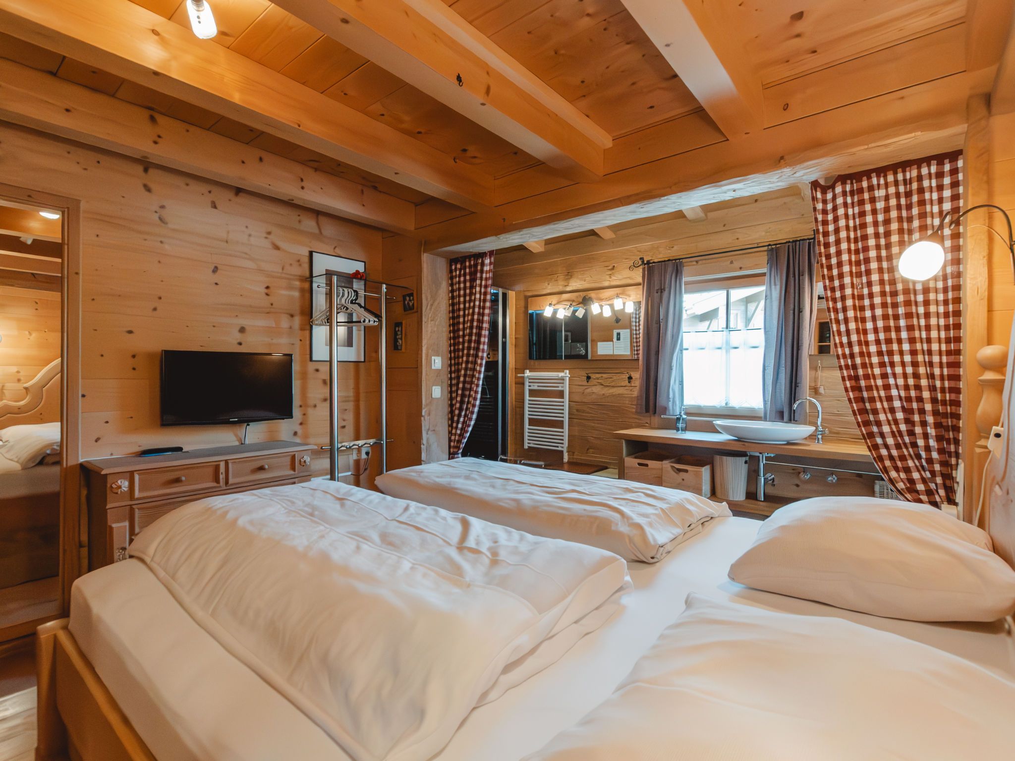 6-Zimmer-Haus 110 m2. Luxuriös und mit viel Holz eingerichtet: 2 Doppelzimmer, jedes Zimmer mit Flachbildschirm. 1 Doppelzimmer mit Kabel-TV. Bad/WC, sep. WC. Obergeschoss: 1 Doppelzimmer mit Waschbecken, Dampfdusche und Flachbildschirm. Grosses Wohn-/Esszimmer mit offenem Kamin und Kabel-TV (Flachbildschirm), Video und Radio. Ausgang zum Balkon. Grosse, offene Küche (Backofen, Geschirrspüler, 4 Glaskeramikplatten, Mikrowelle, Tiefkühler) mit Essecke. Dusche/WC. Dachgeschoss: 1 abgeschrägtes Zimmer mit 2 Betten (110 cm, Länge 200 cm). Grosser Balkon, grosse Terrasse 120 m2, 2 kleine Terrassen. Gartengrill, Liegestühle. Schöne Sicht auf die Berge. Zur Verfügung: Waschmaschine, Wäschetrockner, Kinderhochstuhl, Haartrockner. Internet (WLAN, gratis). Parkplatz. Bitte beachten: Nichtraucher-Unterkunft. Rauchmelder. Im luxuriösen Bad gibt es eine grosse Badewanne. 50626-006179-2020