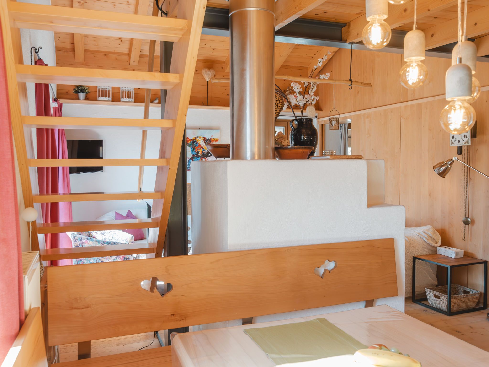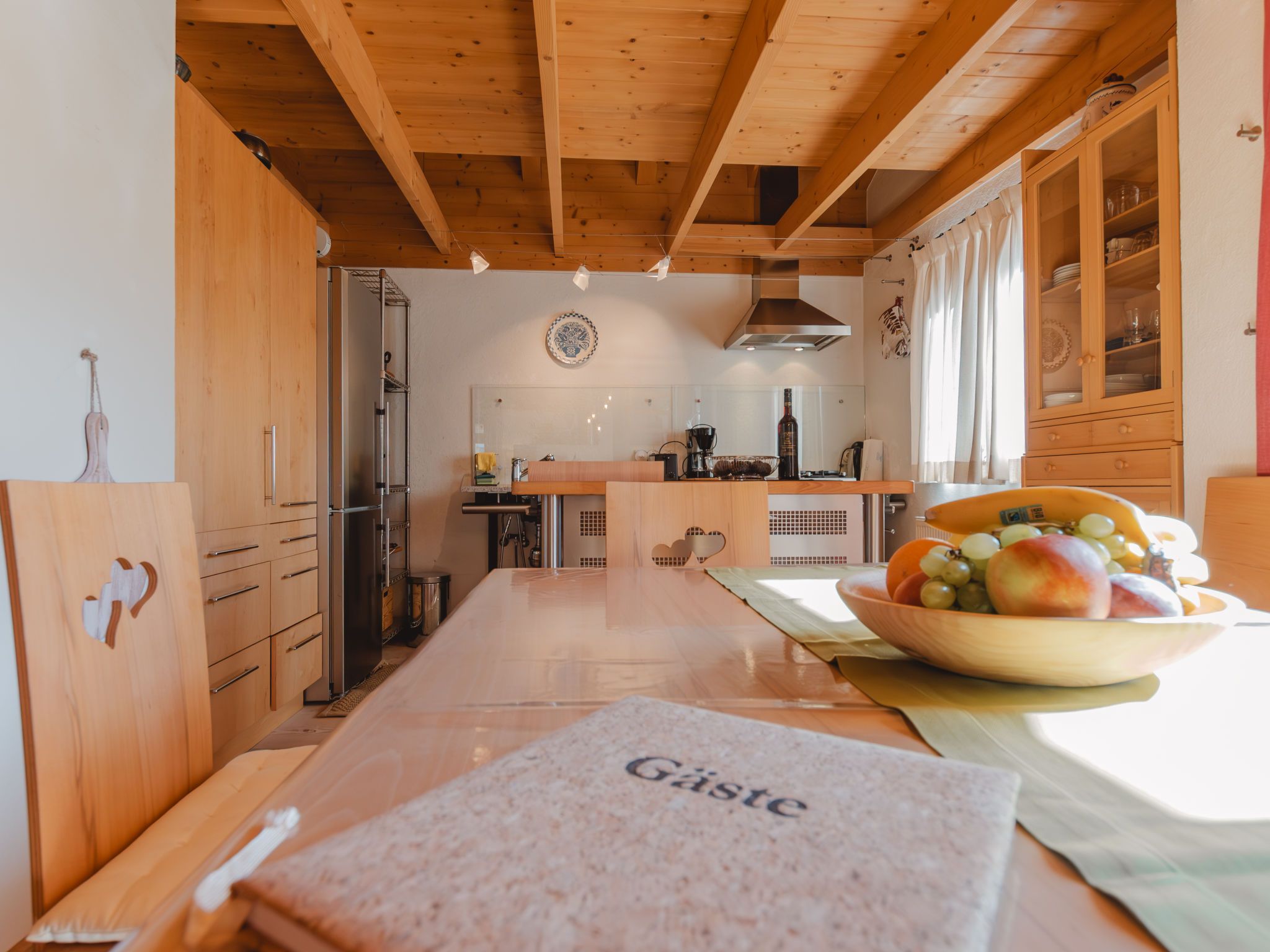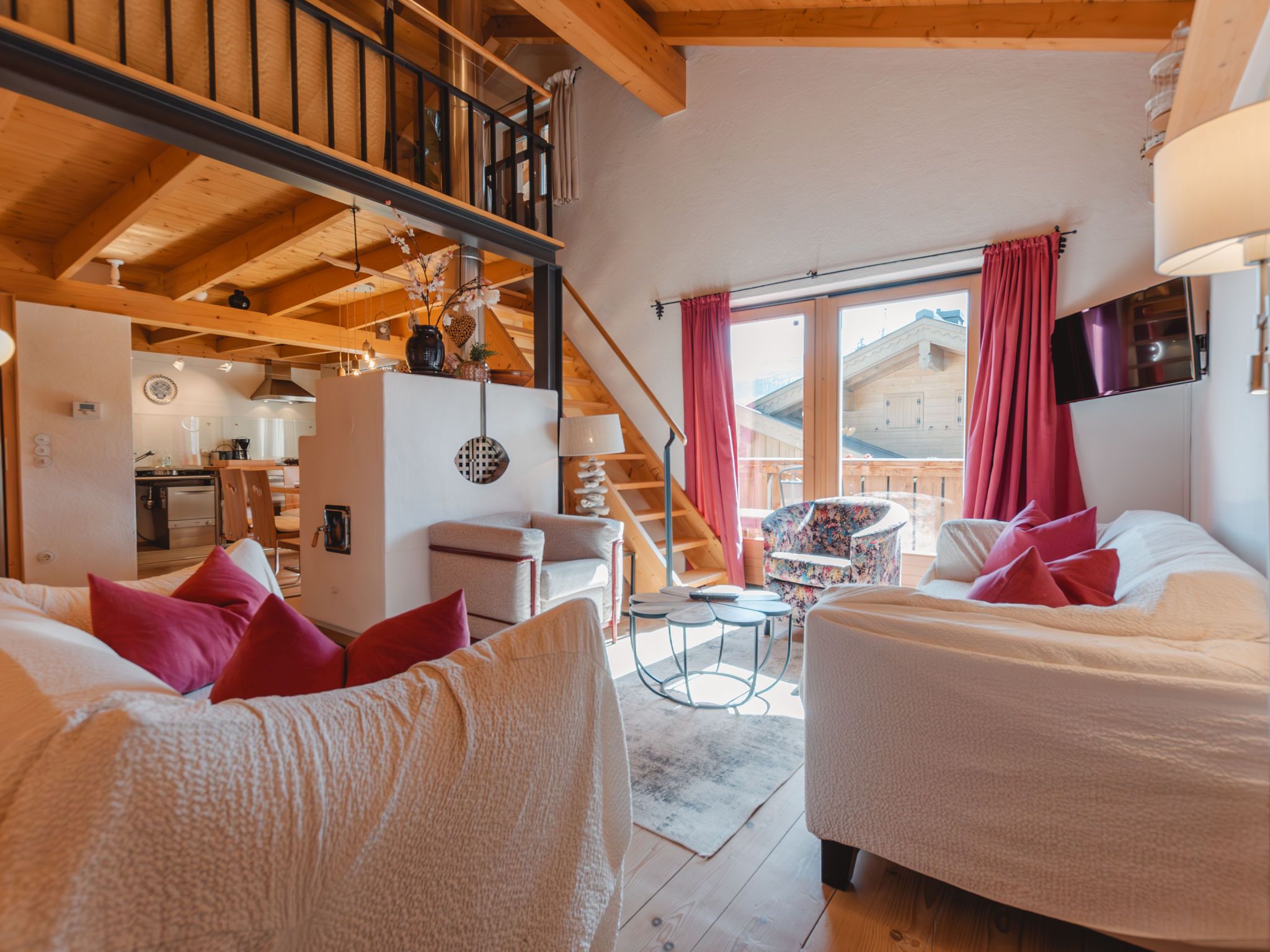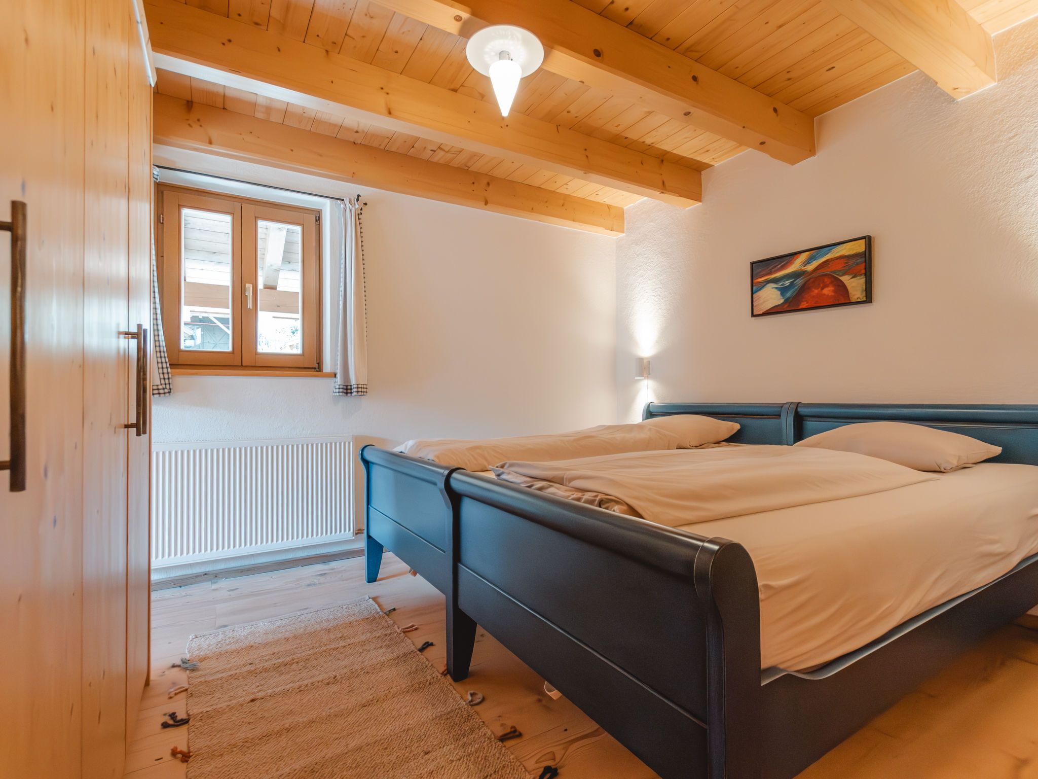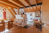 Hajenuis TOP OG, 4-Zimmer-Wohnung 90 m2. Hell, geschmackvoll und mit viel Holz eingerichtet: 1 Doppelzimmer. 1 Zimmer mit 1 x 2 Etagenbetten. Galerie mit 1 Doppelbett. Wohnküche (Backofen, Geschirrspüler, 4 Glaskeramikplatten) mit 1 Diwanbett, Essecke, TV und Kachelofen. Dusche/WC. Balkon. Balkonmöbel. Zur Verfügung: Internet (Wireless LAN, gratis). Bitte beachten: Nichtraucher-Unterkunft. Rauchmelder. Anstelle eines abgeschlossenen Schlafzimmers befinden sich manche Schlafplätze in einem offenen Bereich (Galerie, Nische etc.). 50626-062792-2020