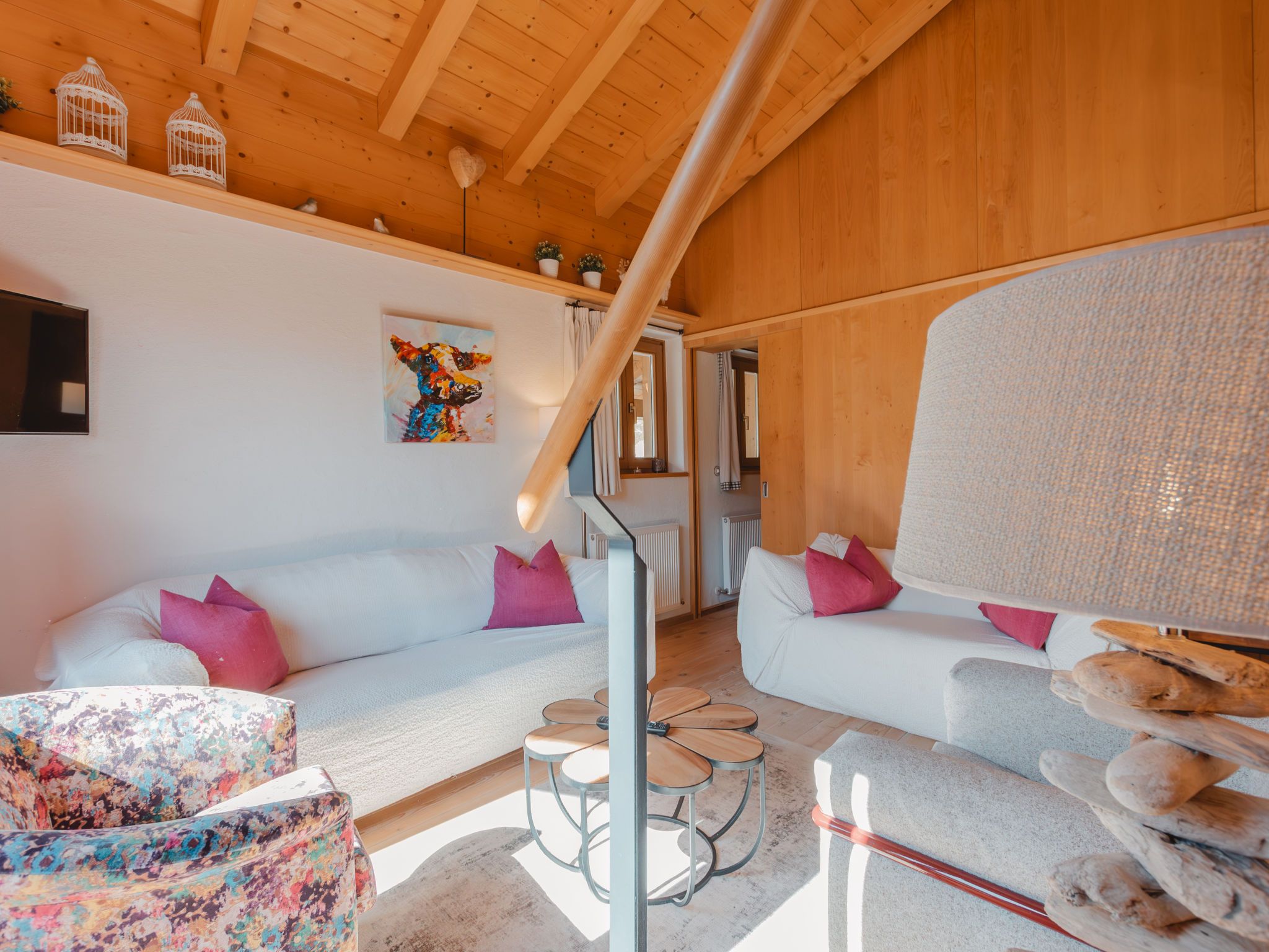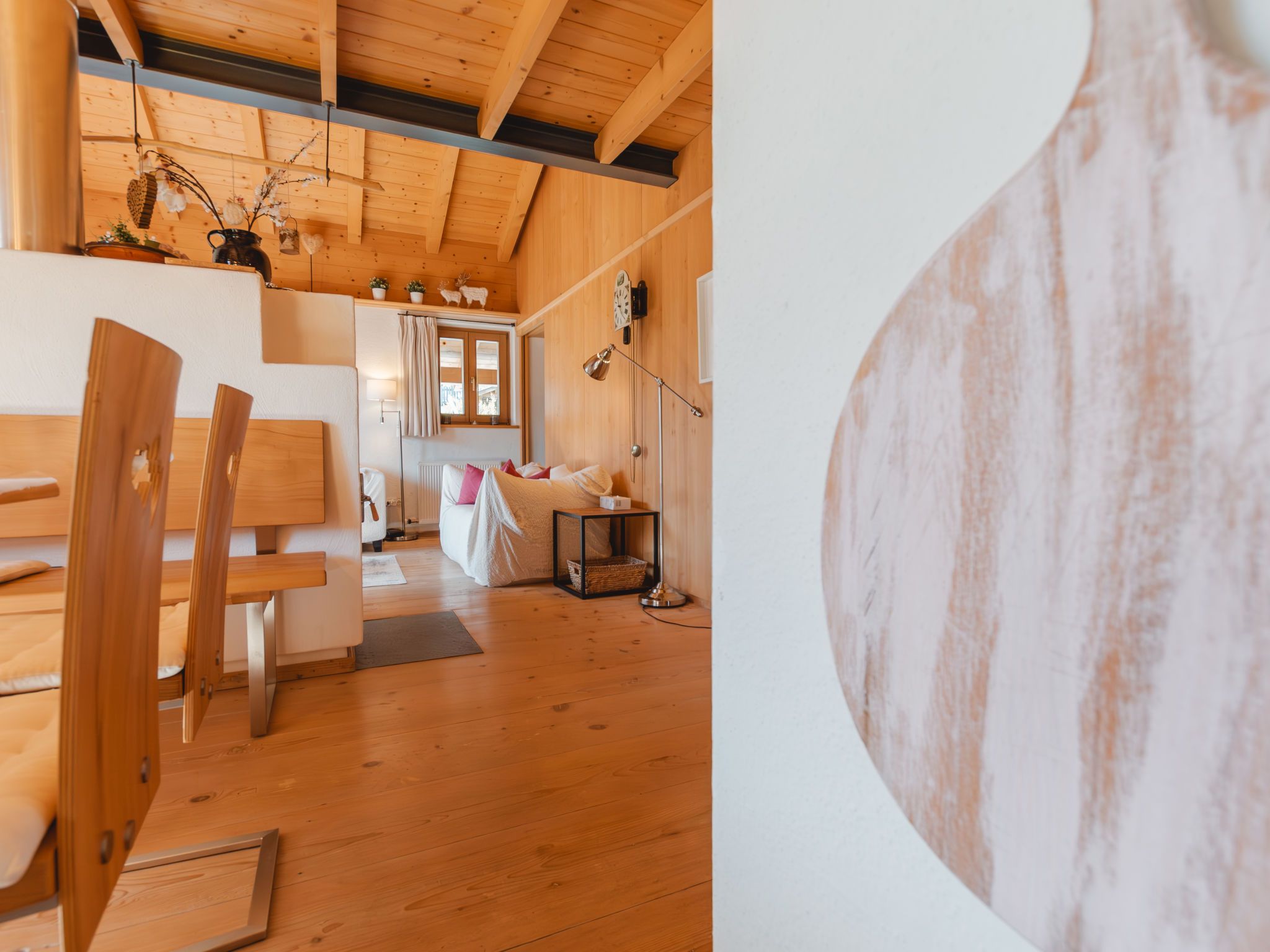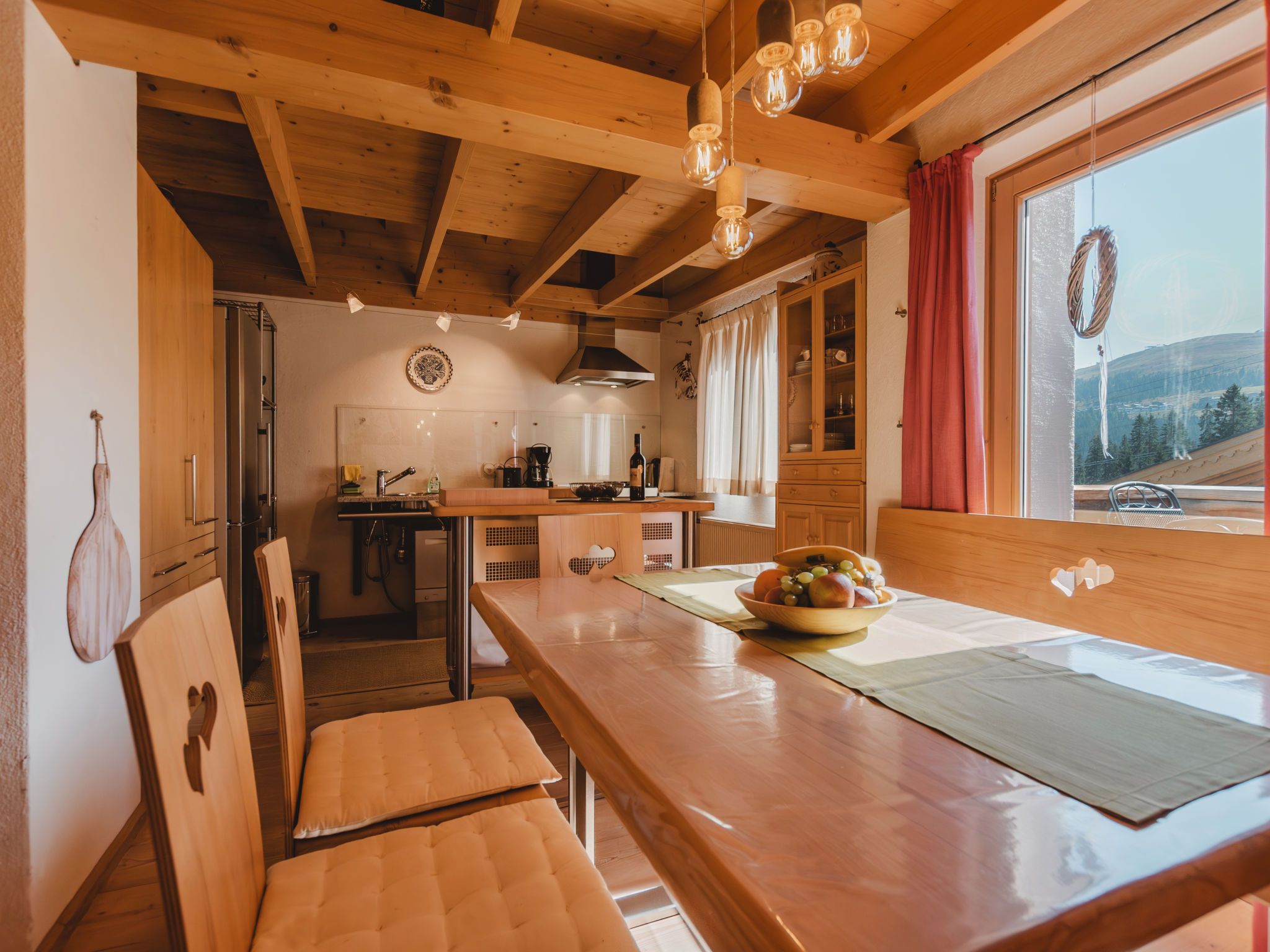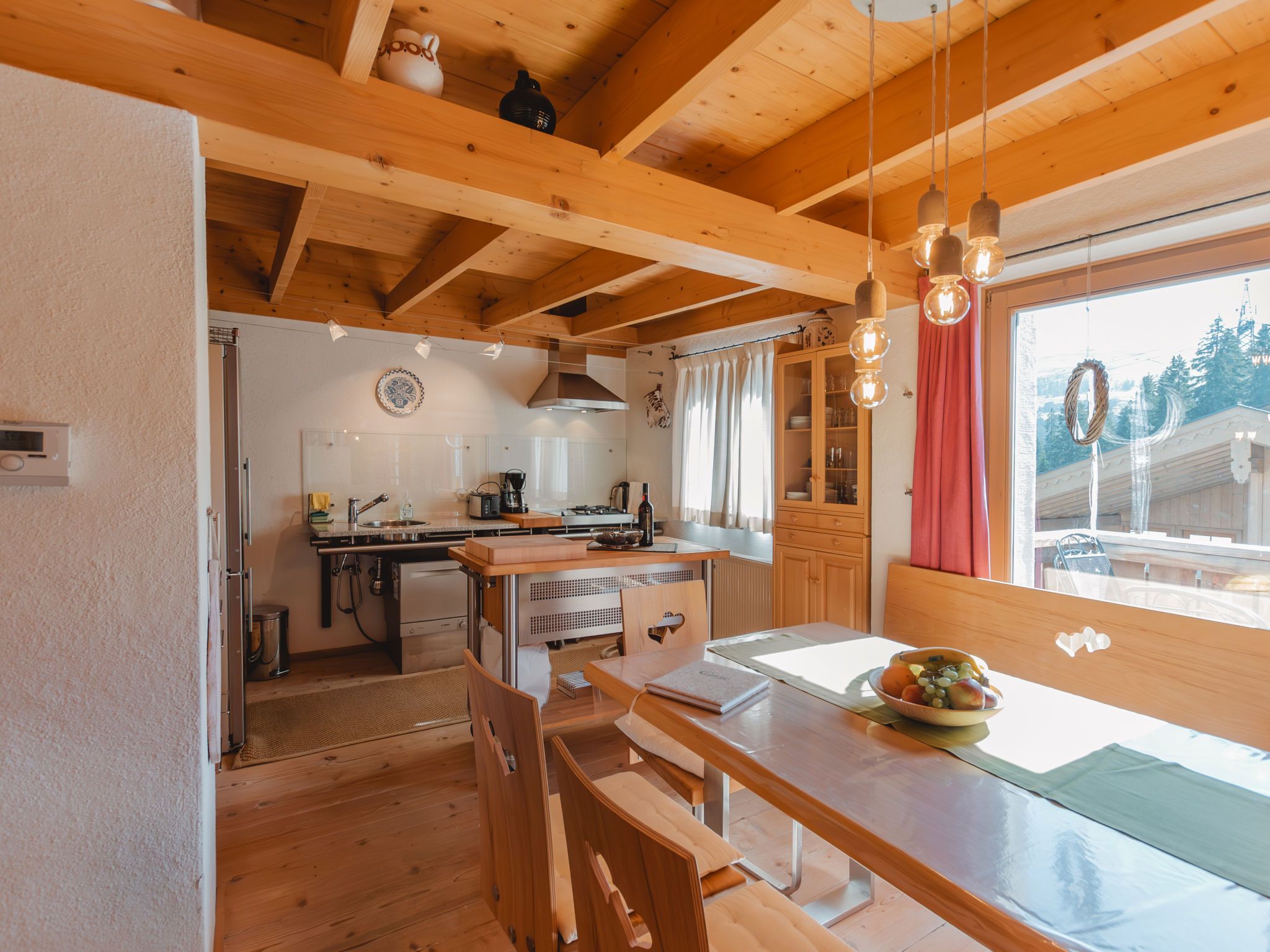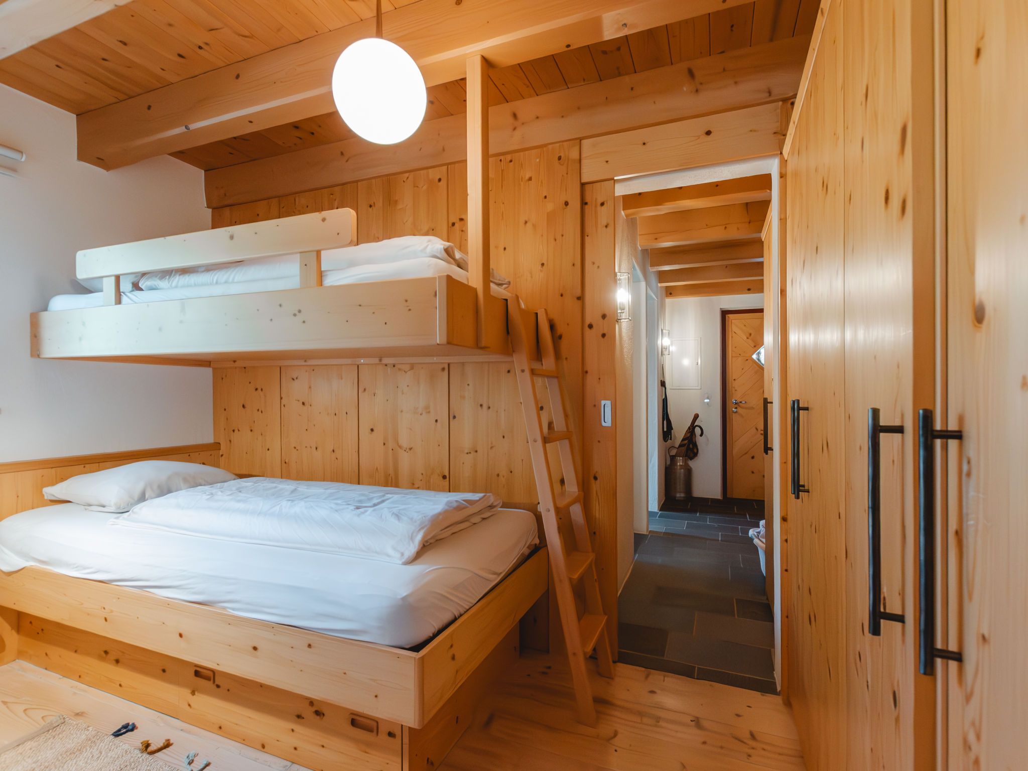 Hajenuis TOP OG, 4-Zimmer-Wohnung 90 m2. Hell, geschmackvoll und mit viel Holz eingerichtet: 1 Doppelzimmer. 1 Zimmer mit 1 x 2 Etagenbetten. Galerie mit 1 Doppelbett. Wohnküche (Backofen, Geschirrspüler, 4 Glaskeramikplatten) mit 1 Diwanbett, Essecke, TV und Kachelofen. Dusche/WC. Balkon. Balkonmöbel. Zur Verfügung: Internet (Wireless LAN, gratis). Bitte beachten: Nichtraucher-Unterkunft. Rauchmelder. Anstelle eines abgeschlossenen Schlafzimmers befinden sich manche Schlafplätze in einem offenen Bereich (Galerie, Nische etc.). 50626-062792-2020