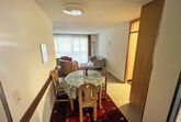 Siesta Apt. 21, 2-Zimmer-Wohnung 53 m2 im 3. Stock. Gemütlich eingerichtet: Wohn-/Esszimmer mit 2 Wandschrankbetten und Sat-TV (Flachbildschirm), Radio und Stereoanlage. Ausgang zum Balkon. 1 Zimmer mit 2 Betten. Küche (Backofen, Geschirrspüler, 4 Glaskeramikplatten). Bad/WC. Balkon 6 m2, Westlage. Balkonmöbel, Abstellkammer. Schöne Sicht auf die Berge, die Landschaft und die Ortschaft. Zur Verfügung: Babybett. Internet (Wireless LAN, gratis). Parkplatz (1 Auto) beim Haus. Bitte beachten: Nichtraucher-Unterkunft.