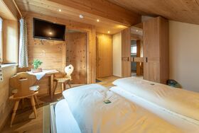 Die 19 m² große und nach Nordwesten ausgerichtete 1-Zimmer-Wohnung im Obergeschoß eignet sich wunderbar für größere Familien zusätzlich zum Appartement. Neben einem Doppelbett befinden sich eine Sitzecke sowie eine komfortable Dusche mit WC.