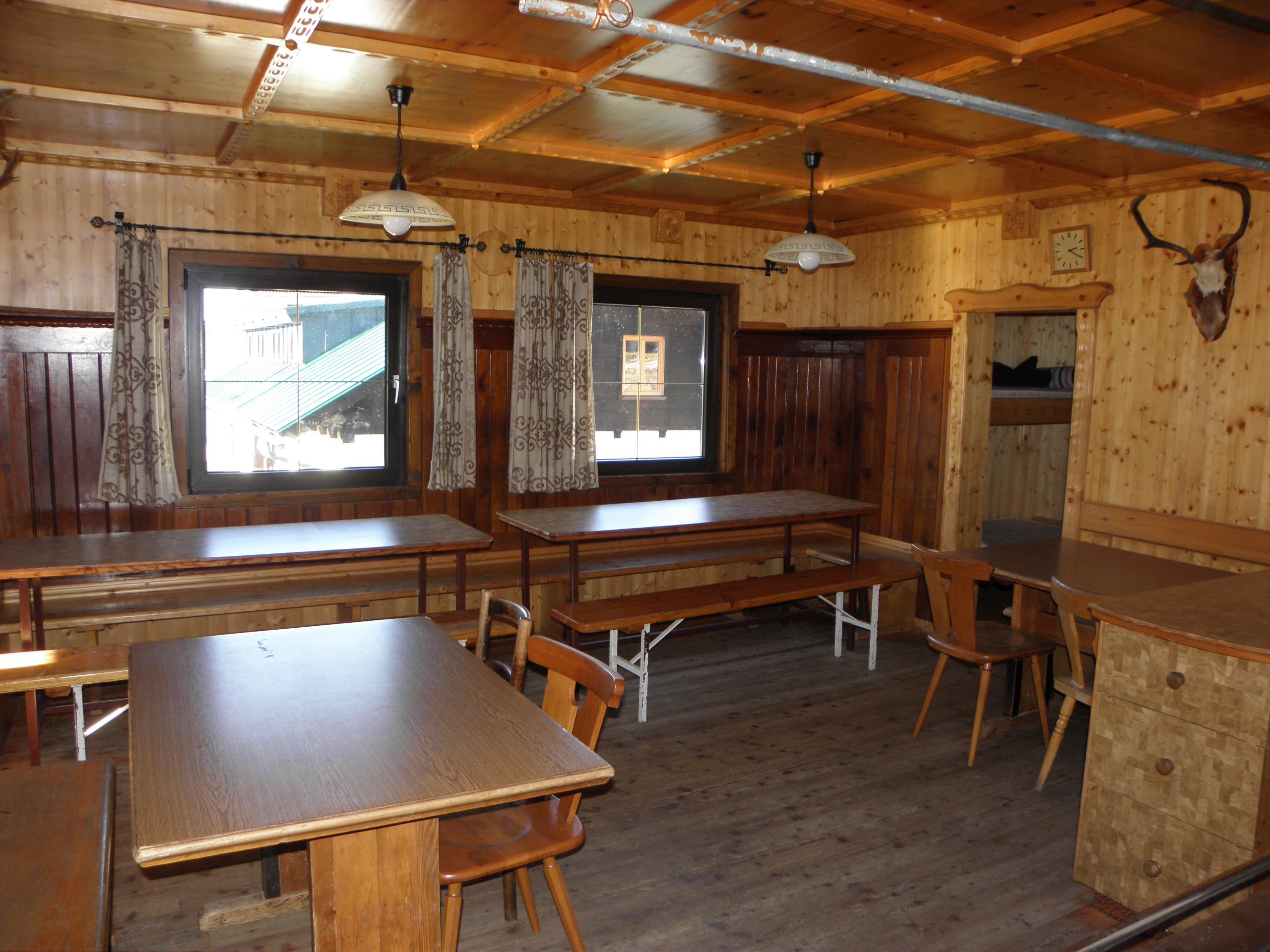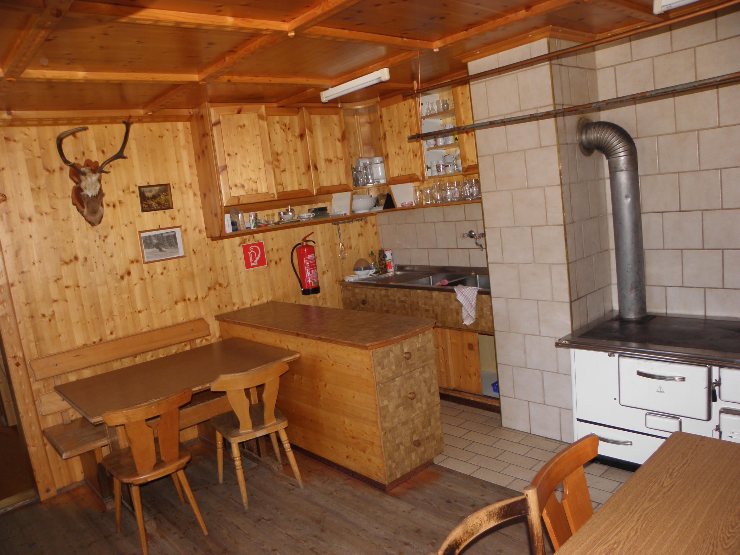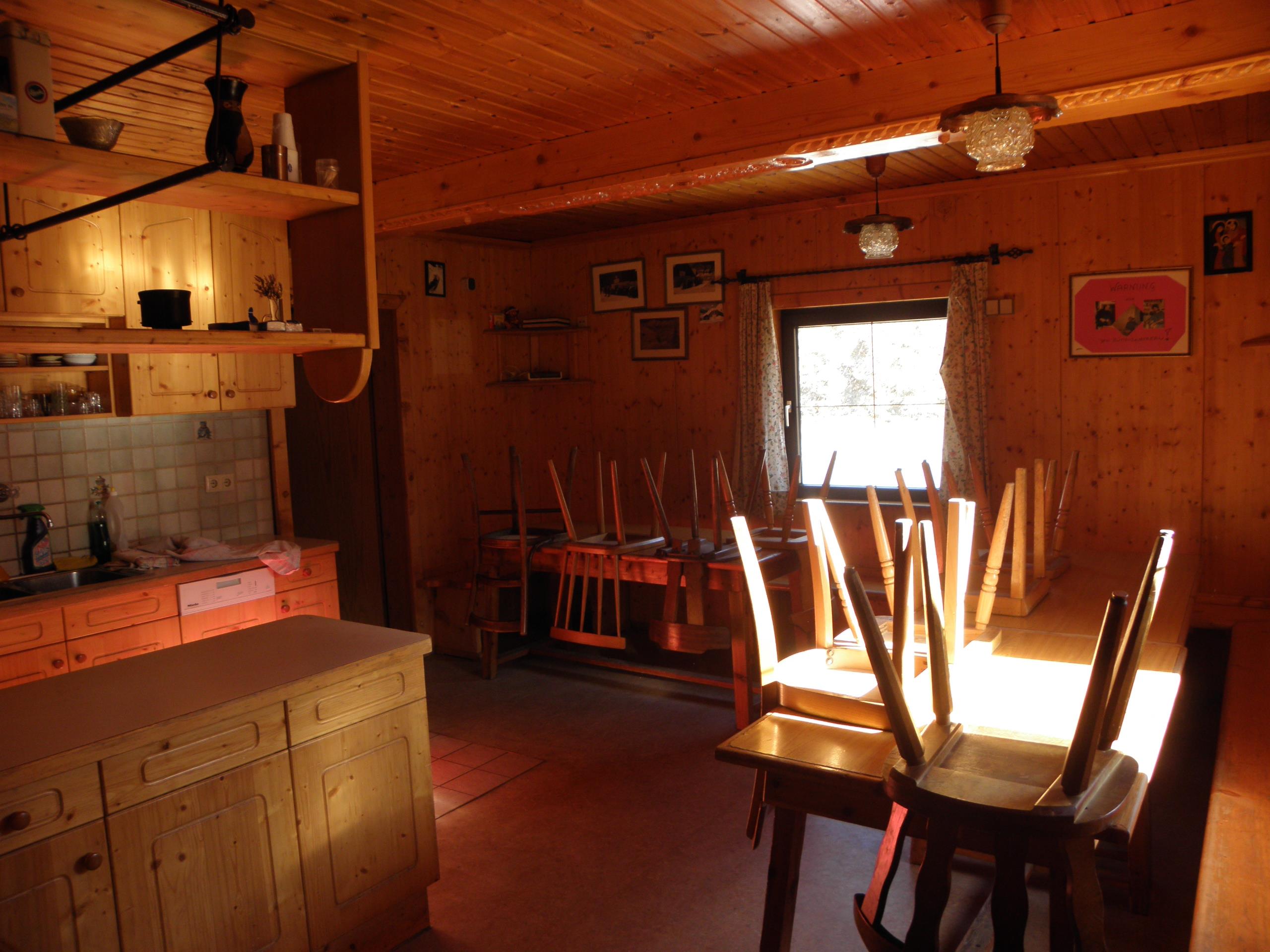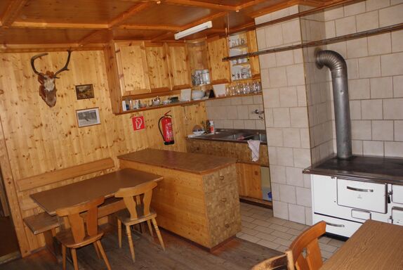 Unsere Hütte verfügt über 2 getrennte Küchen und 6 getrennte Schlafräume. Die Küchen sind mit den notwendigen Utensilien ausgestattet (Geschirr, Besteck, Töpfe, Pfannen, ...), in einer Küche steht Ihnen ein Geschirrspühler zur Verfügung. Zur Lebensmittellagerung gibt es im Keller einen eigenen Lagerraum mit Kühl- und Gefriermöglichkeiten. Die Schlafräume teilen sich folgendermaßen auf: > 2 große Schlafräume mit Stockbetten für 10 Personen > 1 Schlafraum mit Stockbetten für 4 Personen > 2 Schlafräume mit 4 Schlafplätzen und > 1 Schlafraum mit 2 getrennten Betten Im Sanitärbereich stehen ihnen 4 WC, 1 Pissoire, 2 Duschen sowie 5 Waschplätze zur Verfügung.