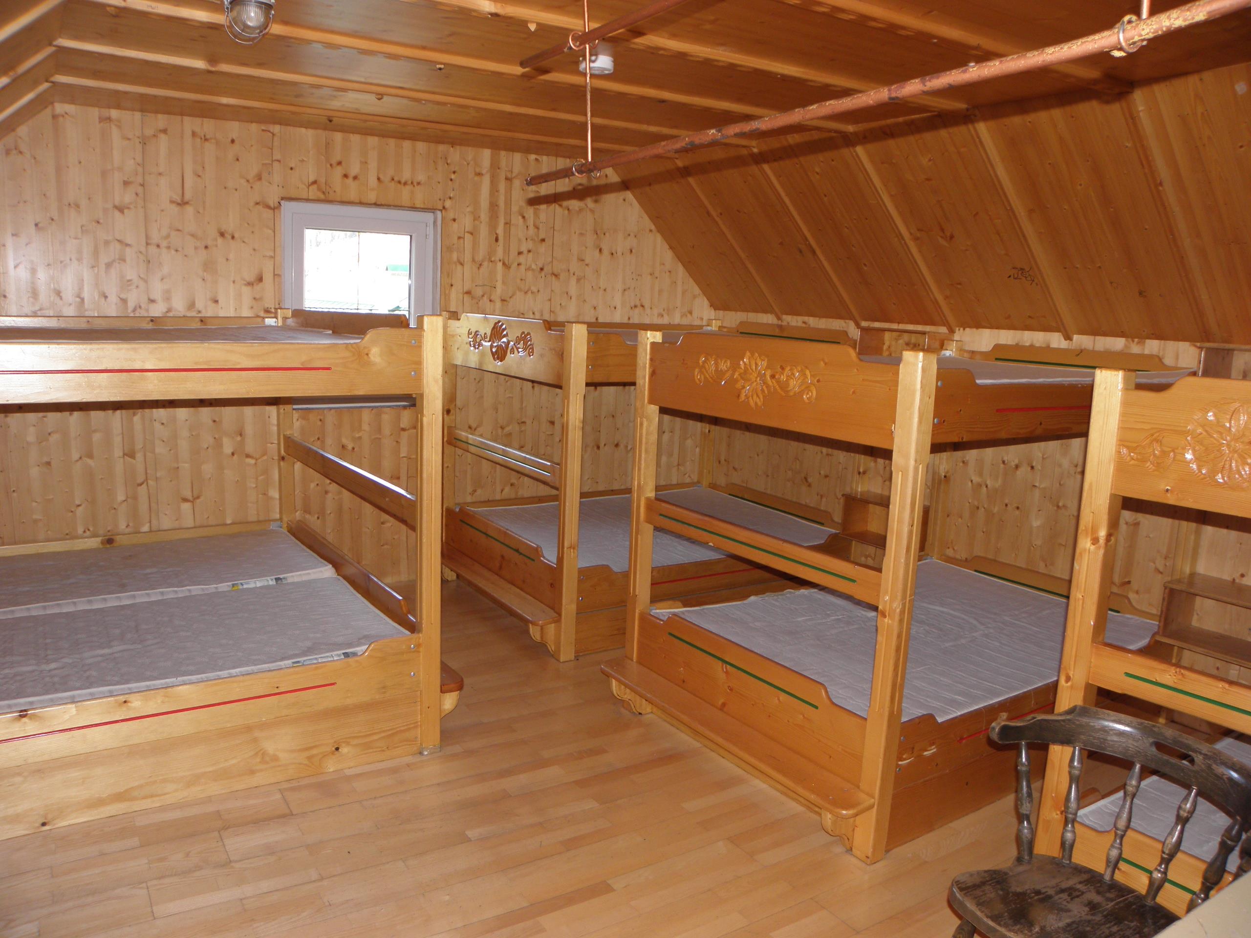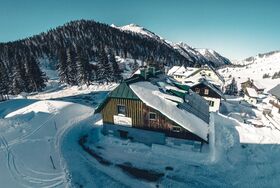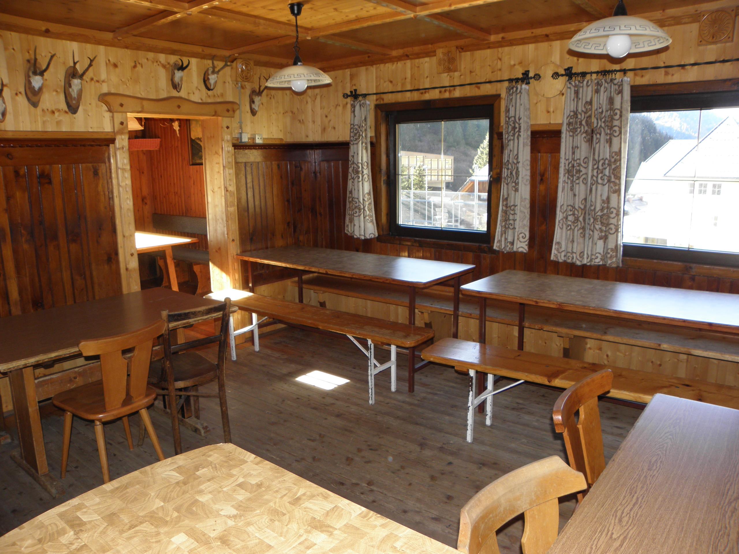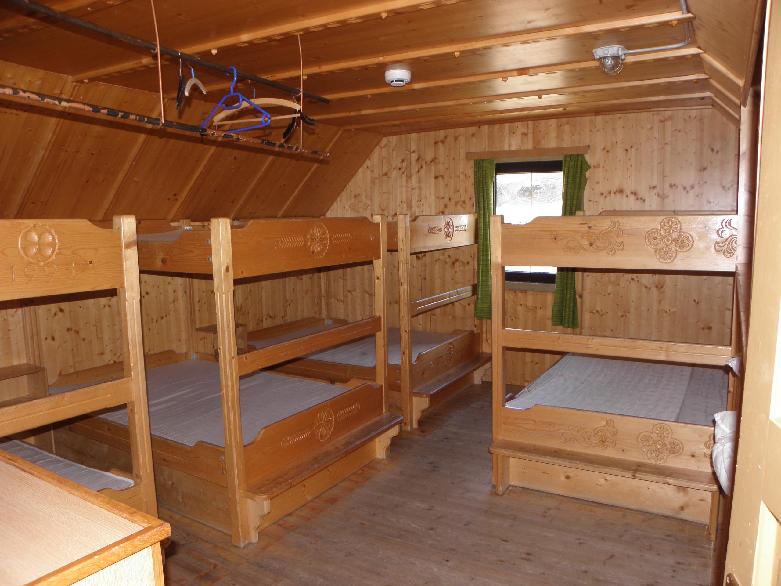 Unsere Hütte verfügt über 2 getrennte Küchen und 6 getrennte Schlafräume. Die Küchen sind mit den notwendigen Utensilien ausgestattet (Geschirr, Besteck, Töpfe, Pfannen, ...), in einer Küche steht Ihnen ein Geschirrspühler zur Verfügung. Zur Lebensmittellagerung gibt es im Keller einen eigenen Lagerraum mit Kühl- und Gefriermöglichkeiten. Die Schlafräume teilen sich folgendermaßen auf: > 2 große Schlafräume mit Stockbetten für 10 Personen > 1 Schlafraum mit Stockbetten für 4 Personen > 2 Schlafräume mit 4 Schlafplätzen und > 1 Schlafraum mit 2 getrennten Betten Im Sanitärbereich stehen ihnen 4 WC, 1 Pissoire, 2 Duschen sowie 5 Waschplätze zur Verfügung.